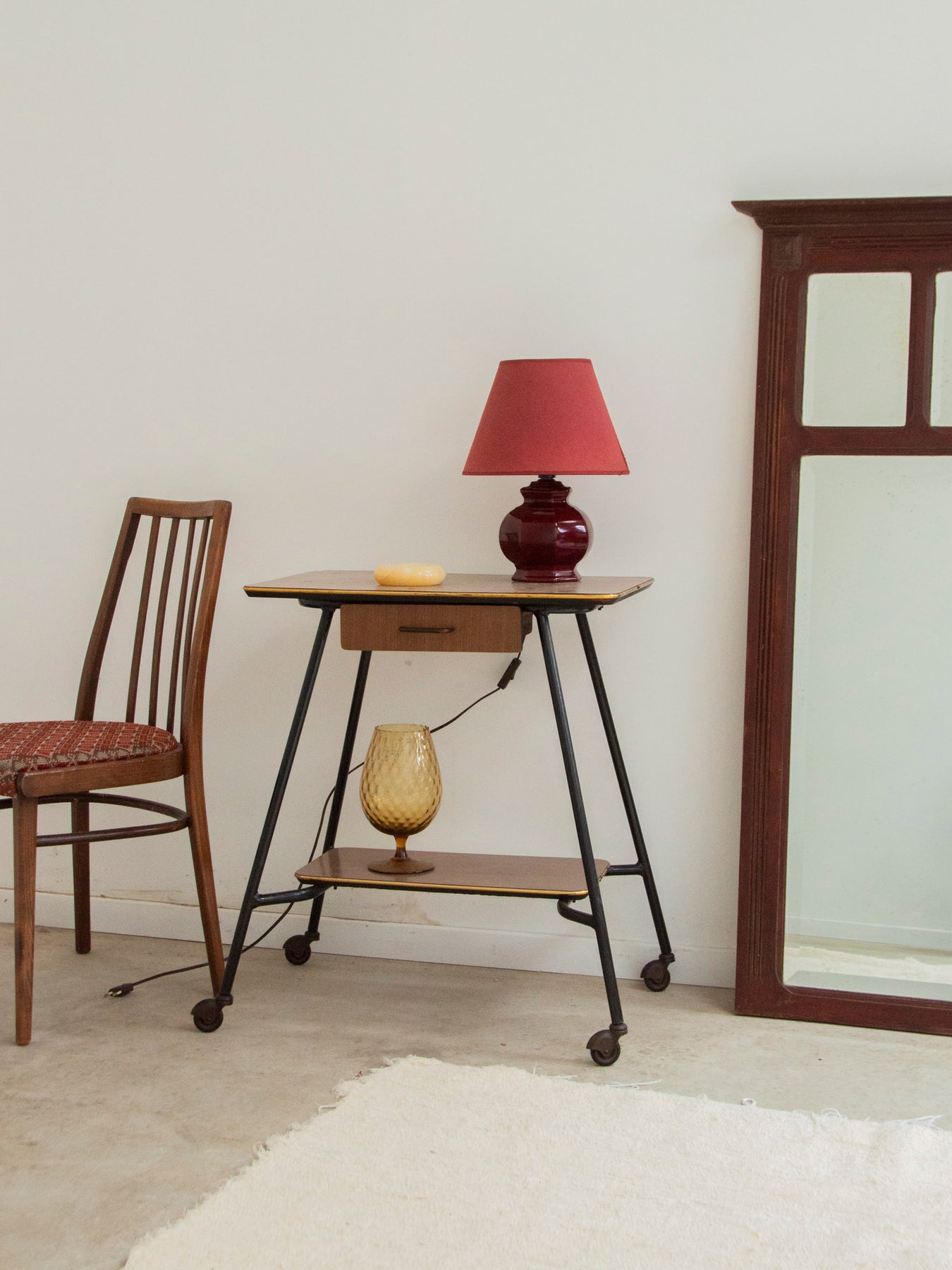 Add a touch of warmth with this burgundy lamp featuring a red-pink fabric shade, whose enveloping hue diffuses a soft light. Its elegant base with clean lines provides a discreet and contemporary presence, perfect for a side table, bedside table, or reading nook. The interplay between the base and the shade creates an intimate and elegant atmosphere, ideal for warming up a living room or adding a splash of color to a bedroom.