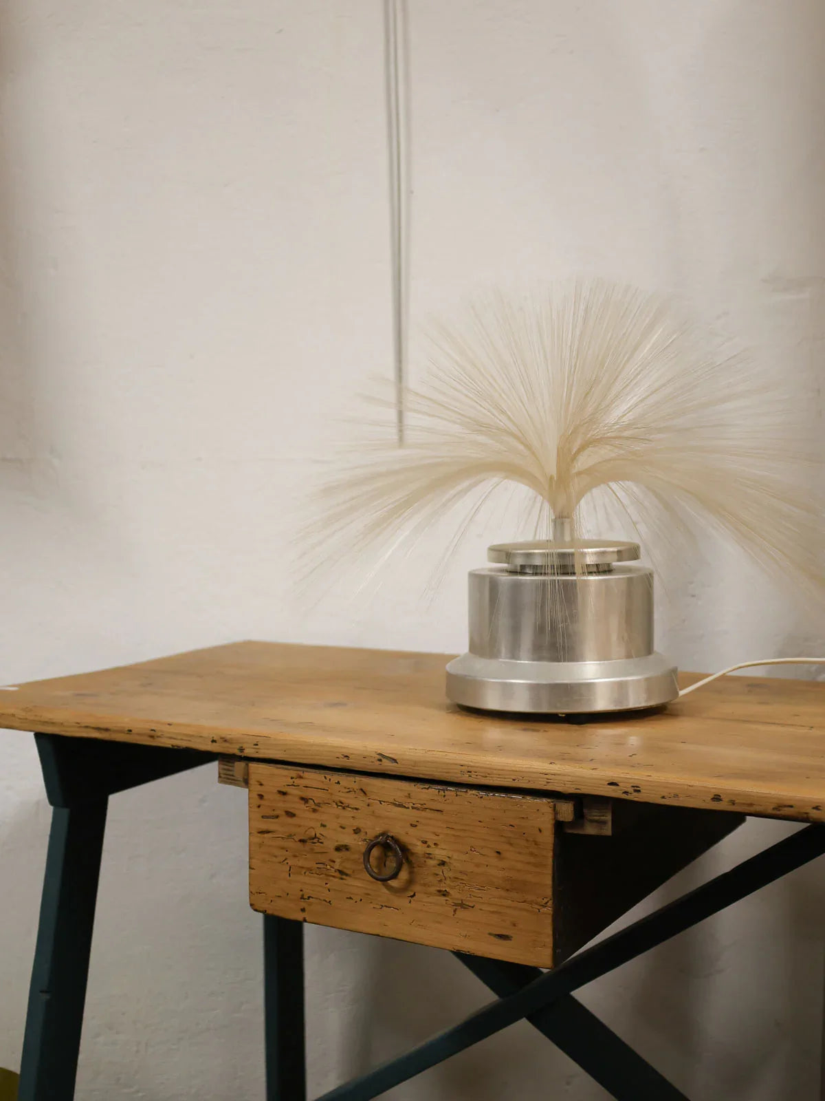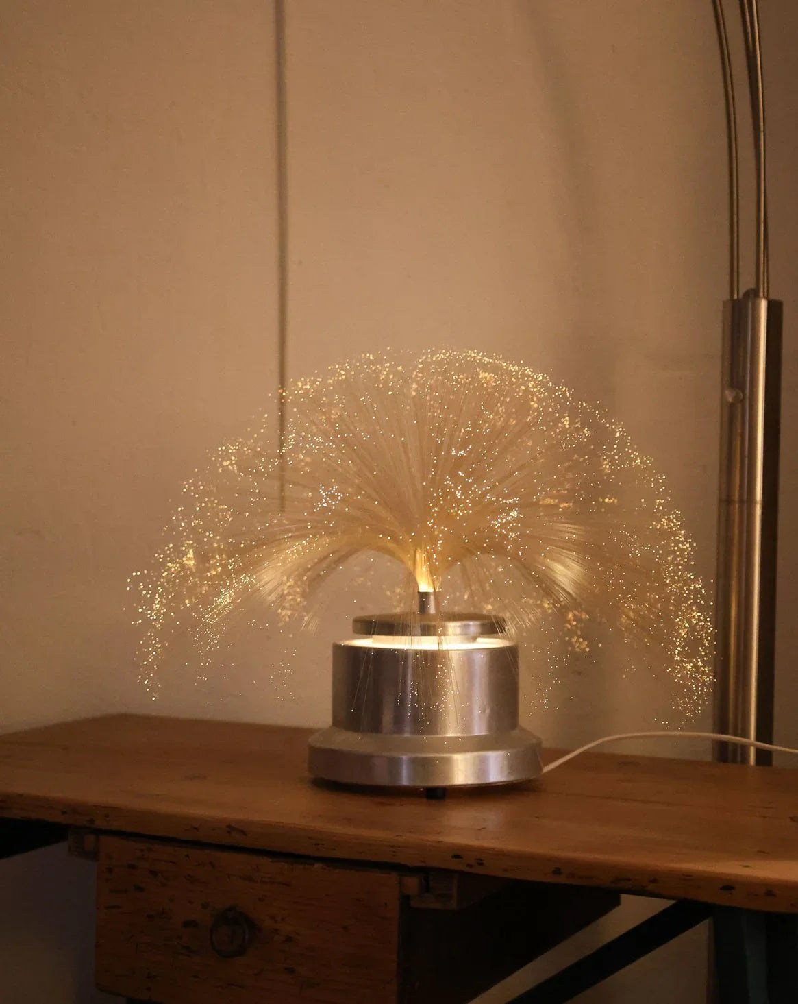 Discover this table lamp with its contemporary, sculptural steel base, adding an elegant touch to your interior. Its textured, woven fiberglass strands play with the light, diffusing a soft glow, while the multicolor technology allows you to create different moods to suit your style. Compact and stable, it fits perfectly on a bedside table, desk, or reading nook, providing adjustable accent lighting for cozy evenings.