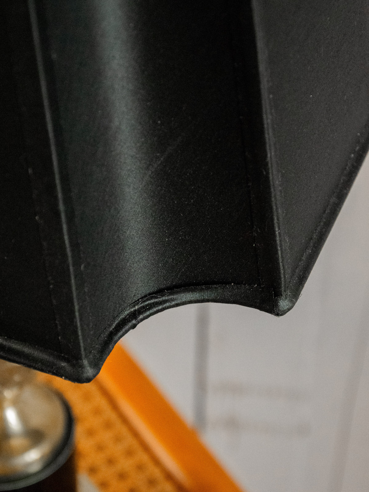 Elevate your interior with this Hollywood Regency style pineapple lamp base, sculpted in gilded bronze and topped with a black lampshade. Its refined silhouette brings a strong presence and vintage-chic charm, ideal for highlighting a console table, living room, or bedroom. The contrast between the gilded metal and the dark fabric enhances the light for a warm and dramatic atmosphere, while its balanced proportions make it both decorative and functional.