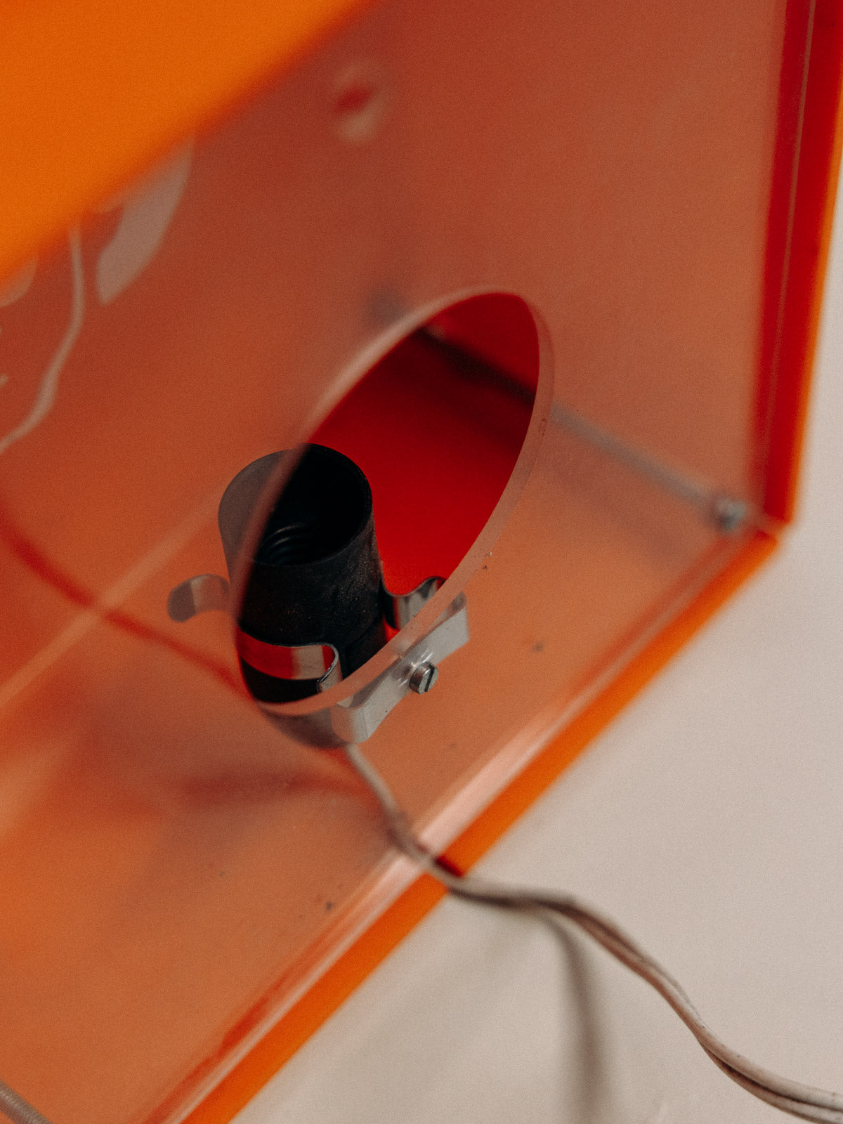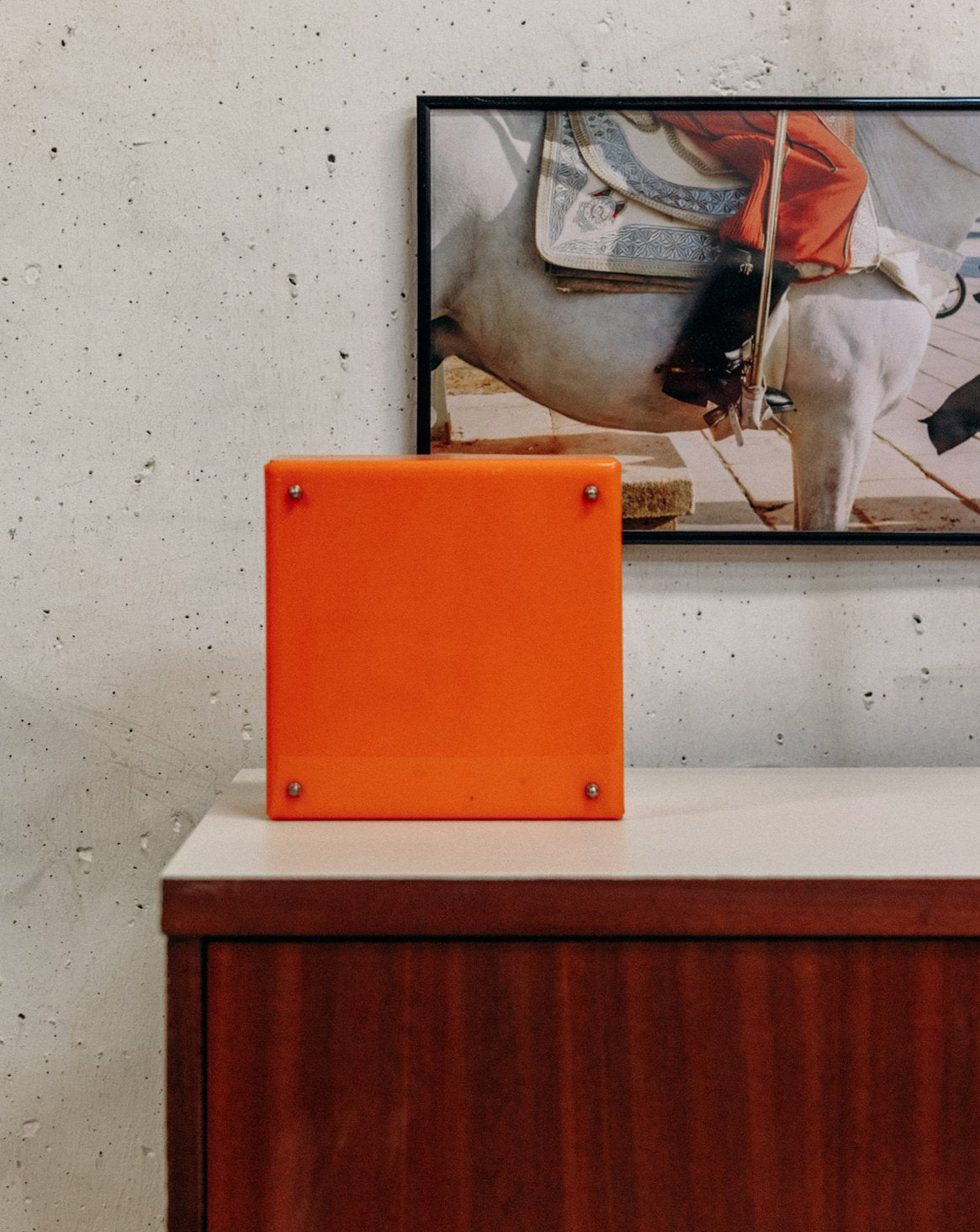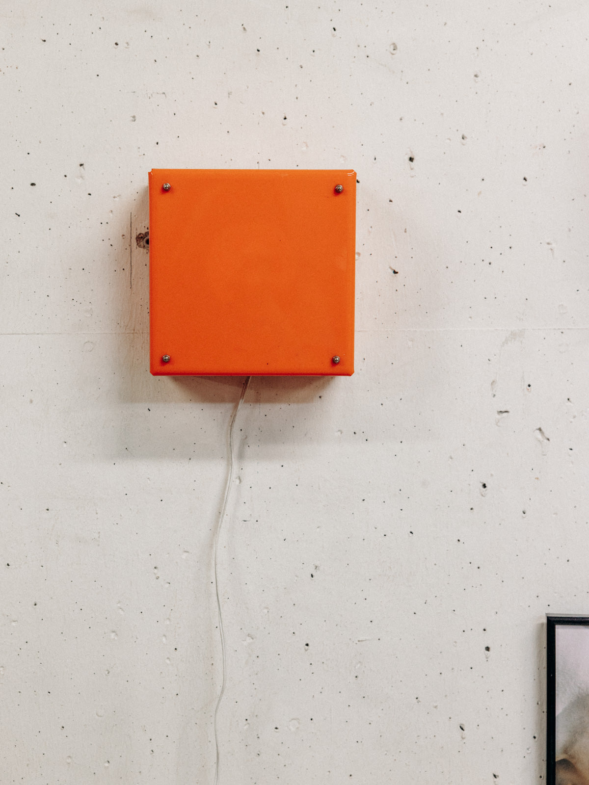 Add a graphic and colorful touch with this square plastic lamp, designed to be placed on a surface or mounted on the wall as you prefer. Its compact and shallow shape makes it ideal for a reading nook, bedside table, or desk without cluttering the space, while the plug and switch make installation and everyday use easy. Available in orange, pink, blue, and white, it emits a soft light that creates a warm and contemporary atmosphere.