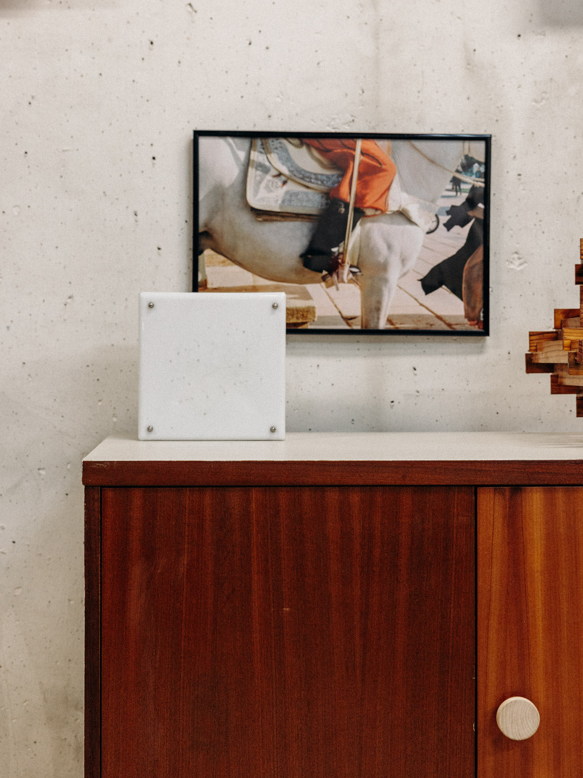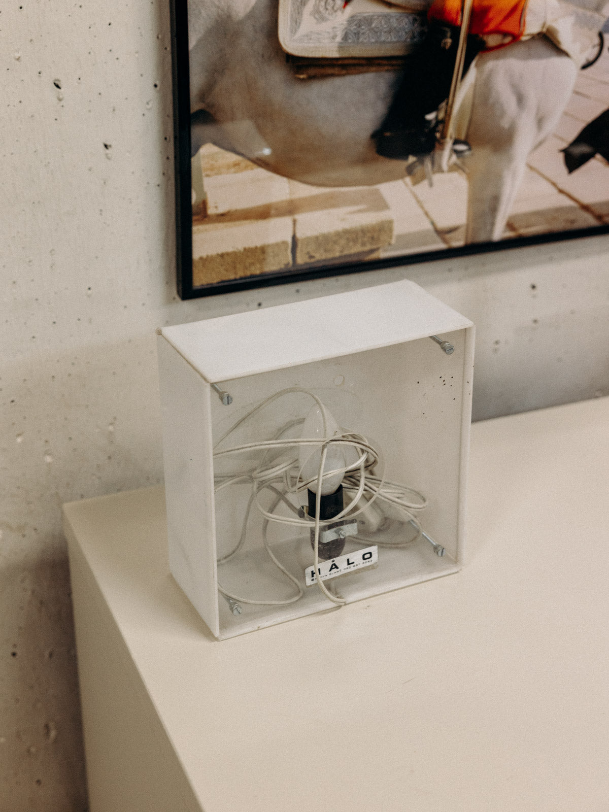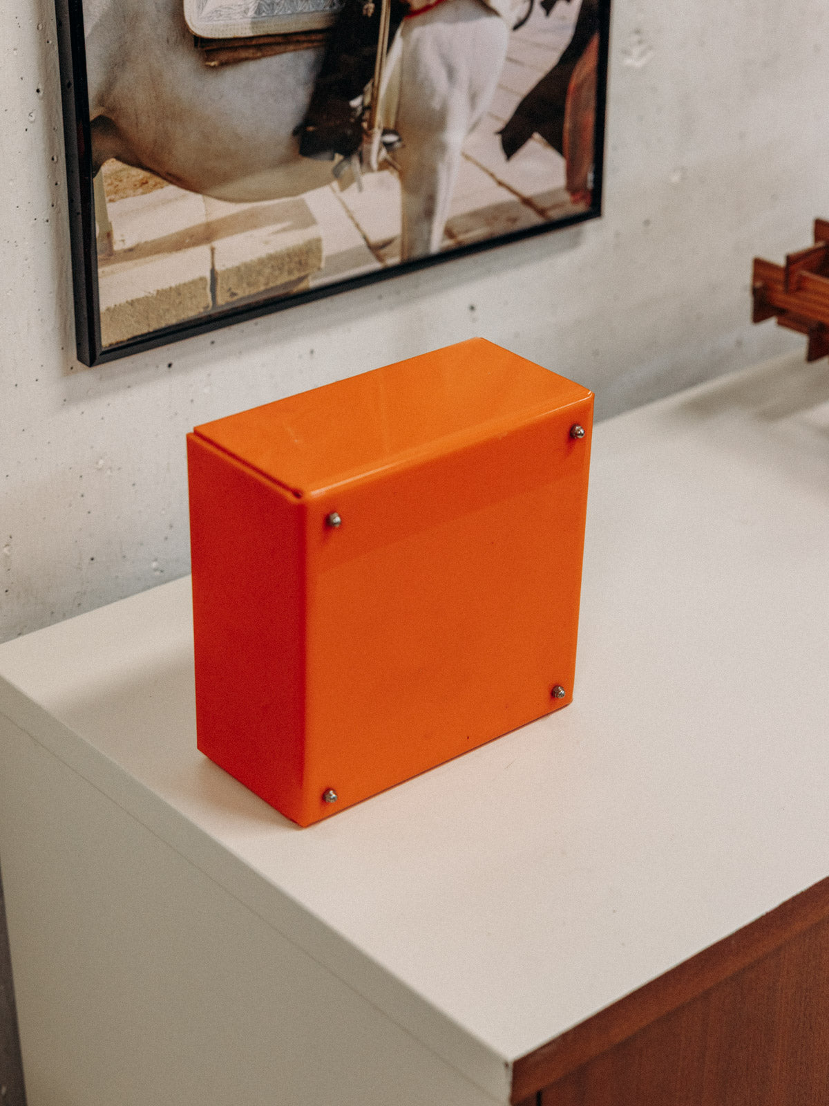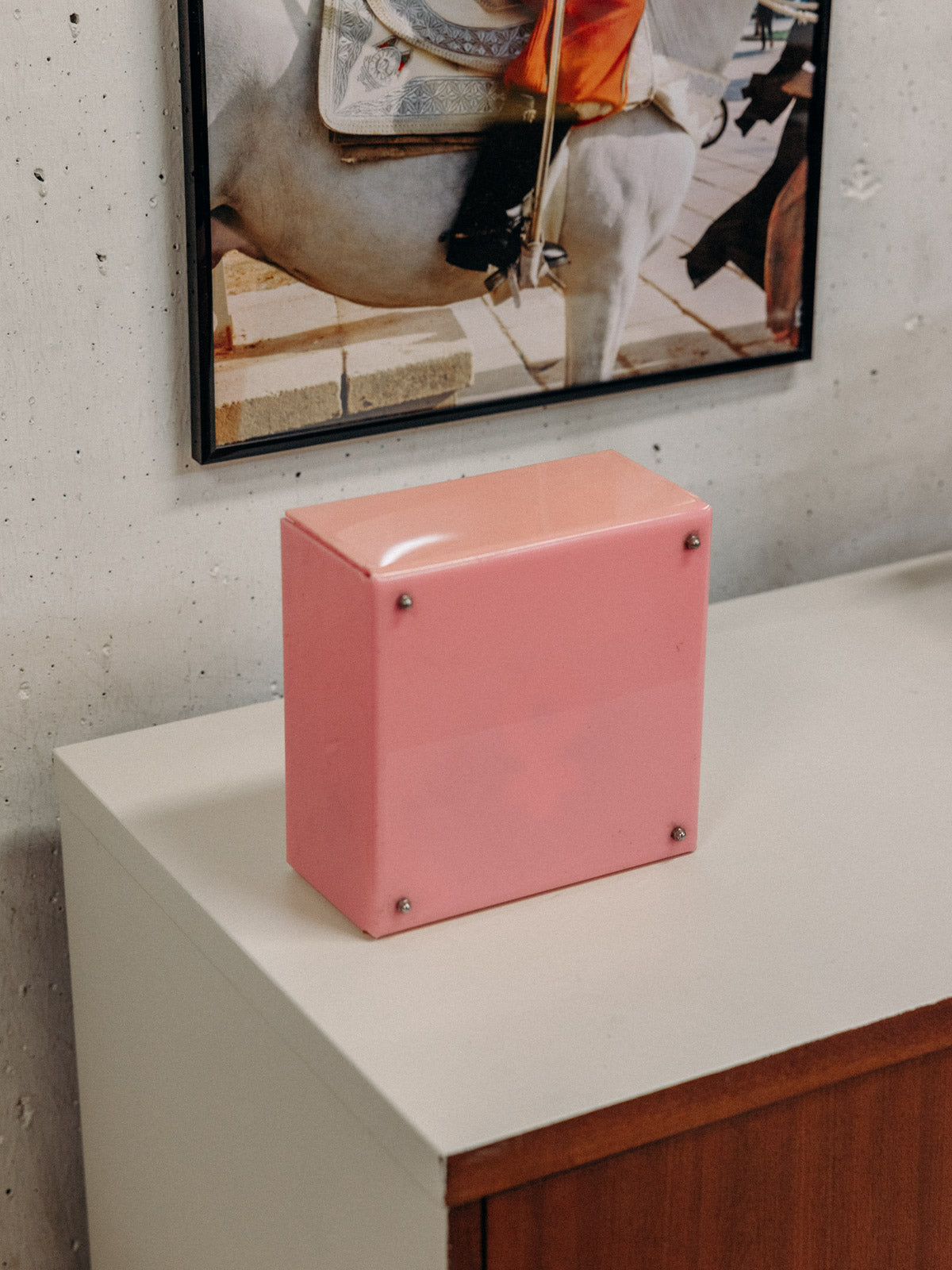 Add a graphic and colorful touch with this square plastic lamp, designed to be placed on a surface or mounted on the wall as you prefer. Its compact and shallow shape makes it ideal for a reading nook, bedside table, or desk without cluttering the space, while the plug and switch make installation and everyday use easy. Available in orange, pink, blue, and white, it emits a soft light that creates a warm and contemporary atmosphere.
