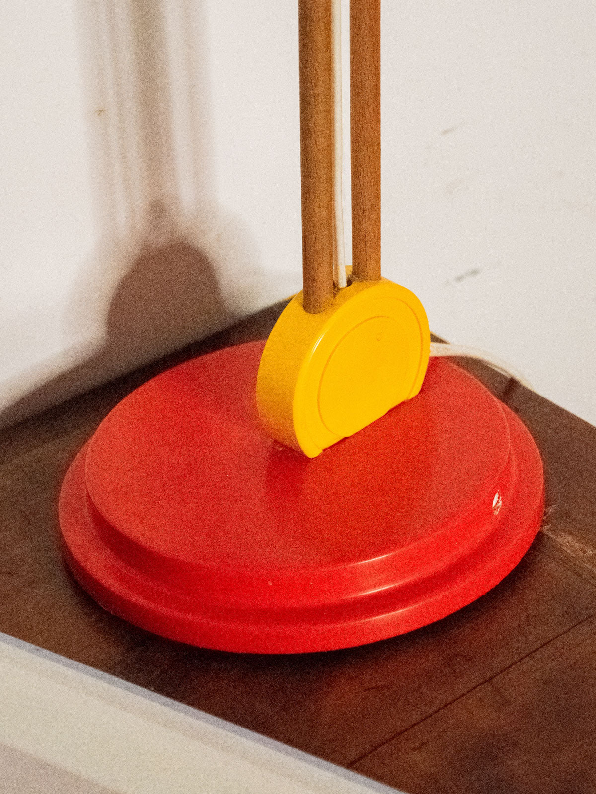 Add a touch of retro whimsy to your home with this 1980s-inspired adjustable lamp from IKEA, combining warm wood and colorful plastic. Its adjustable arm allows you to direct the light for reading or create ambient lighting, while its multicolored palette energizes a desk, bedroom, or living room. The contrasting materials strike a balance between popular design and playful character, ideal for an eclectic and inviting decor.