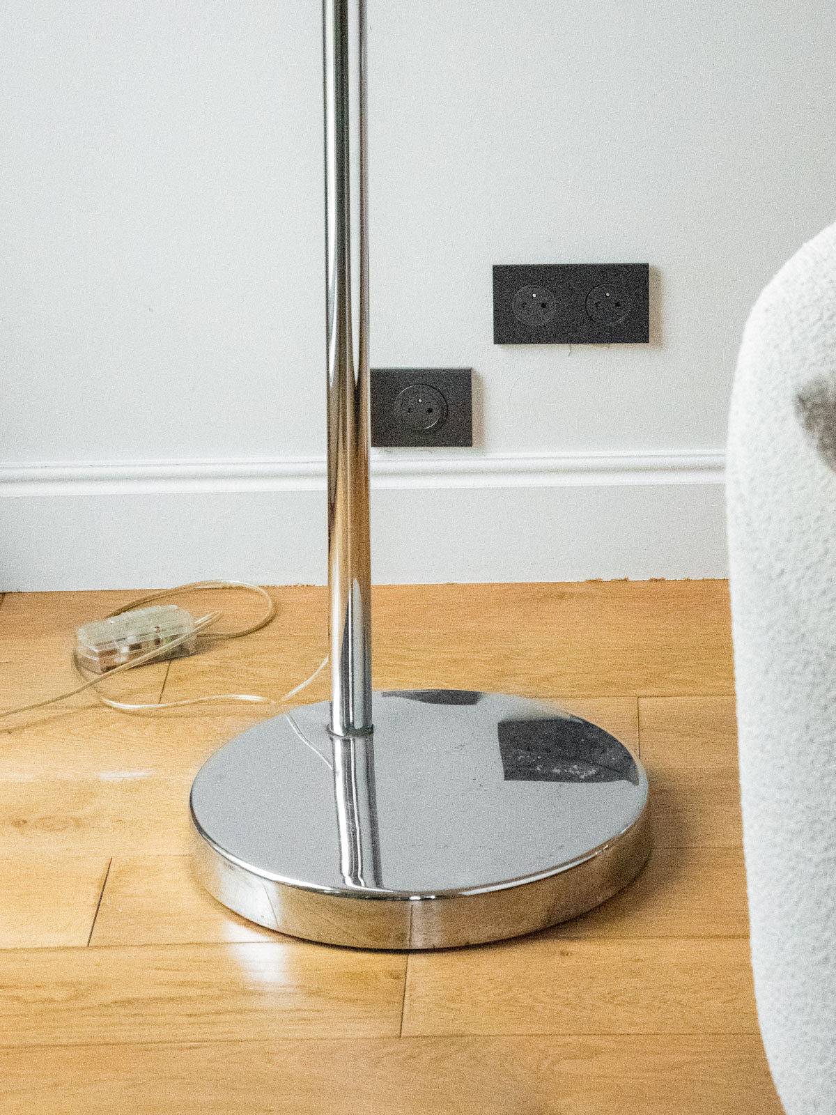 Ajoutez un éclairage sculptural à votre intérieur avec ce lampadaire en chrome au bras allongé et à l'abat-jour rond. Son socle circulaire assure une belle stabilité tandis que la finition chromée apporte une élégance contemporaine, idéale pour un salon ou un coin lecture. Le bras très long permet de diriger la lumière au‑dessus d'un canapé ou d'une table, révélant volumes et textures. Vendu sans ampoule, compatible E27. Légères usures sur le pied.