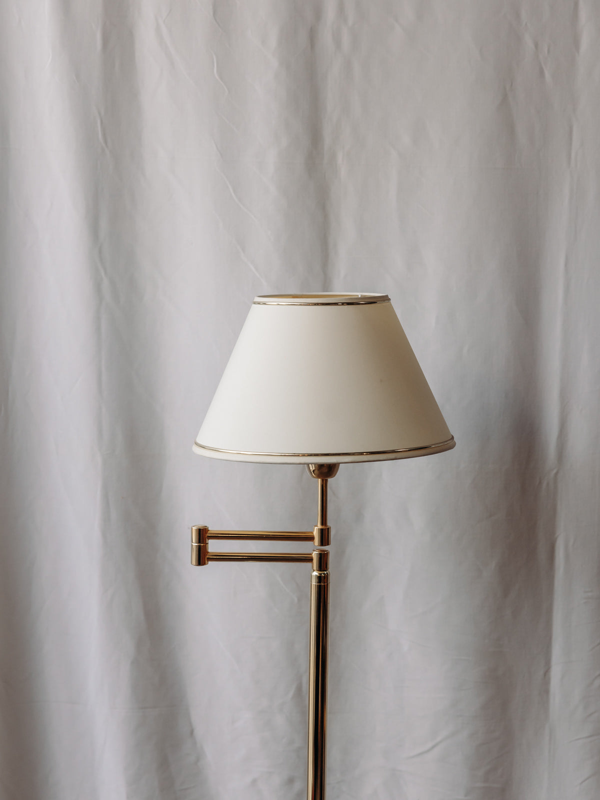 Découvrez ce lampadaire liseuse en laiton doré au dessin raffiné, coiffé d'un petit abat-jour clair qui diffuse une lumière chaleureuse. Sa hauteur réglable en fait un compagnon idéal pour le coin lecture comme pour le salon, tandis que le variateur permet d'ajuster l'intensité pour un éclairage concentré ou une ambiance plus douce. Conçu pour recevoir une ampoule en culot E27, le variateur fonctionne avec une ampoule à incandescence.