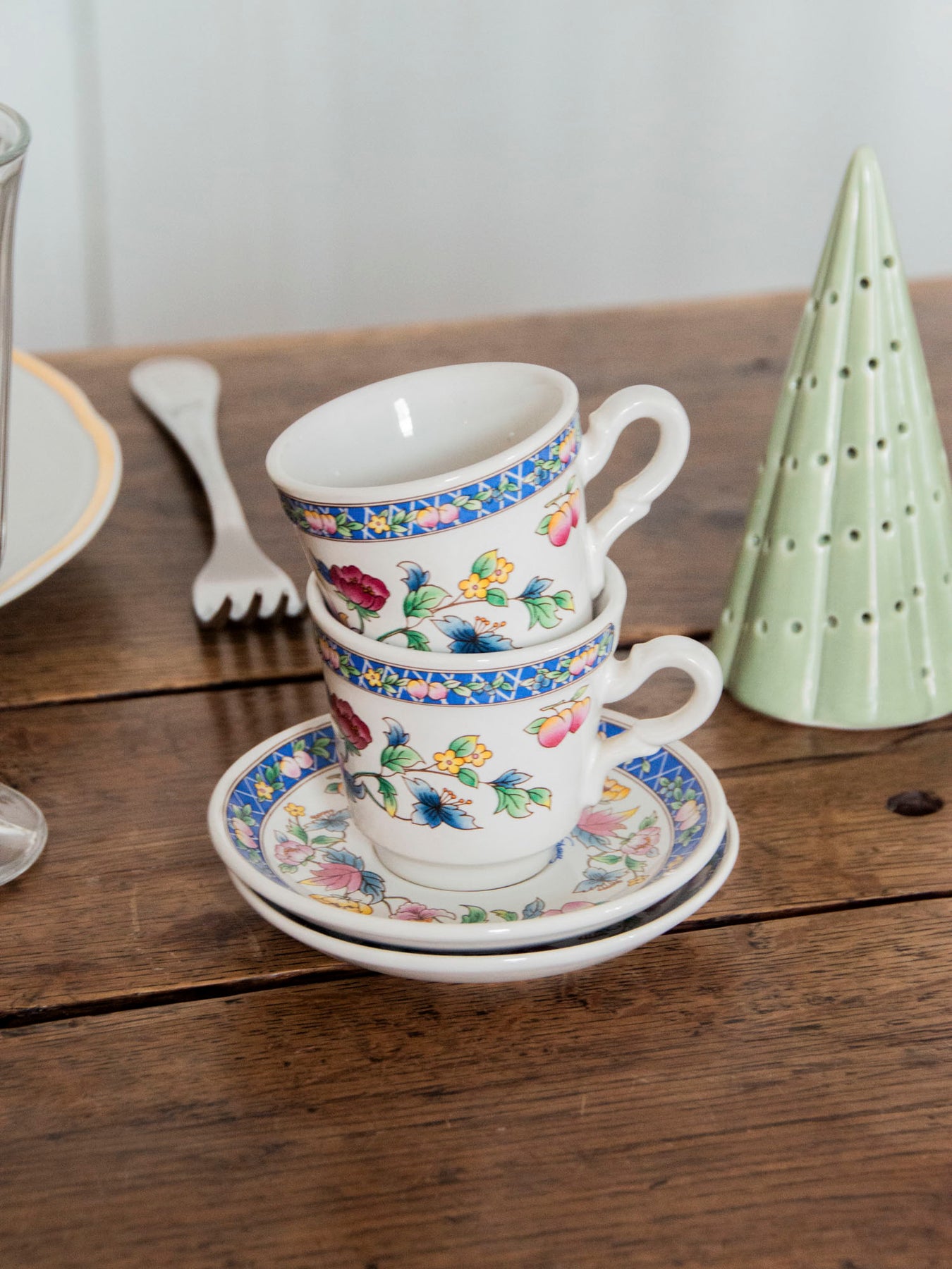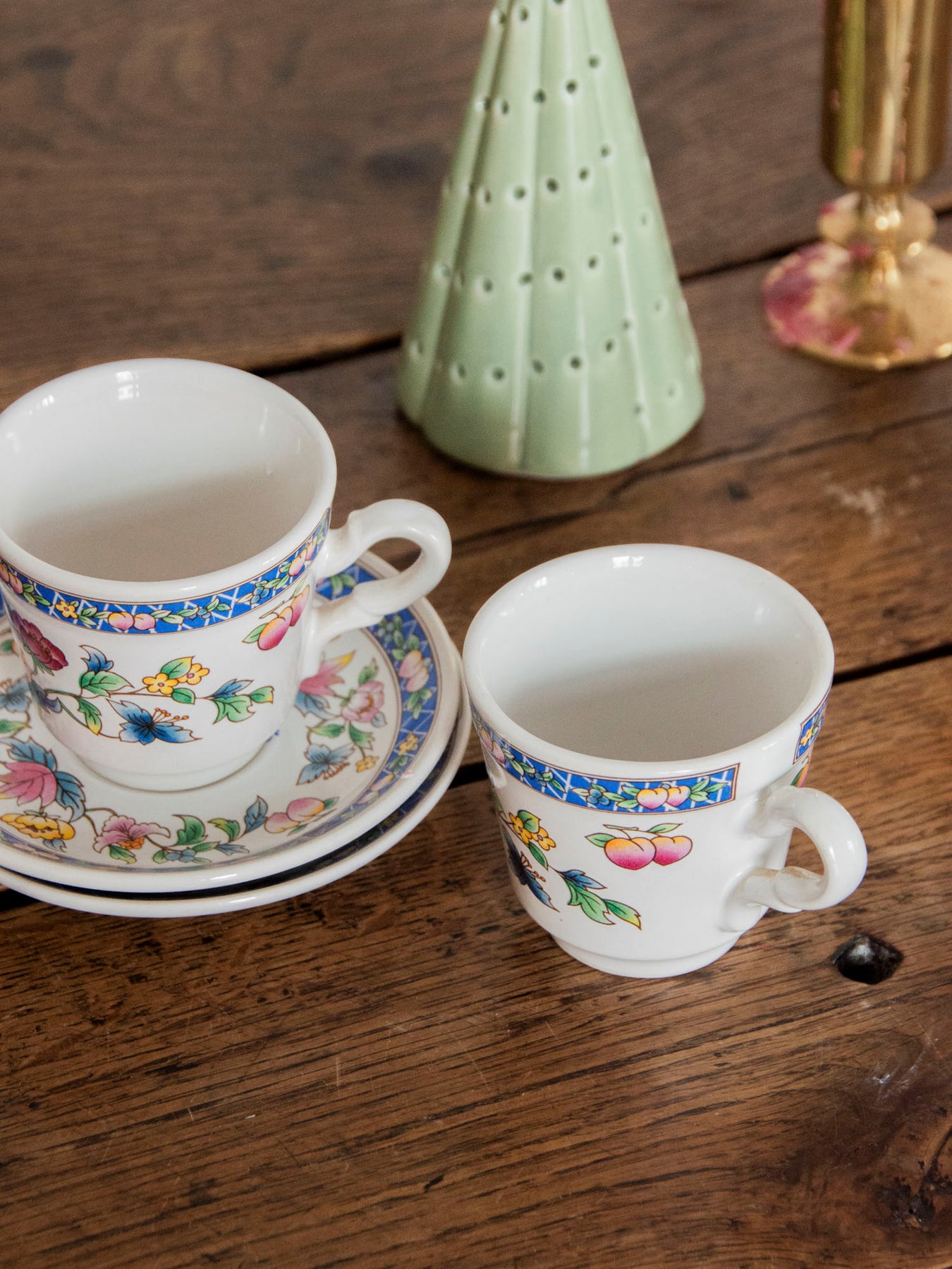 Invite these small, characterful, multicolored enamel cups to brighten up your coffee breaks. The glossy finish and delicate handle offer a comfortable grip, while the matching saucers create a harmonious set for two. Ideal in a small size for an espresso or a short tea, this set brings a cheerful and sophisticated touch to your table, blending practicality and handcrafted style for morning moments or a cozy afternoon tea.
