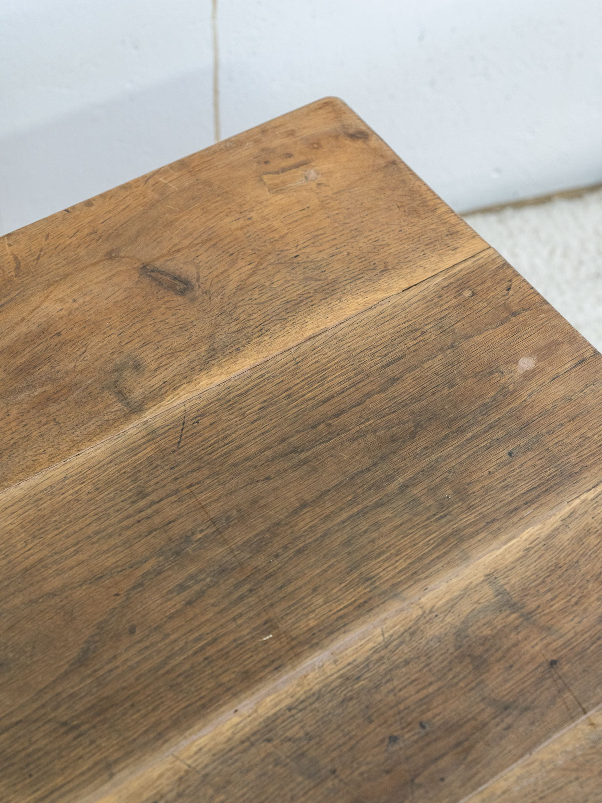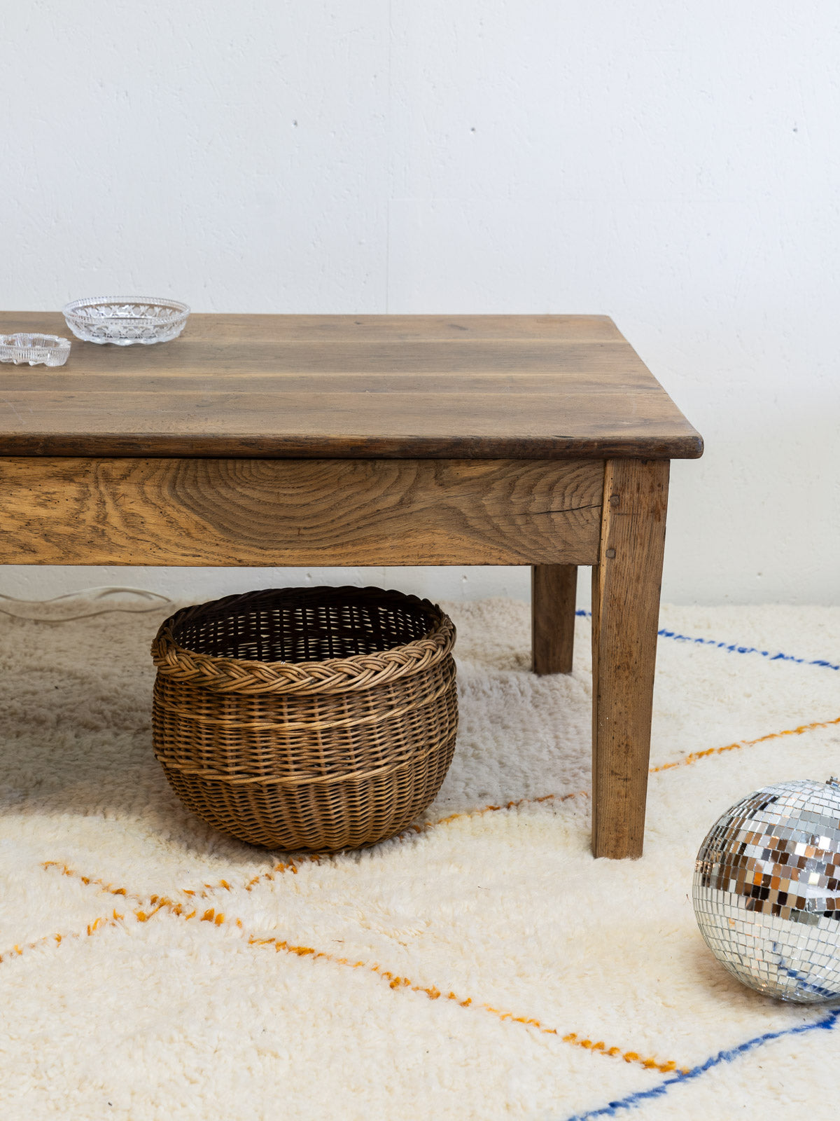 Choose this oak coffee table with its clean lines. Its natural finish highlights the wood grain, creating a subtle yet warm presence in your living room. Its generous proportions offer ample space for books, decorative objects, and cups, while still allowing room to breathe around the table. Its structure fosters a welcoming and bright atmosphere, easily complementing a contemporary or Scandinavian interior. A few signs of wear only add to its charm.