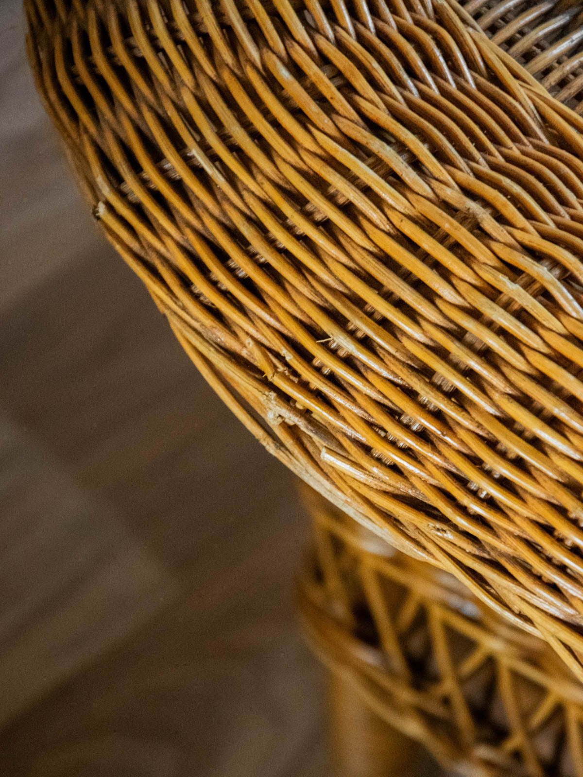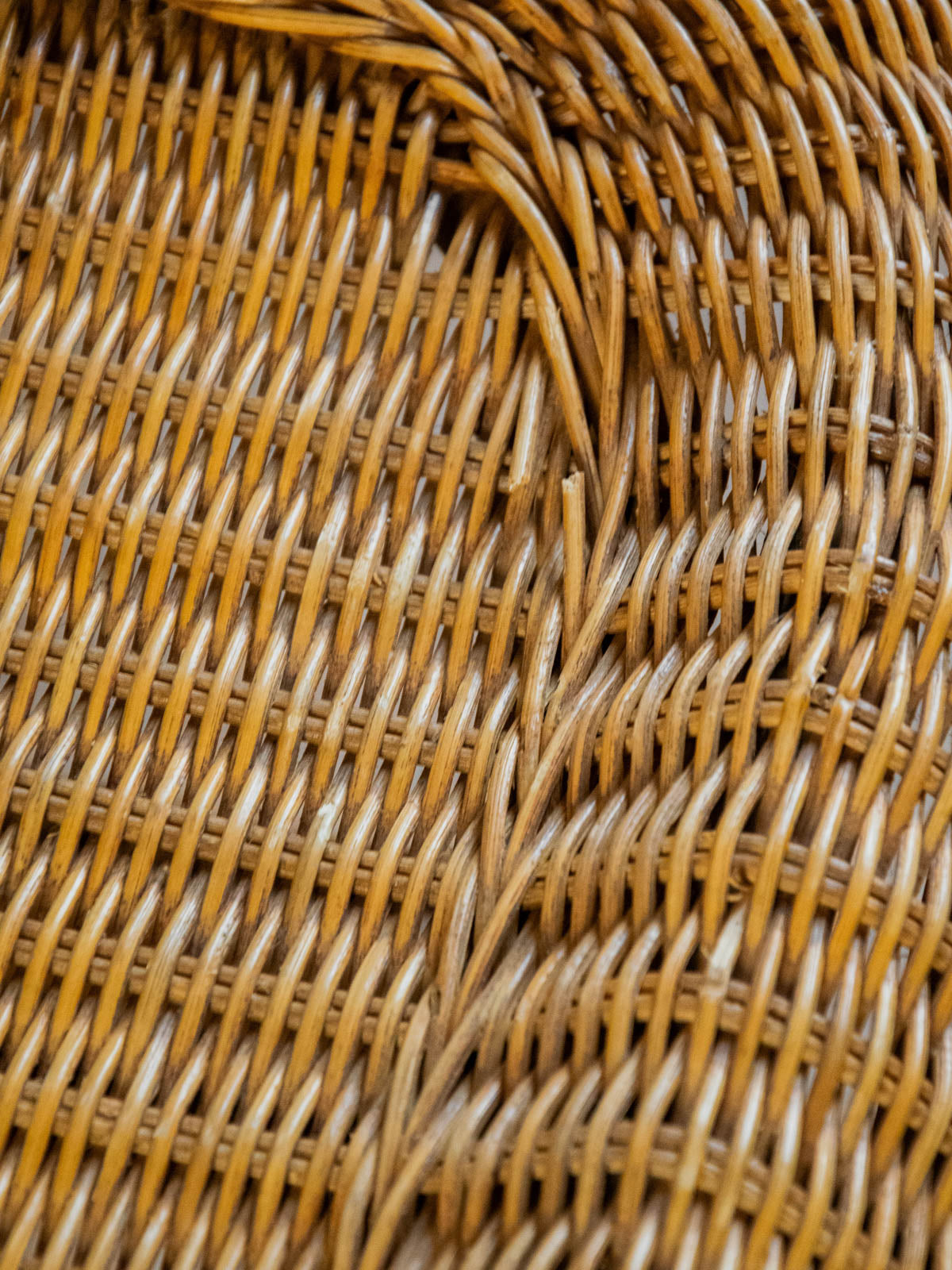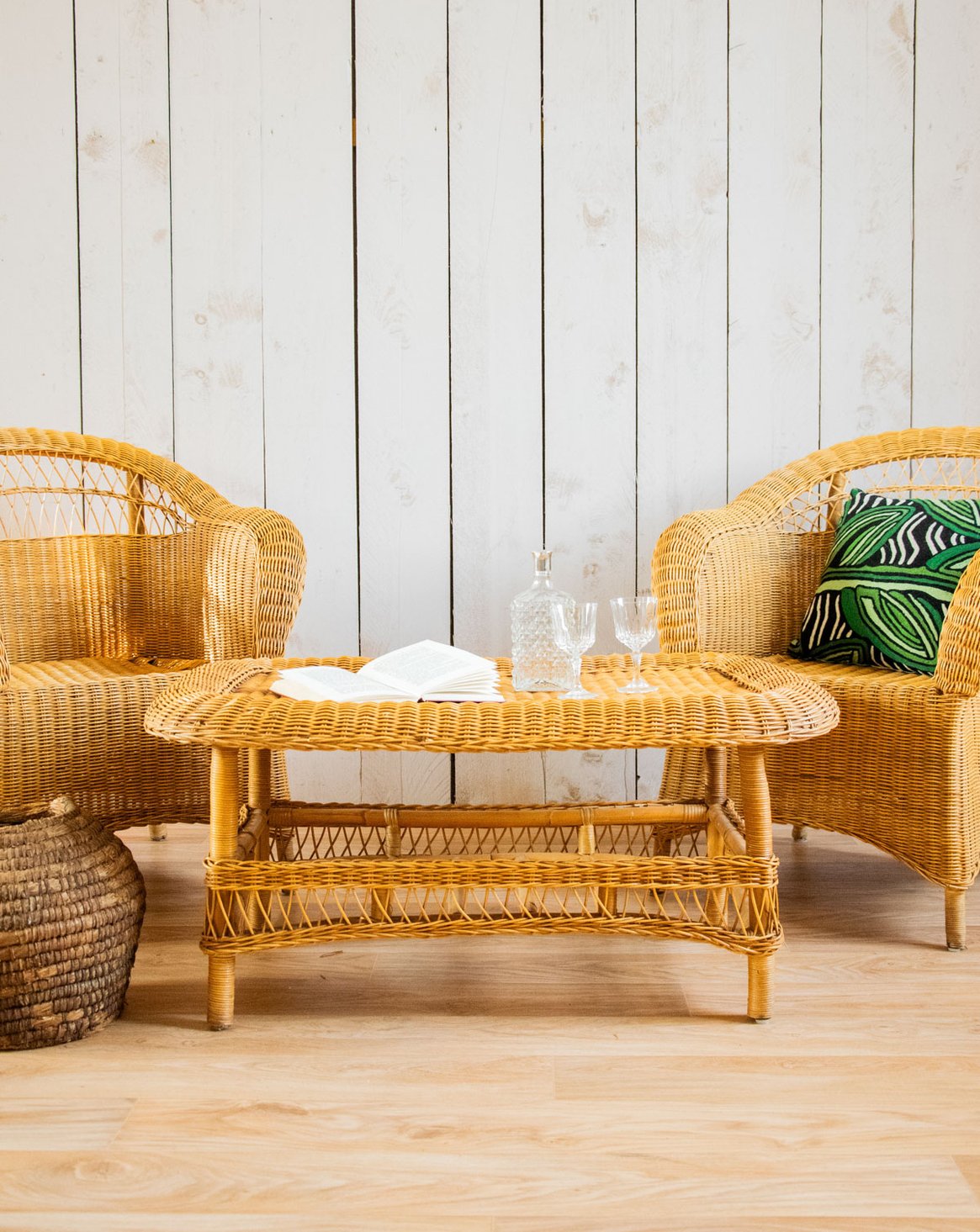 Add a touch of bohemian style and natural charm with this beautifully preserved rattan coffee table. Its airy lines and elongated silhouette create a welcoming atmosphere. The interior shelf offers ample surface space, while the absence of a top shelf provides a structured surface, perfect for displaying books and decorative objects. The open space underneath allows you to tuck away throws and baskets for discreet storage, creating a warm and relaxed ambiance.