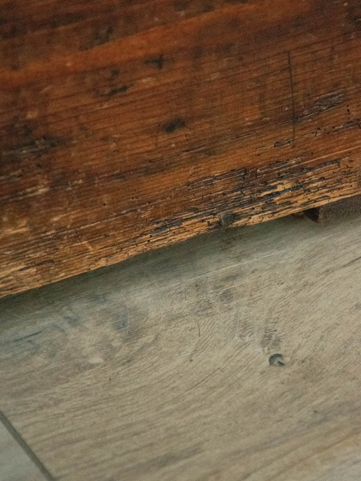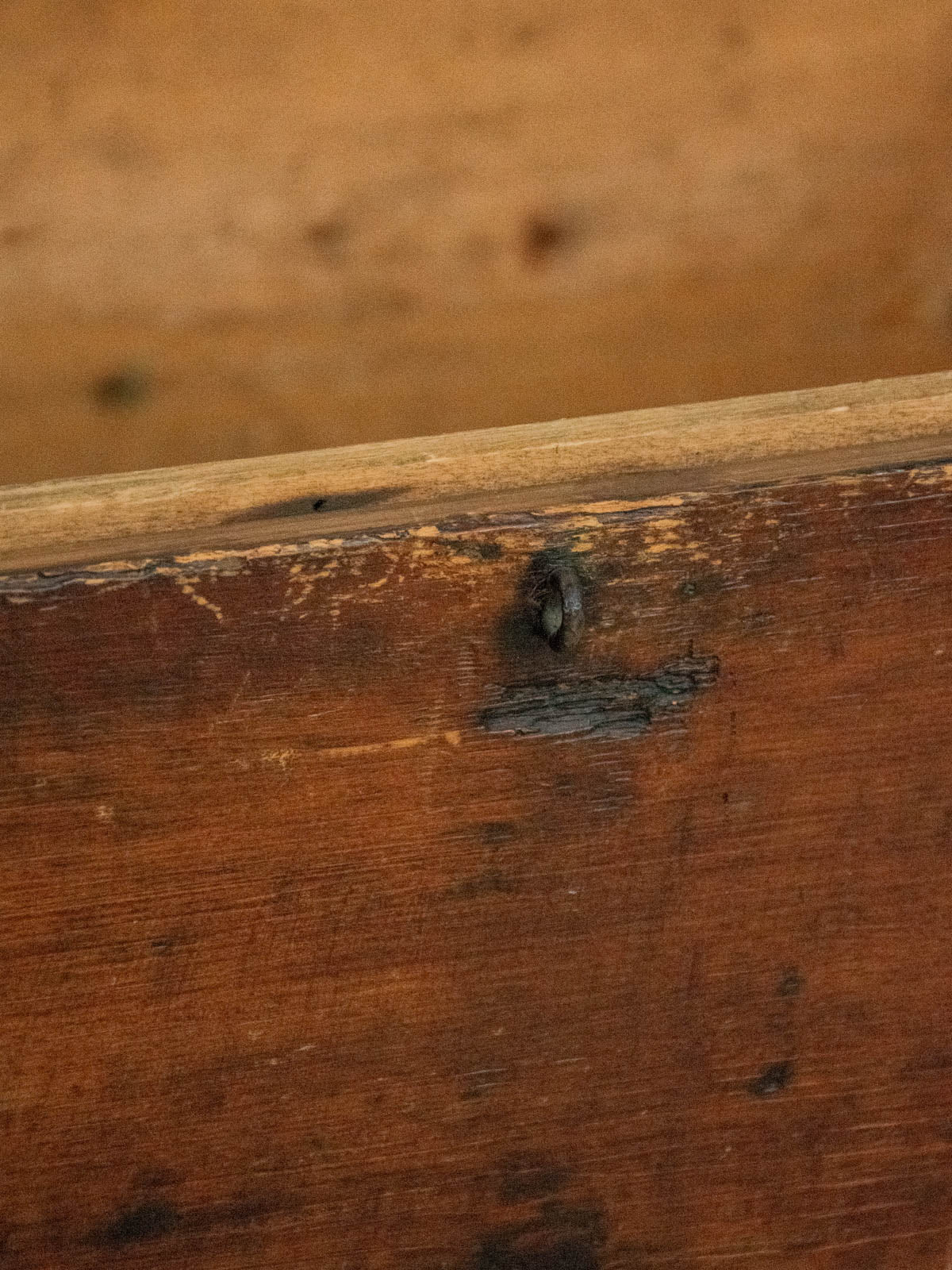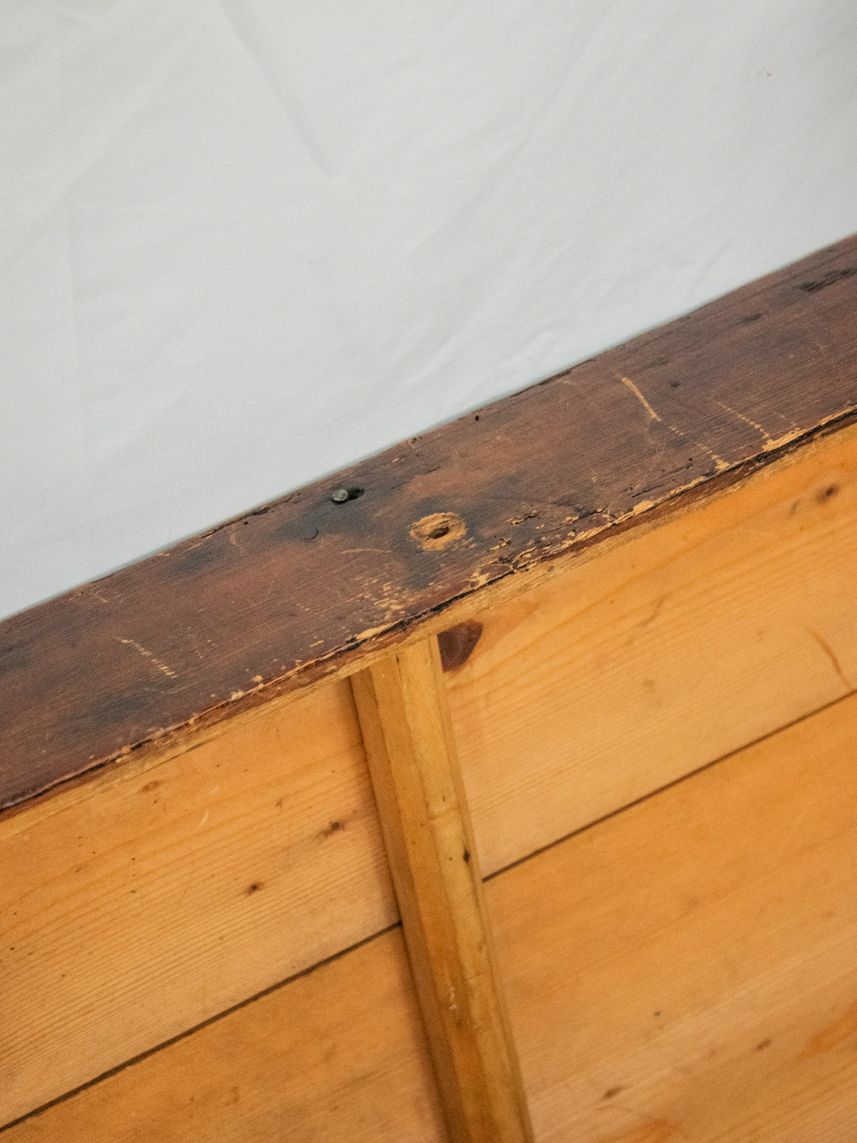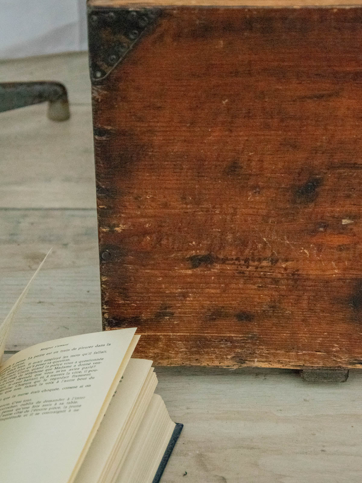Embrace this wooden chest with metal reinforcements, a piece that combines sturdiness and character. Its two metal handles and protected corners give it a structured look, ideal as a coffee table or side bar to create a warm and inviting atmosphere. Its generous size allows you to store linens, dishes, or accessories while also providing a practical surface for serving or displaying items. Minor signs of age are present, and the hanging strap is missing.