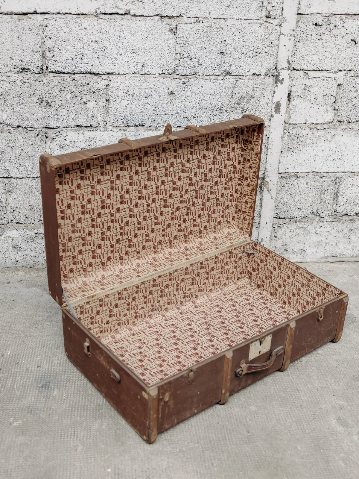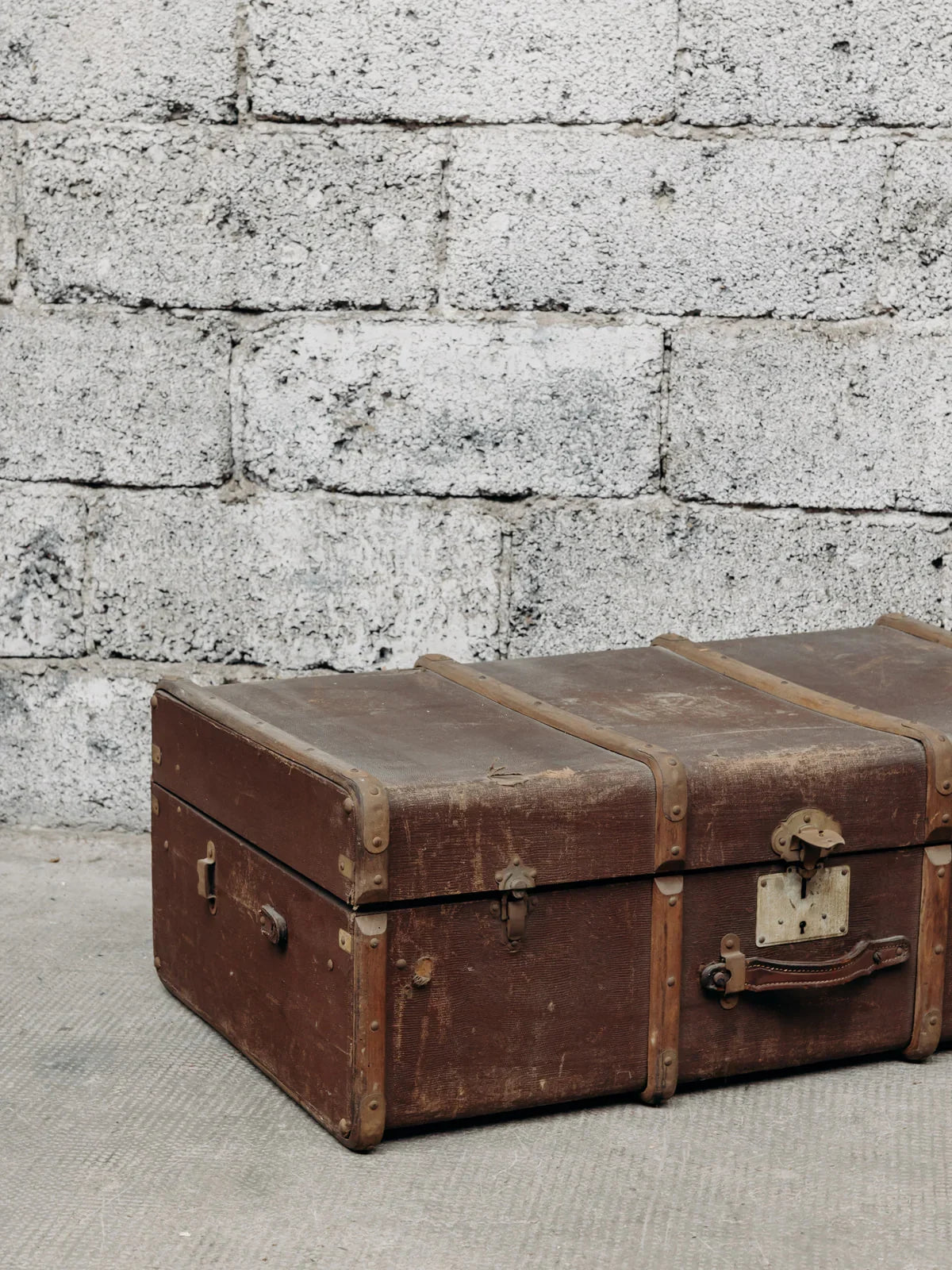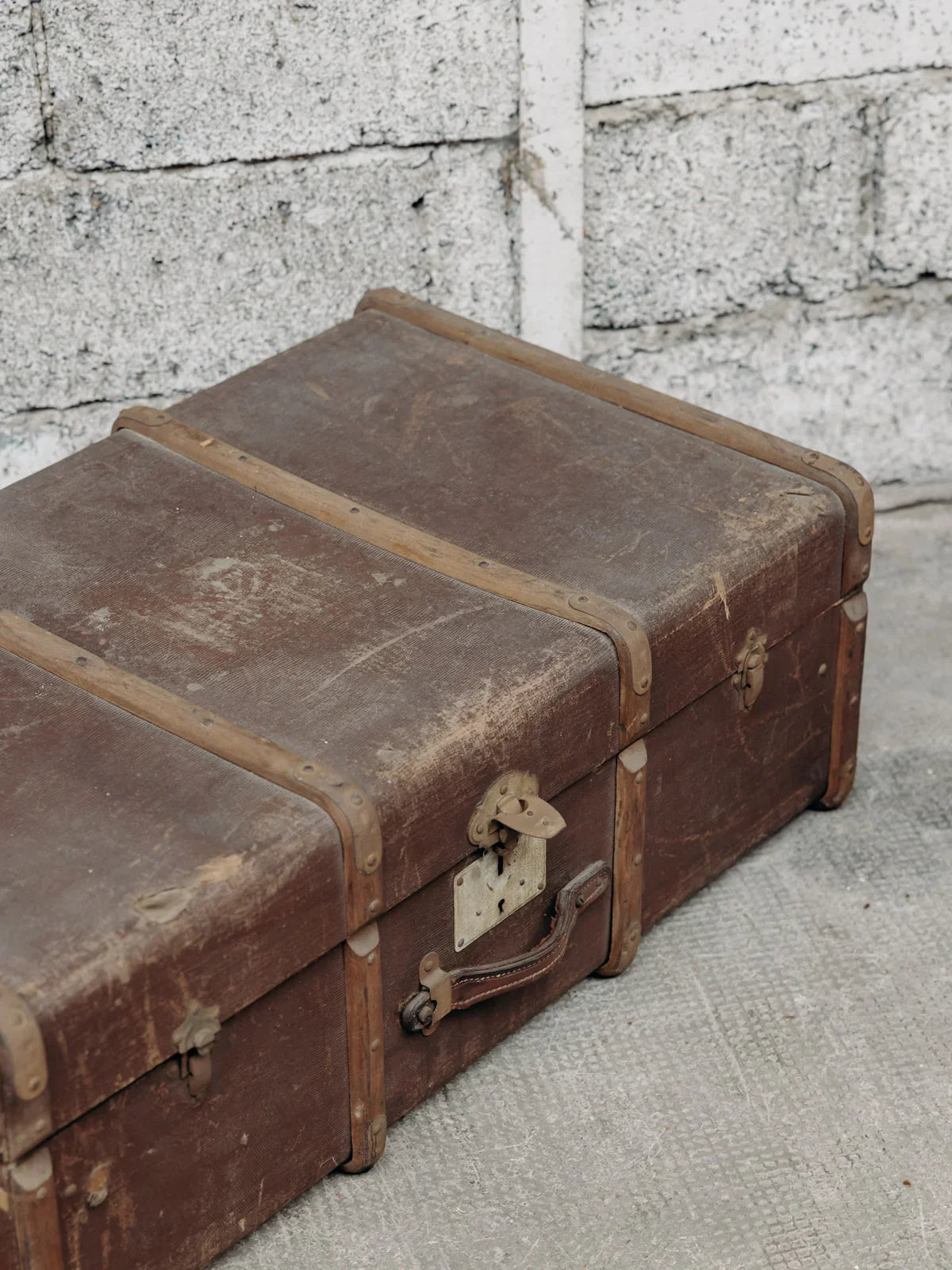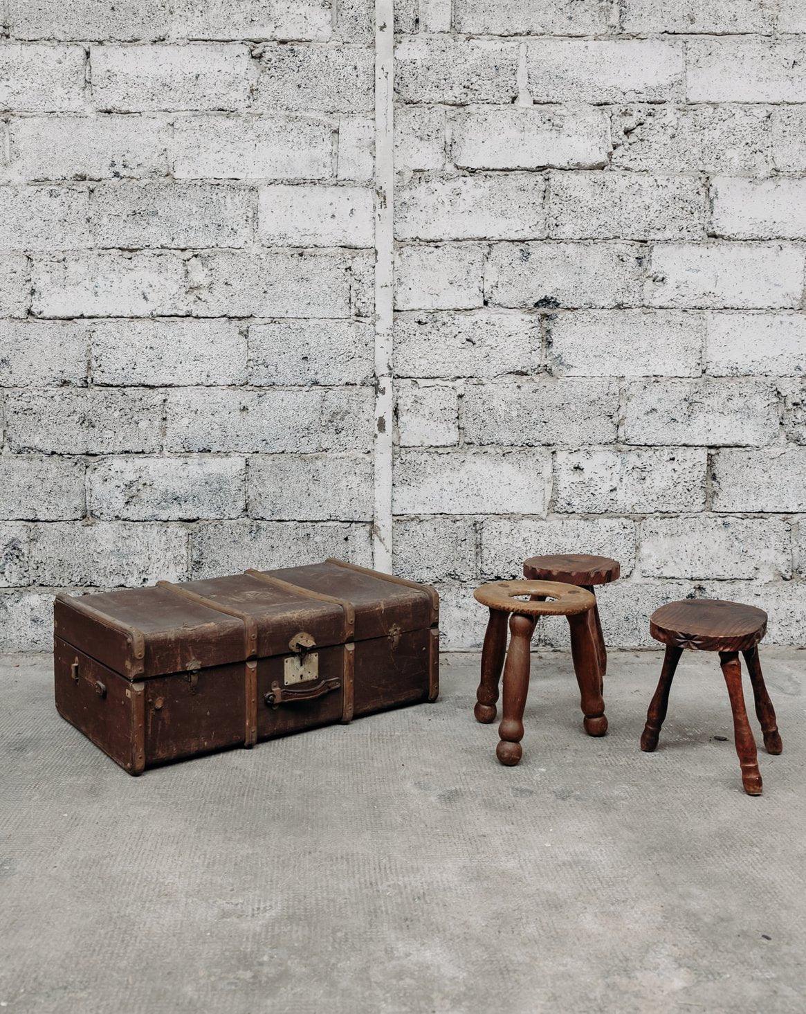 This vintage brown trunk evokes an old-world charm with its weathered wood and metal details. Both practical and decorative, it serves as storage while adding a touch of retro elegance to your interior. Perfect for a vintage or industrial style, it will bring character and warmth to your space. A few marks of time that bear witness to its former life.