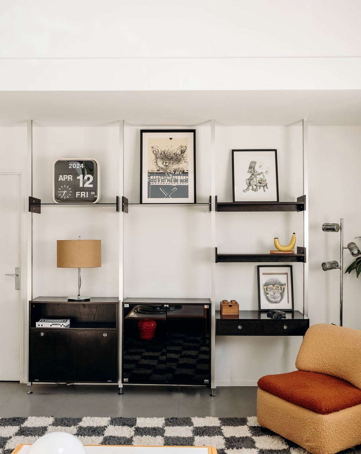 Discover the wood and brushed metal bookcase designed by Poul Cadovius. Combining elegance and functionality, this piece of furniture can also be used as a desk, providing you with a modern and aesthetically pleasing workspace. Its wood and glass shelves allow you to display your items with ease, bringing a touch of sophistication to your home. Ideal for design lovers, this bookcase blends harmoniously into any decor style.