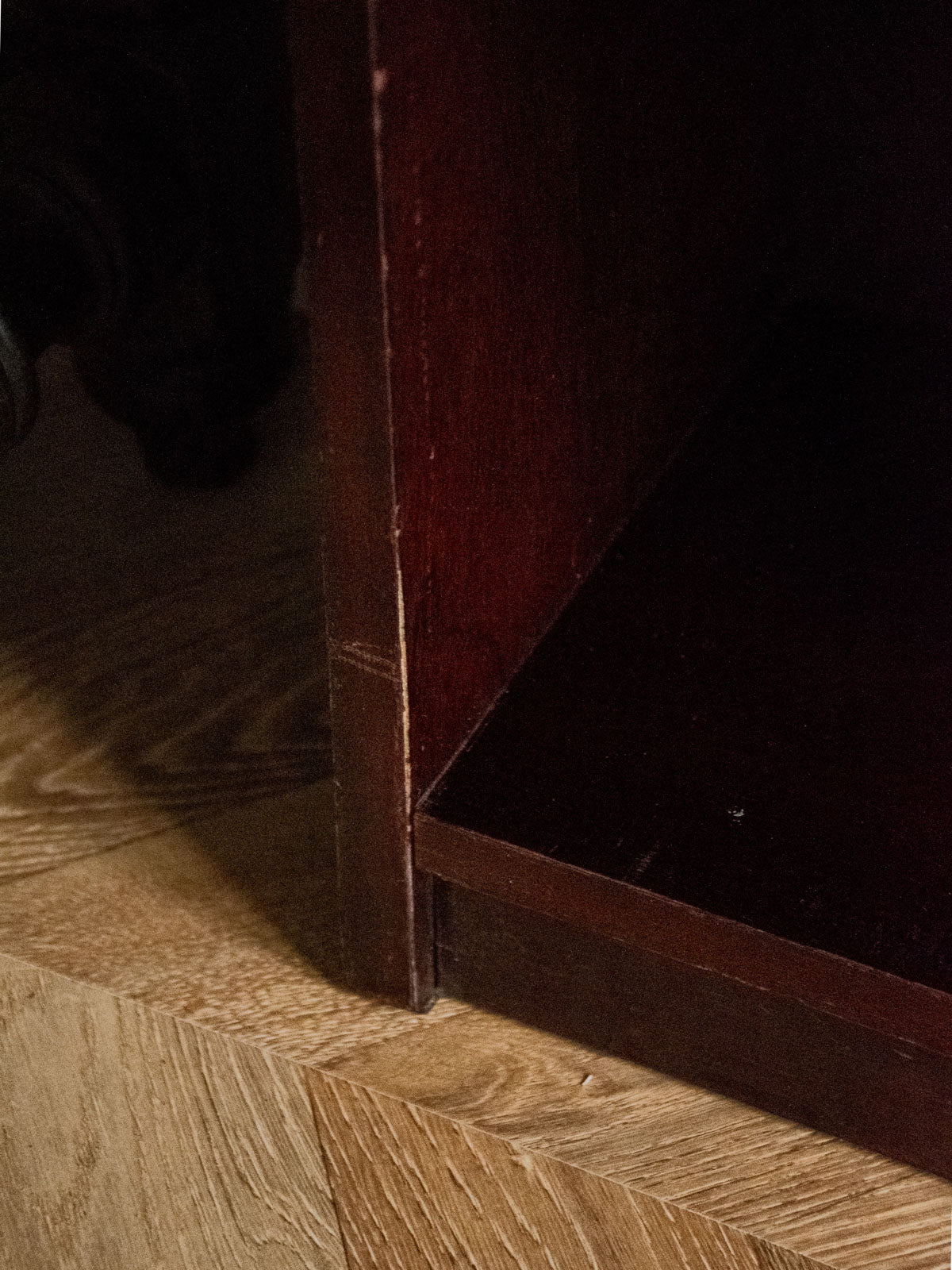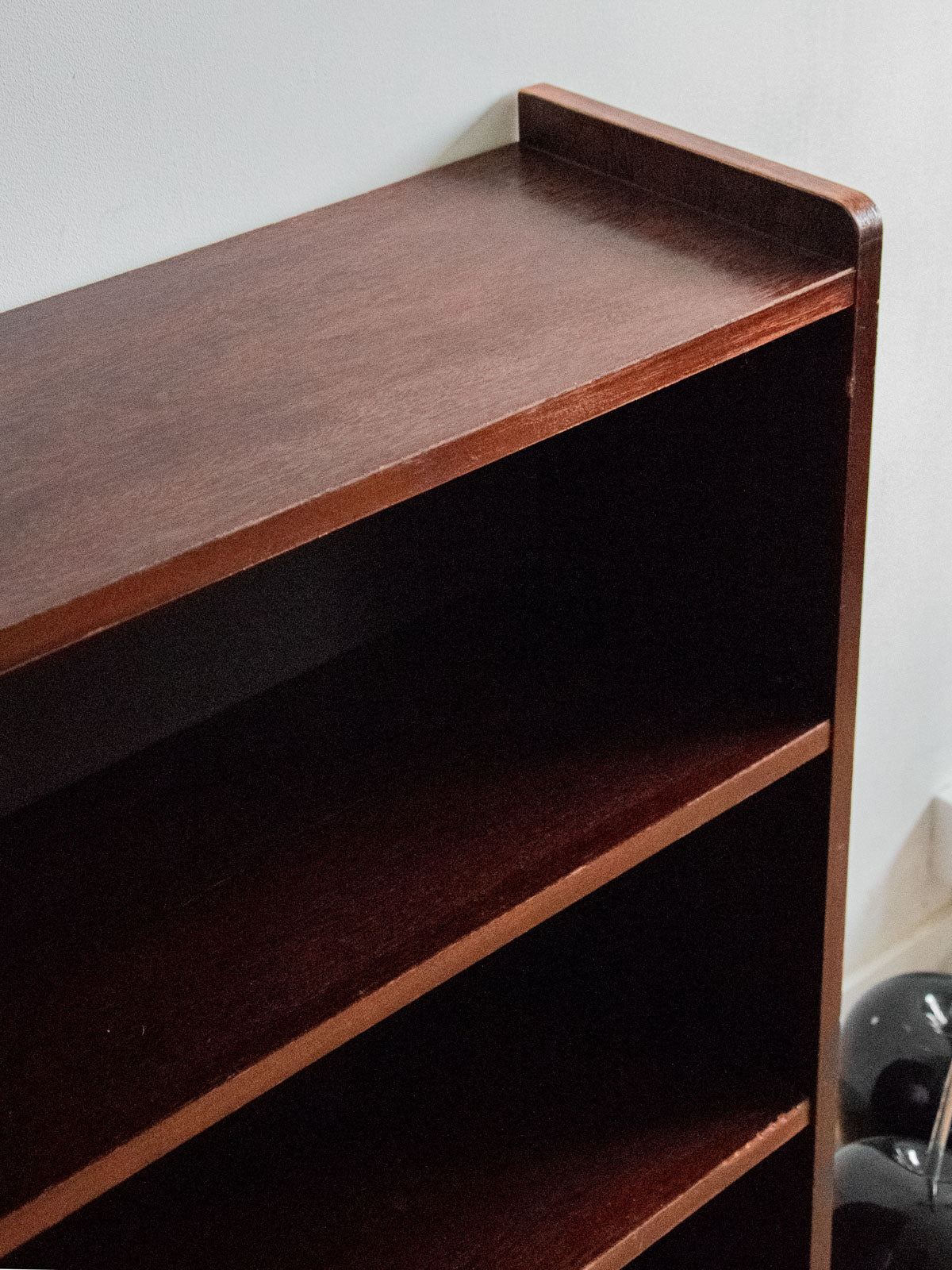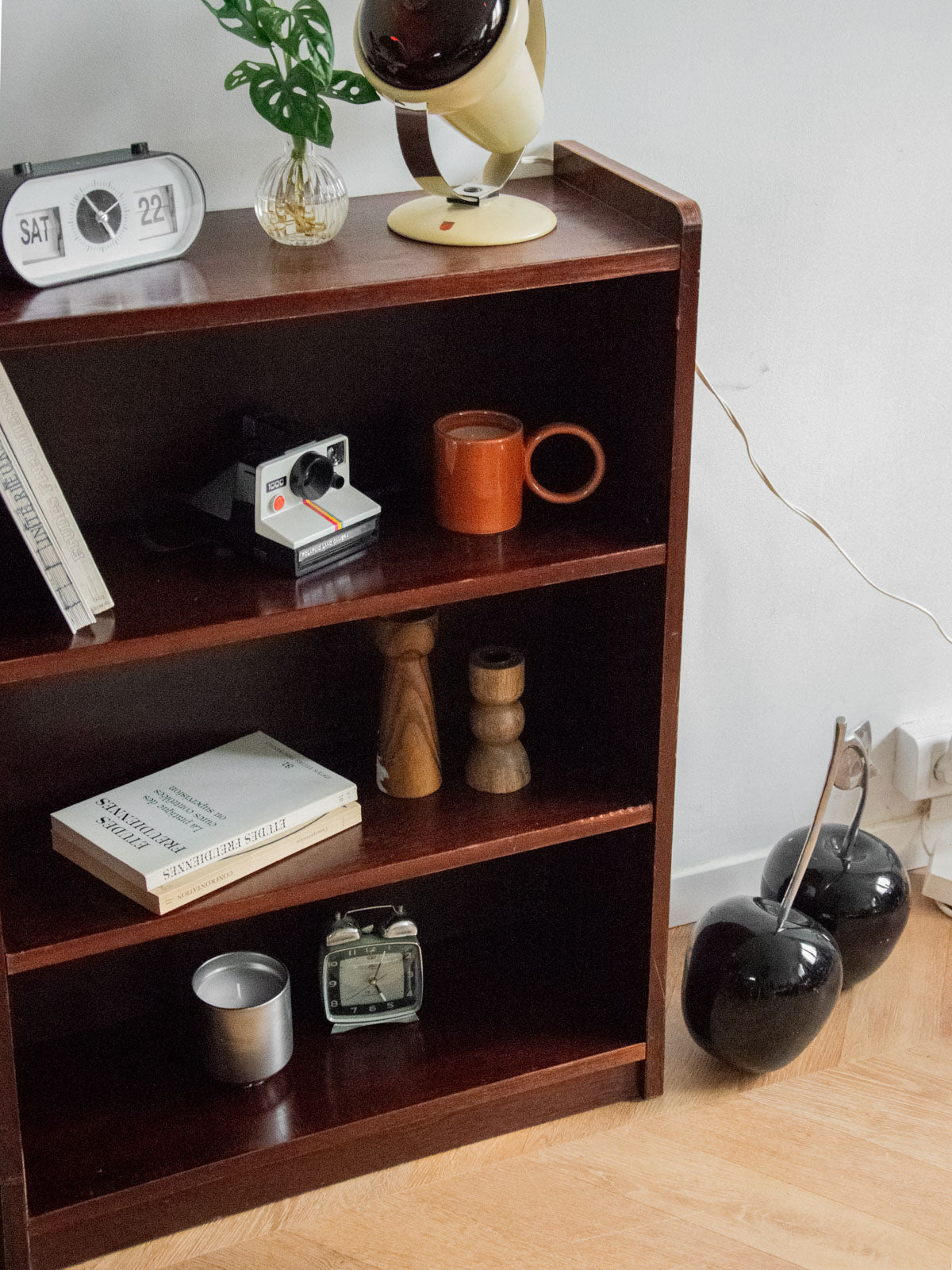 Choose this dark wood bookcase, with its clean lines and compact proportions that blend seamlessly into a living room, entryway, or office. Its two adjustable shelves offer practical storage for books, decorative items, and files, while the warm wood finish creates an elegant and inviting atmosphere. Made to NF furniture standards, it combines quality and functionality. Minor dents and wear are present on the edges.