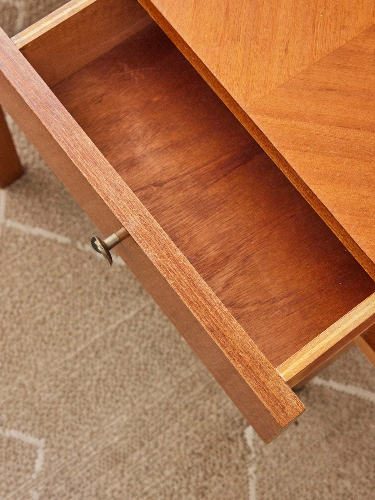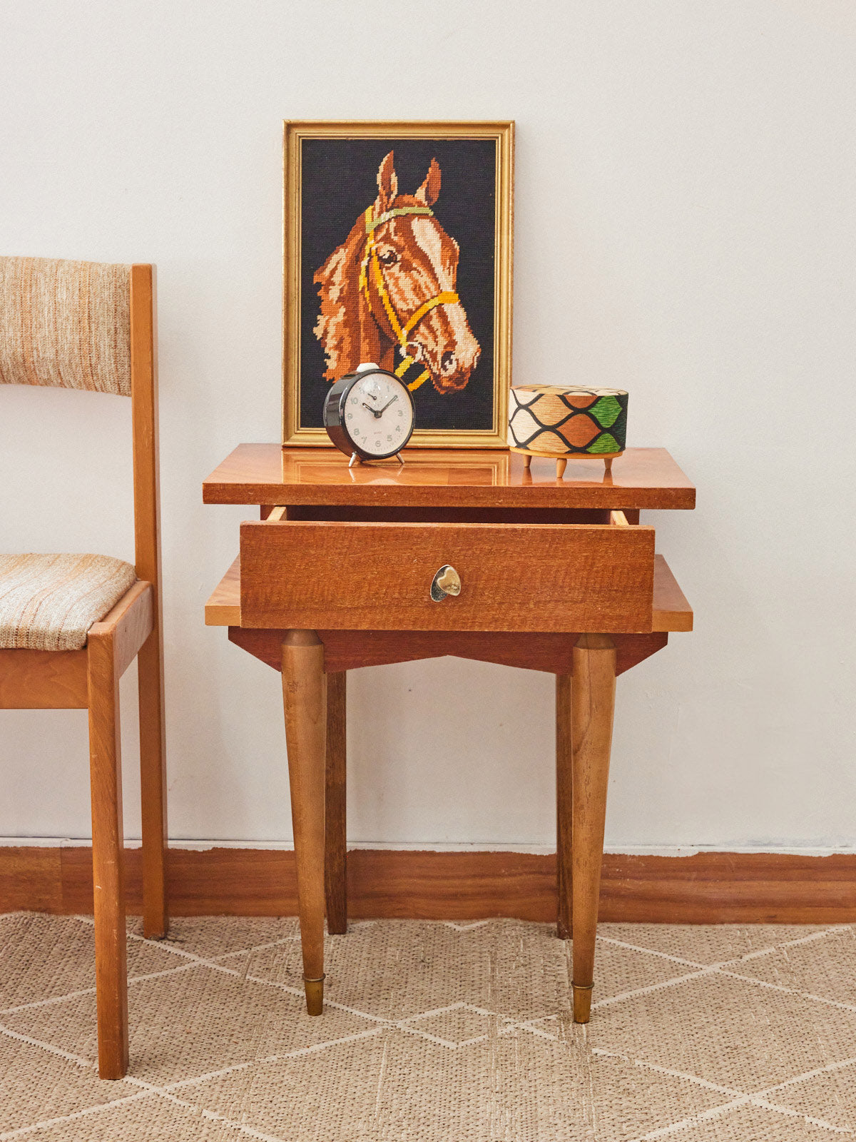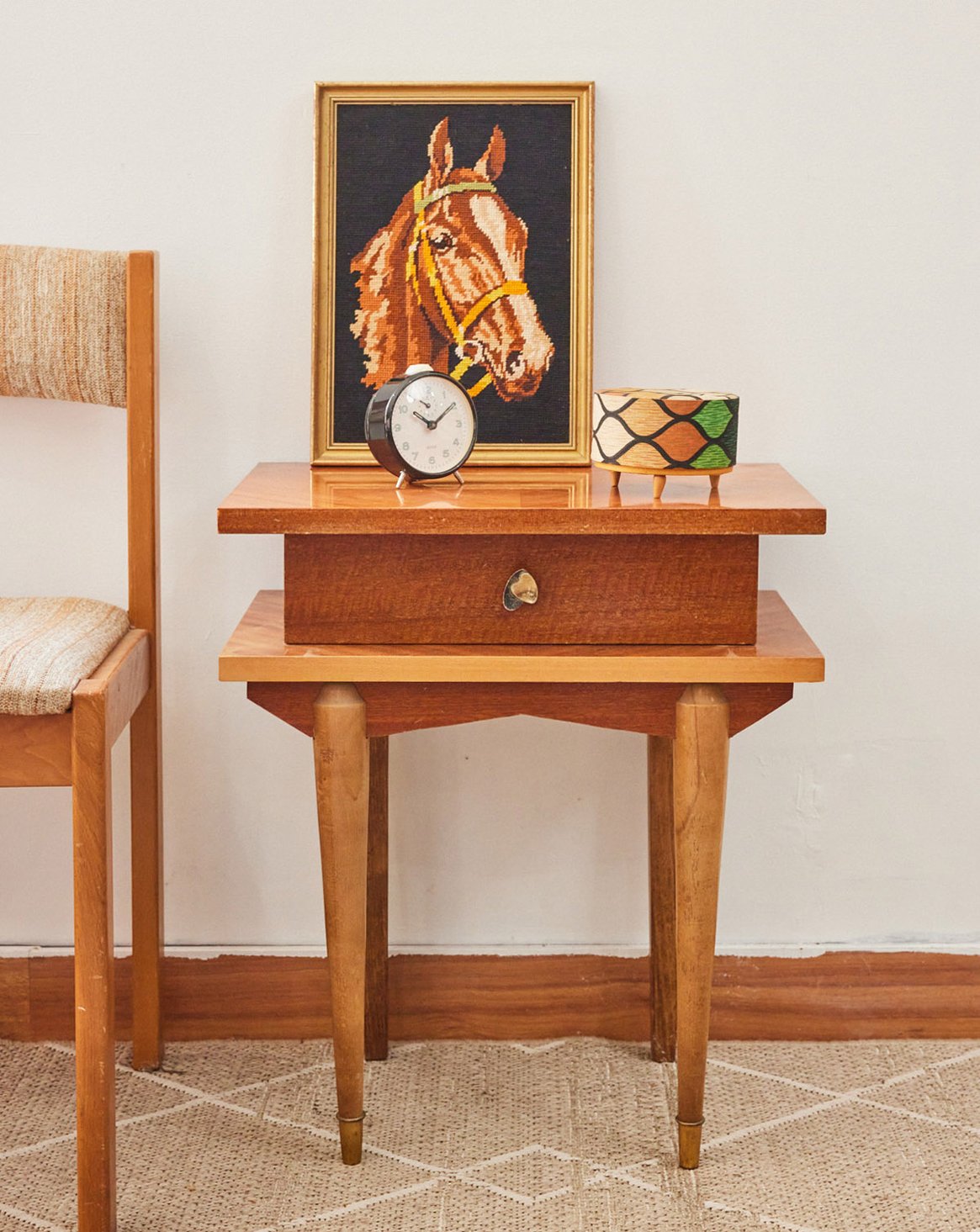 Adoptez ce chevet en bois verni, au fini lisse qui met en valeur la chaleur naturelle du matériau et révèle des lignes simples et élégantes. Ses proportions compactes offrent un espace pratique pour une lampe, un livre et l'indispensable du soir, tout en apportant un rangement discret à la chambre. Sa patine et son toucher soigné instaurent une atmosphère douce et intemporelle, idéale pour un intérieur chaleureux et sobre.