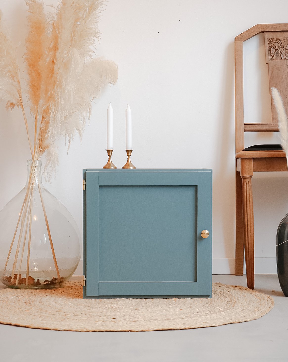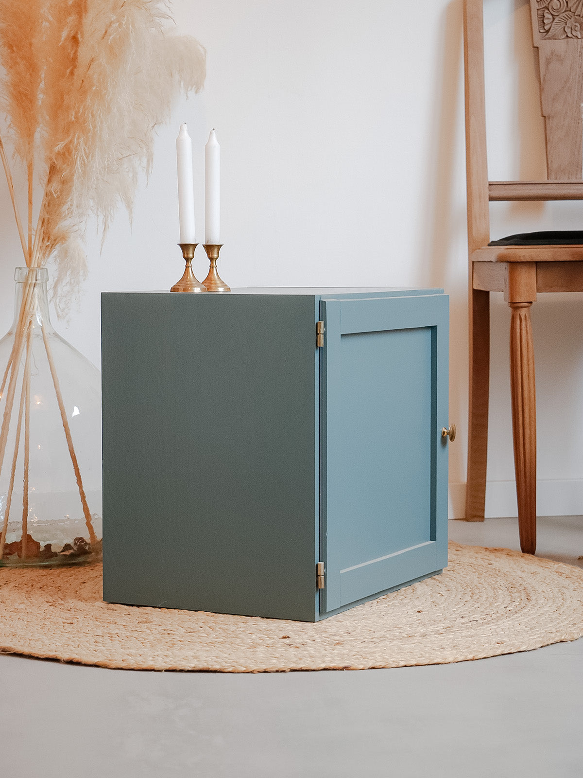 Adoptez cette table de chevet des années 80 en caisson de bois, habillée d'un bleu Inchyra qui apporte une touche apaisante et contemporaine. Sa porte unique dévoile un espace de rangement ingénieux avec une étagère intérieure, parfait pour ranger livres et petits objets du quotidien. De proportions compactes, elle trouve facilement sa place même dans les chambres aux volumes réduits et équilibre lignes vintage et sobriété moderne pour une ambiance chaleureuse et raffinée.