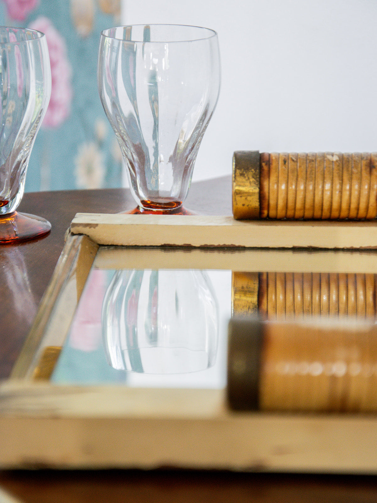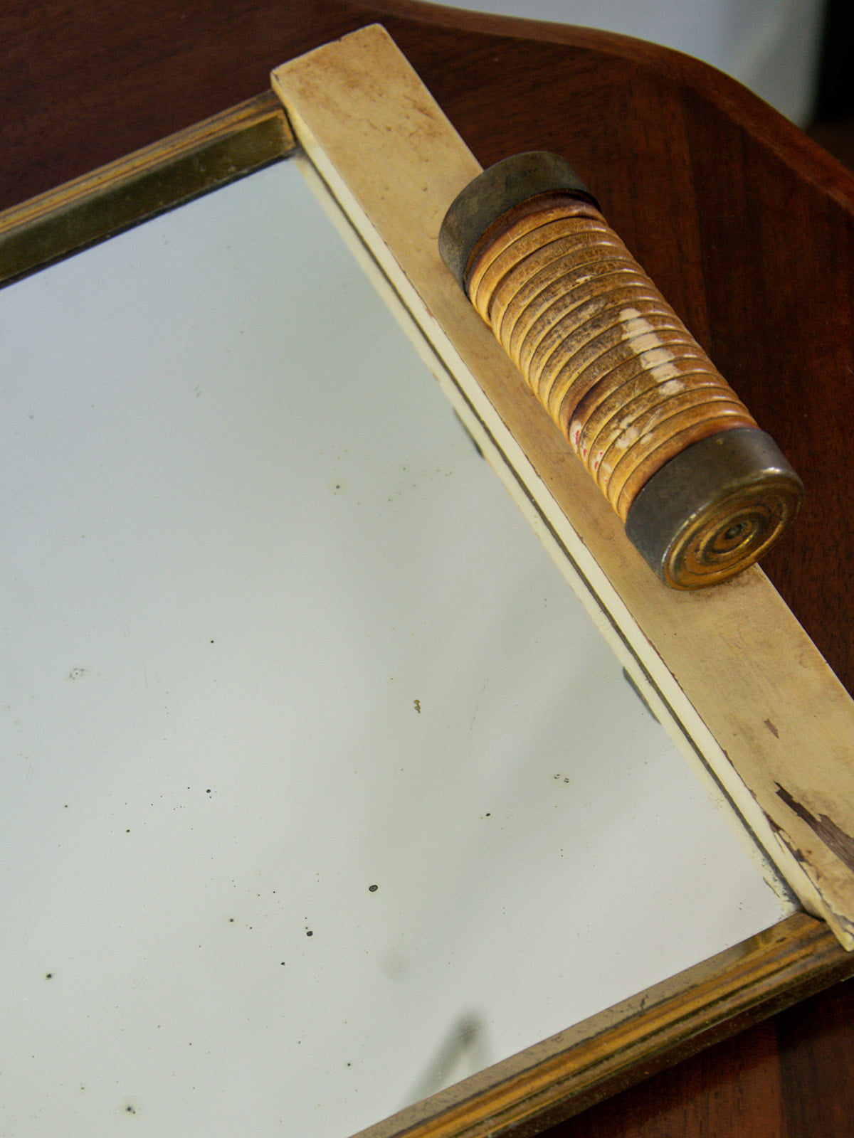 Bring a touch of retro charm to your decor with this antique tray mirror, featuring a slightly pitted vintage mirror that bears witness to the passage of time. The rattan handles add a natural and delicate note, while the brass finishes bring a touch of elegance. The wood, marked by the traces of time, gives this mirror an undeniable authenticity, perfect for a vintage or timeless interior. A unique decorative piece that combines character and old-world beauty.