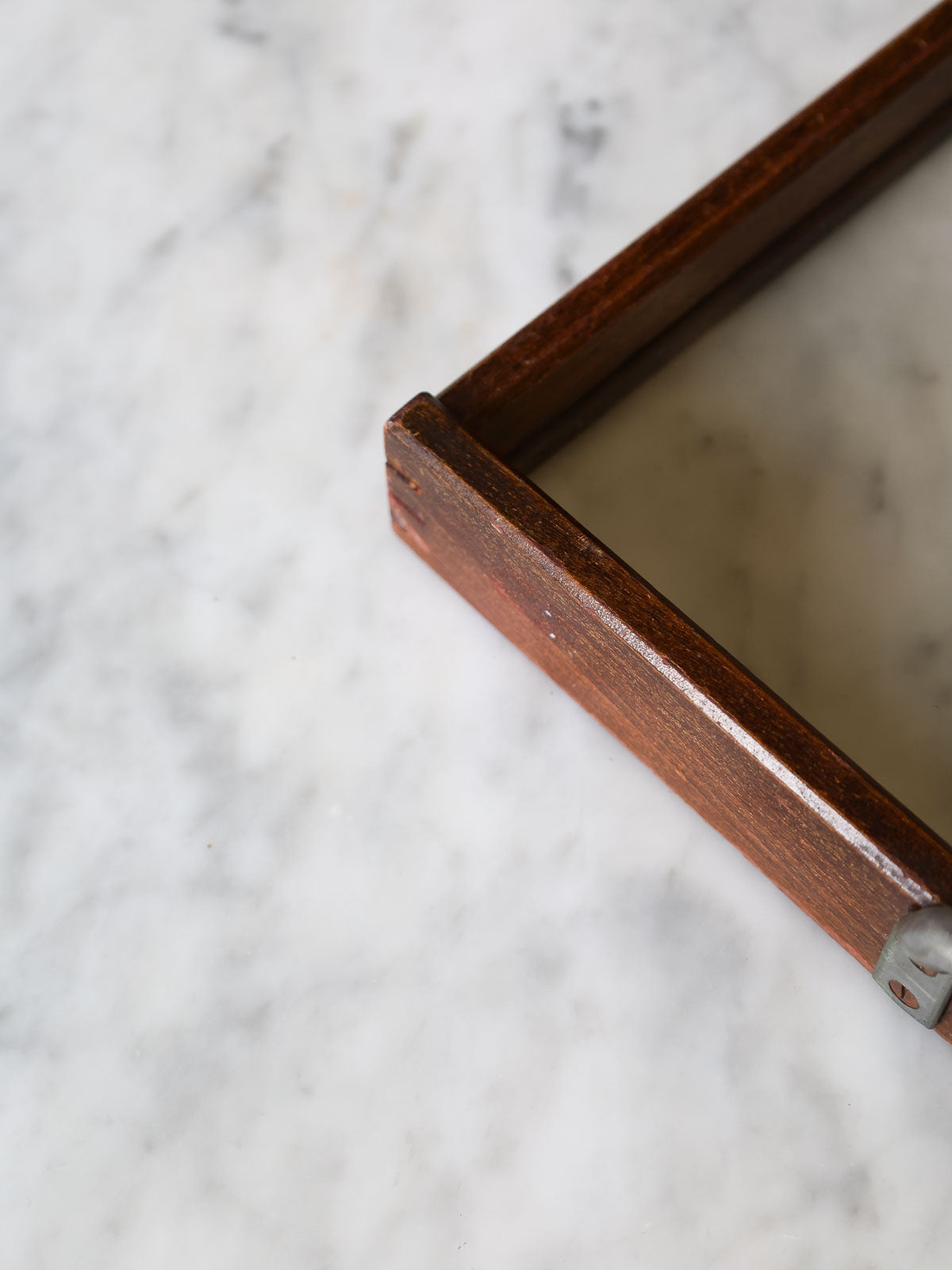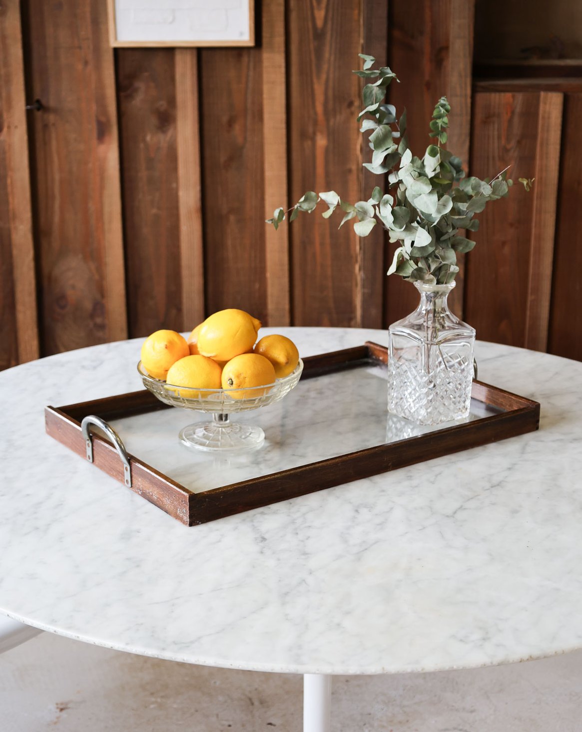 Bring this glass tray with its dark wood frame and metal handles to your table. Its understated elegance will enhance your shared moments. Its medium size and slim profile make it ideal for appetizers, breakfasts, or floral arrangements, while the thin frame highlights the purity of the glass. The discreet and practical metal handles make serving easy and add a contemporary touch, bringing warmth and refinement to your table.
