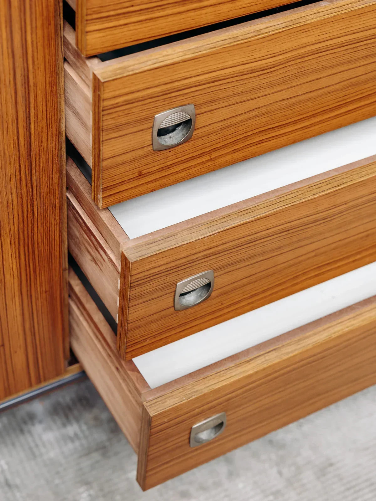 The first Scandinavian sideboards appeared in the 1950s. The Scandinavian-style sideboard is part of the innovative post-war furniture. Its airy lines and rectilinear volumes reflect the sober style of modernist inspiration, with all the characteristics of Norwegian, Swedish, and Finnish designers. The Scandinavian sideboard is made of traditional cabinetry, generally teak wood. It is used as a replacement for the traditional dining room buffet and now serves as a console table. For a designer and pleasant living room, the sideboard is the perfect piece of furniture!