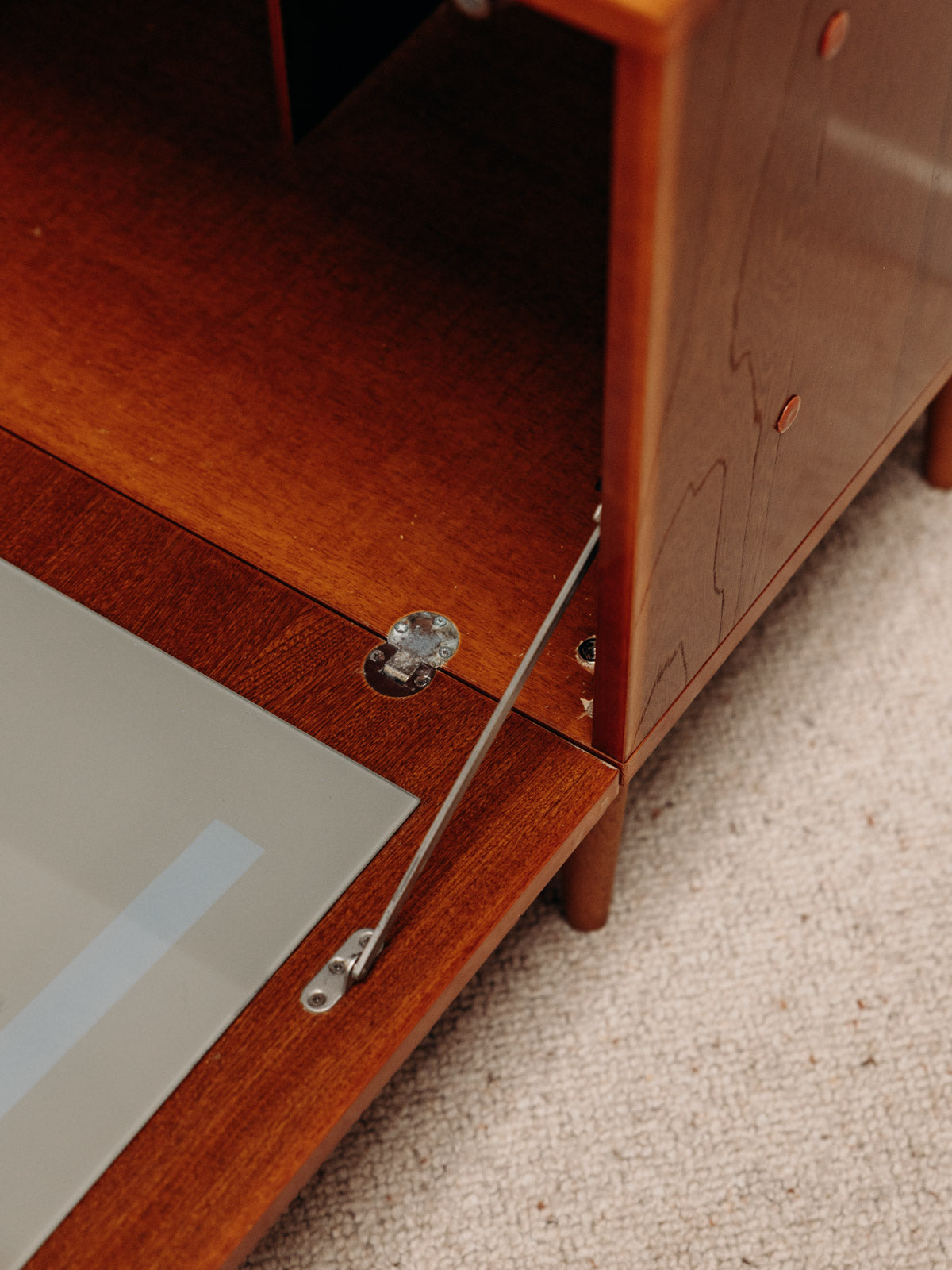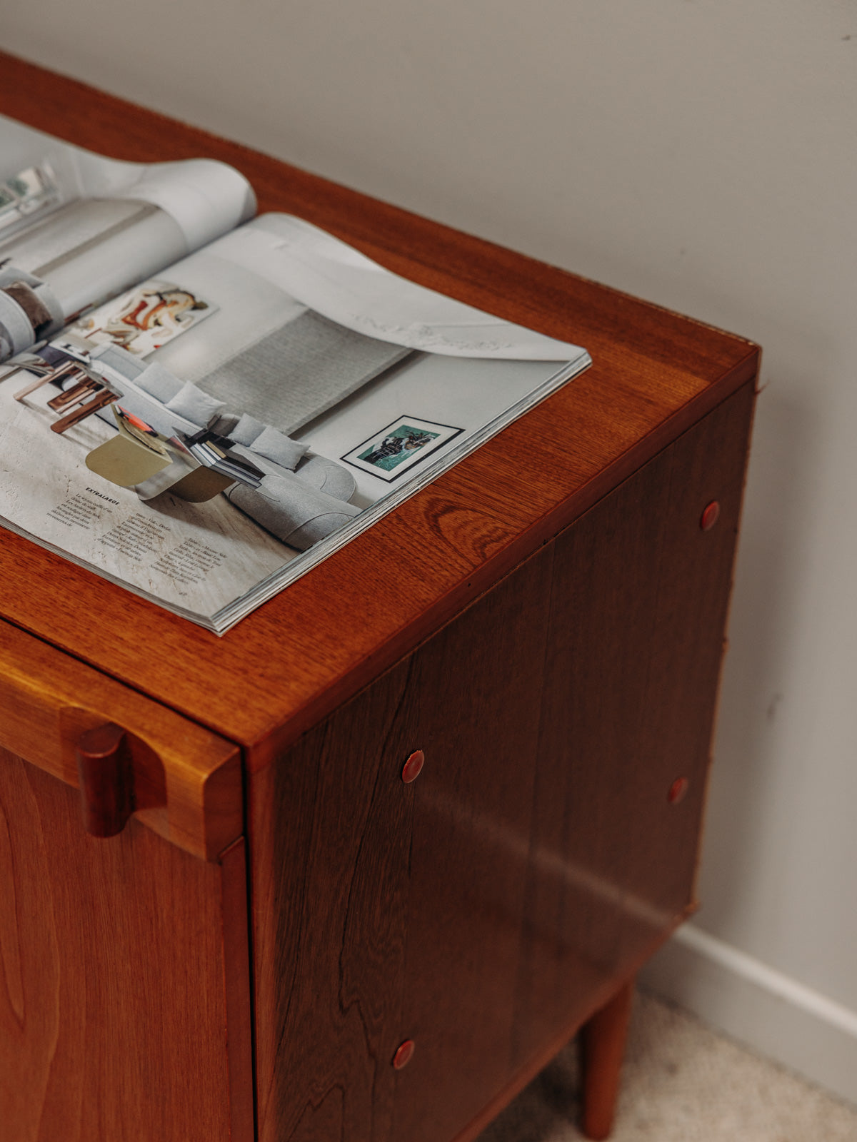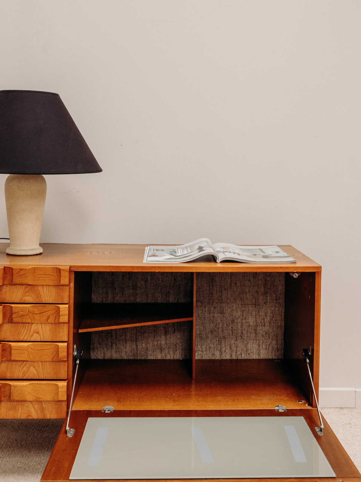 It was in the 1950s that the first Scandinavian sideboards appeared. The Scandinavian-style sideboard is part of the innovative furniture of the post-war era. Its airy lines and rectilinear volumes reflect the understated, modernist-inspired style, with all the hallmarks of Norwegian, Swedish, and Finnish designers. The Scandinavian sideboard is crafted using traditional cabinetmaking techniques, generally in teak. It is used as a replacement for the traditional dining room buffet and now also serves as a console table. For a stylish and inviting living room, the sideboard is the perfect piece of furniture!