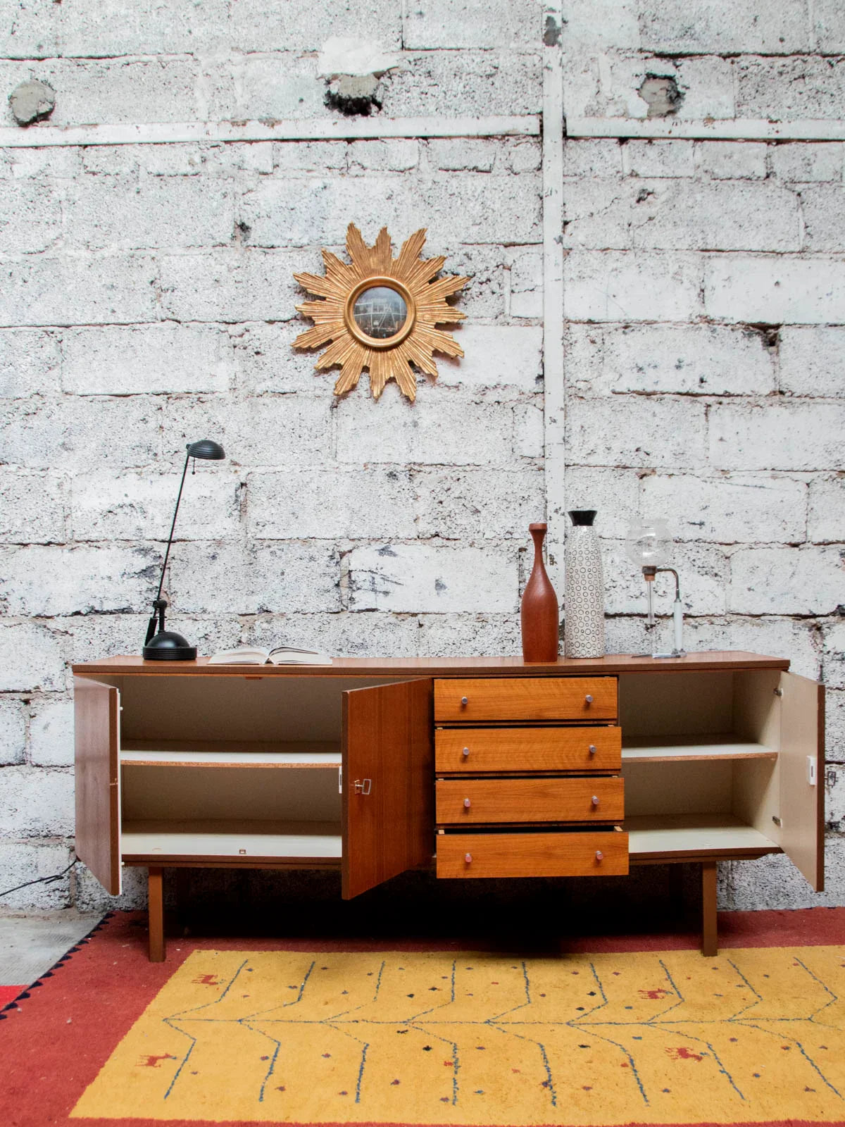 It was in the 1950s that the first Scandinavian sideboards appeared. The Scandinavian-style sideboard was part of the innovative post-war furniture. Its airy lines and rectilinear volumes adopted the sober style of modernist inspiration, with all the characteristics of Norwegian, Swedish, Finnish designers... The Scandinavian sideboard is made using traditional cabinetmaking, usually from teak wood. It is used as a replacement for the traditional dining room buffet and now serves as a console. For a stylish and pleasant living room, the sideboard is the perfect piece of furniture!