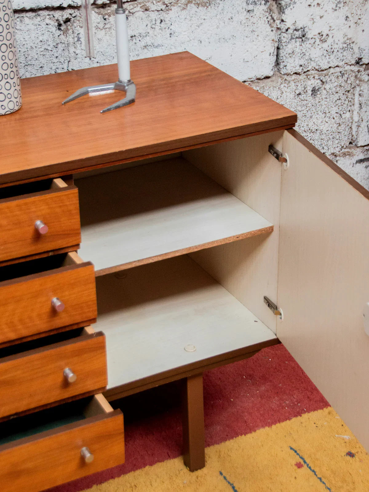 It was in the 1950s that the first Scandinavian sideboards appeared. The Scandinavian-style sideboard is part of the innovative furniture of the post-war era. Its airy lines and rectilinear volumes reflect the understated, modernist-inspired style, with all the hallmarks of Norwegian, Swedish, and Finnish designers. The Scandinavian sideboard is crafted using traditional cabinetmaking techniques, generally in teak. It is used as a replacement for the traditional dining room buffet and now also serves as a console table. For a stylish and inviting living room, the sideboard is the perfect piece of furniture!