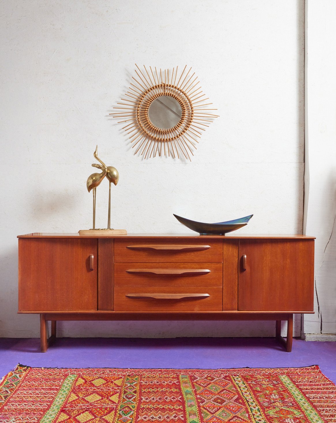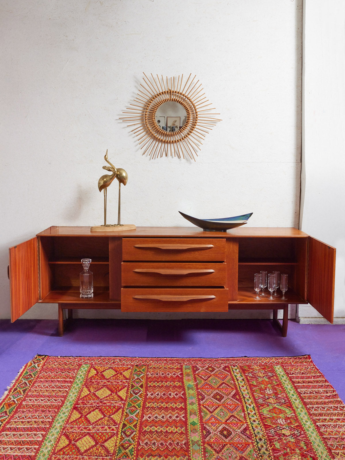 It was in the 1950s that the first Scandinavian sideboards appeared. The Scandinavian-style sideboard was part of the innovative post-war furniture. Its airy lines and rectilinear volumes adopted the sober style of modernist inspiration, with all the characteristics of Norwegian, Swedish, Finnish designers... The Scandinavian sideboard is made using traditional cabinetmaking, generally in teak wood. It is used as a replacement for the traditional dining room buffet and now serves as a console. For a stylish and pleasant living room, the sideboard is the perfect piece of furniture!