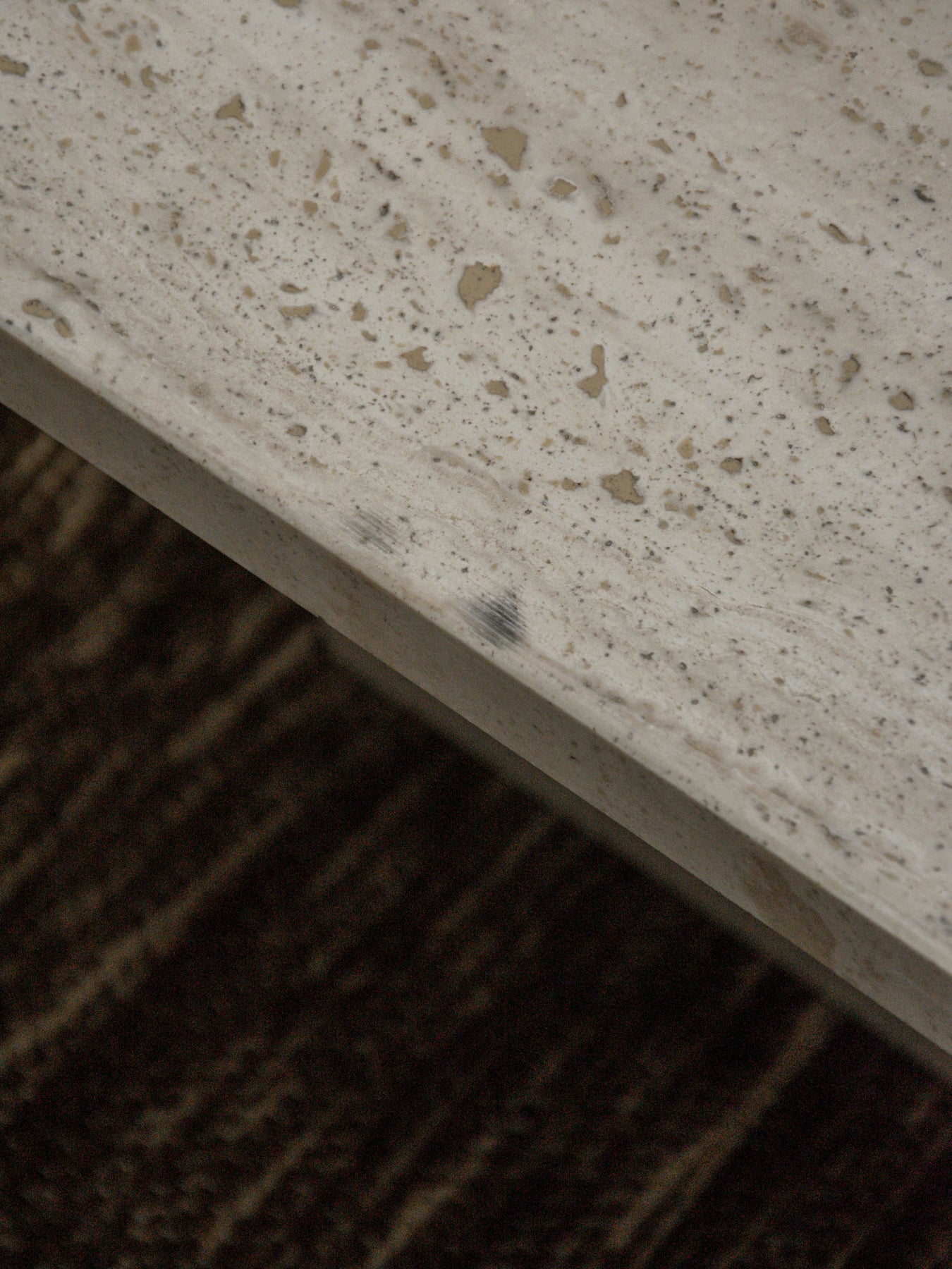 Discover the travertine table, a centerpiece that combines elegance and authenticity. Its natural surface and meticulously crafted finish bring a touch of sophistication to your interior. Ideal for family meals or evenings with friends, this robust and aesthetically pleasing table will blend seamlessly into any décor. Enjoy convivial moments around this piece of furniture with its timeless charm. Signs of age and imperfections may be present.
