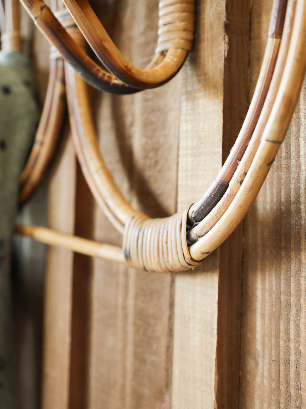 Choose this wall-mounted coat rack in rattan and light wood, with its simple, natural lines that bring a warm, bohemian touch to your entryway or bedroom. Its two thoughtfully spaced hooks allow you to hang coats, bags, and hats without them overlapping, while the lightweight structure remains sturdy enough for everyday use. Compact and elegant, it optimizes space while creating a calming and welcoming atmosphere.