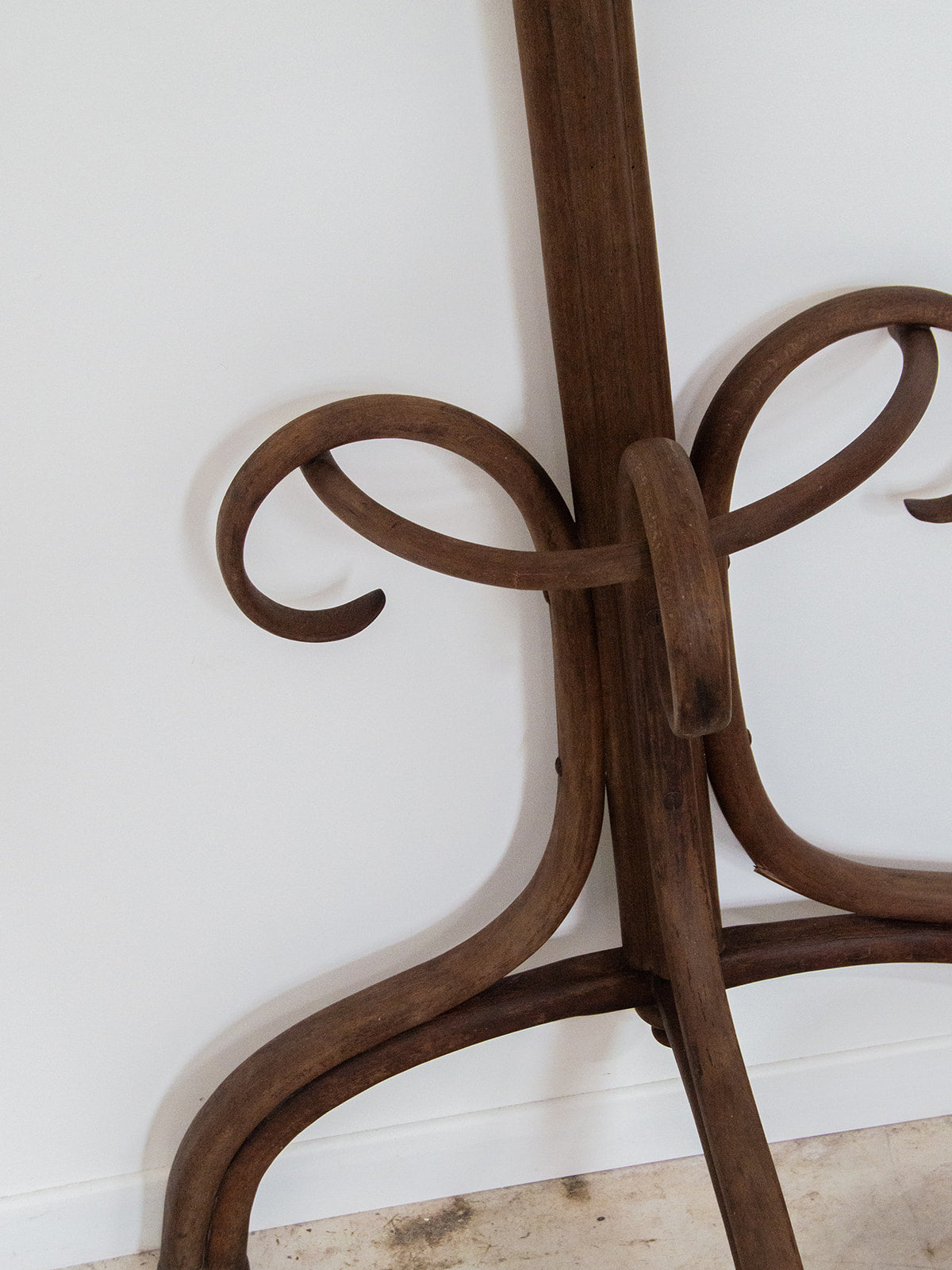 Discover this Thonet wooden coat rack, designed to be positioned directly against a wall. Combining functionality and aesthetics, this elegant accessory blends harmoniously into any interior, while providing practical storage space for your clothes. Its neat finish and clean lines make it a centerpiece that is both modern and timeless. Ideal for optimizing your entrance or office, this coat rack is also a real decorative asset.