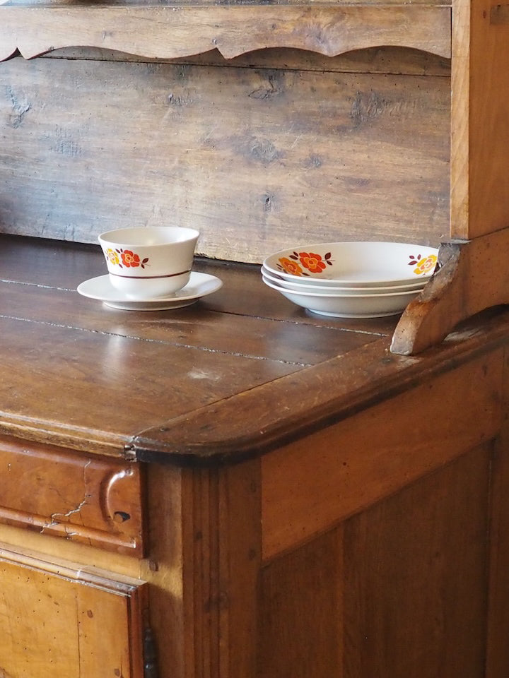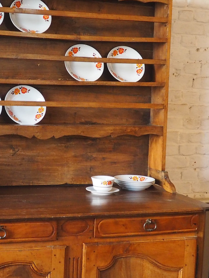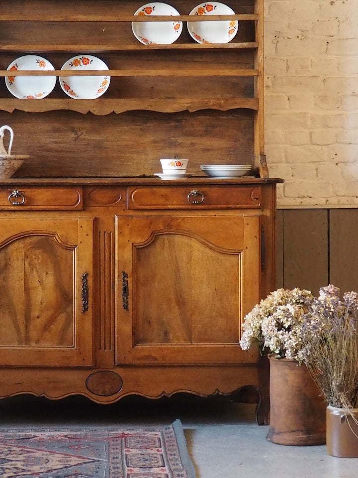 Sublimez votre intérieur avec ce vaisselier de style normand du XIXe siècle, réalisé en chêne et noyer, dont le plateau mêle élégance et robustesse. Sa partie haute non fixe propose une modularité pratique pour exposer vaisselle et objets décoratifs, tandis que le meuble bas offre des proportions généreuses de rangement pour le quotidien. Son bois chaleureux et sa patine maîtrisée instaurent une ambiance sobre et accueillante, idéale pour une cuisine ou une salle à manger au charme authentique.