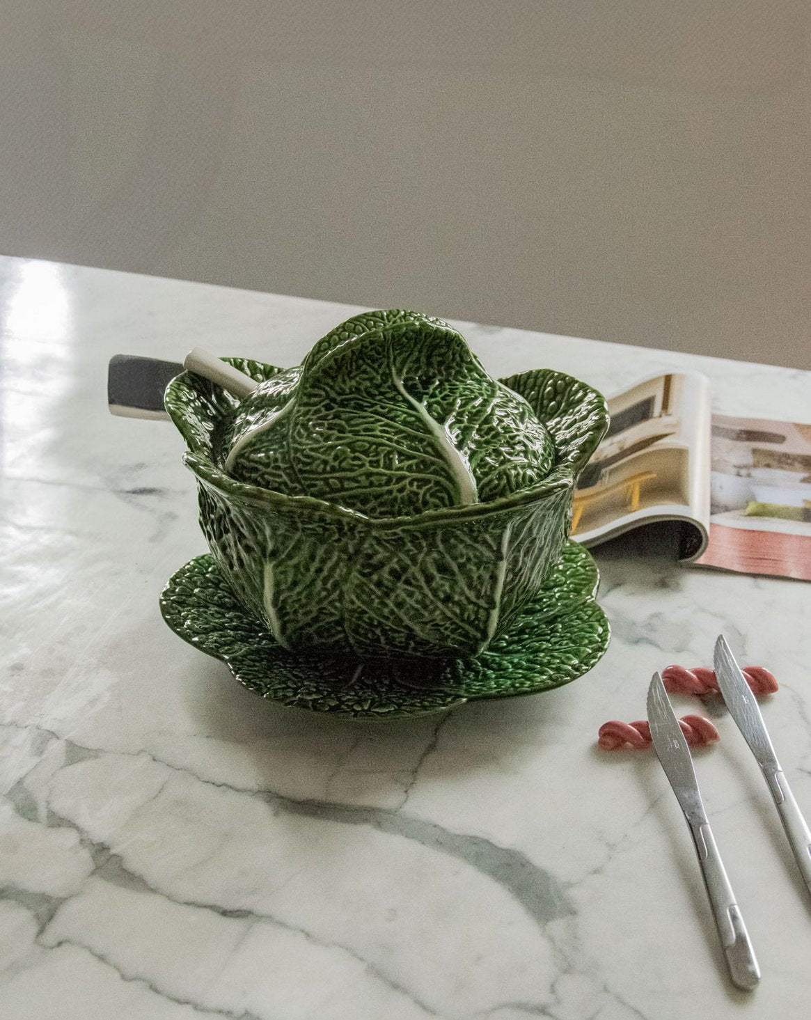 Apportez une touche rétro à vos tables avec cette soupière en barbotine des années 1970, accompagnée de sa soucoupe et d'une cuillère assortie. La barbotine et l'émail mettent en valeur un format généreux, idéal pour partager potages et bouillons lors de repas conviviaux. Son dessin évoque l'élégance discrète des services de table d'autrefois, parfait pour une présentation soignée et chaleureuse. Ensemble en excellent état, sans accroc.