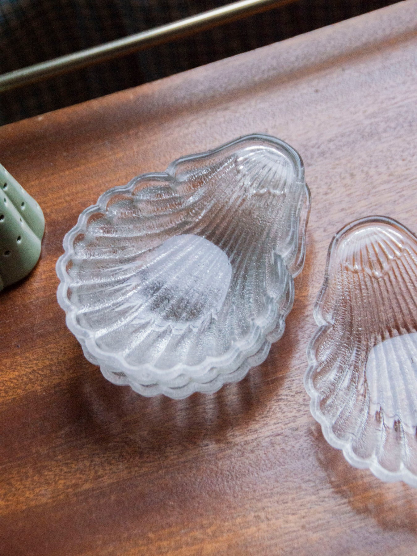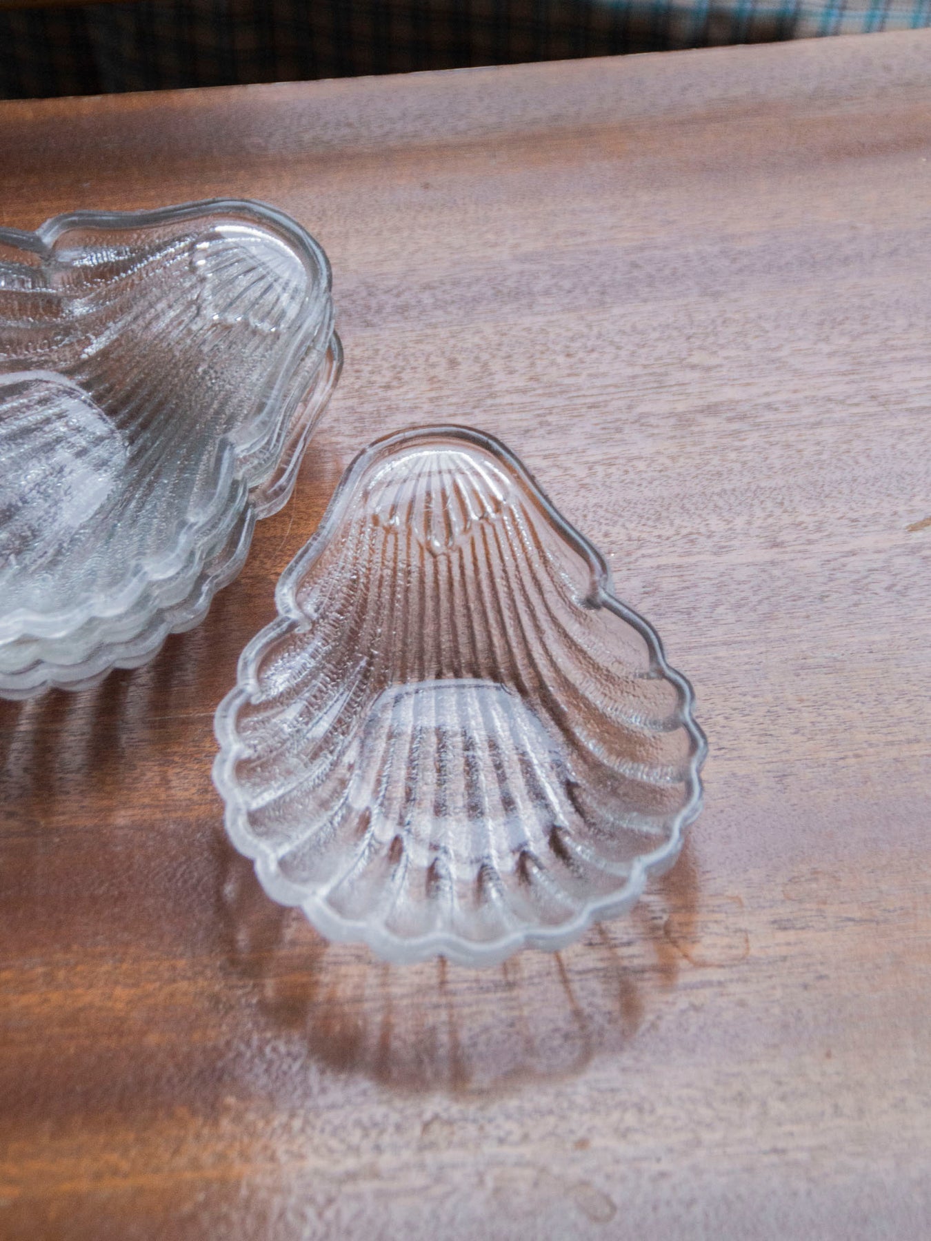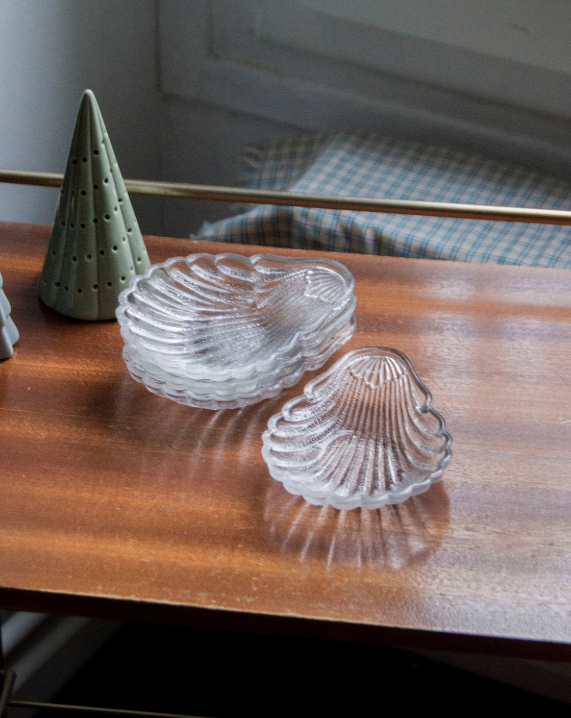 Add this set of four clear glass bowls with a seashell design, which brings a delicate, marine touch to your table settings. Their slender proportions are perfect for presenting condiments, appetizers, or small desserts, while catching the light for an elegant and airy table. Versatile, they also lend themselves to displaying decorative objects such as beads or tealight candles, for a soft and refined ambiance.