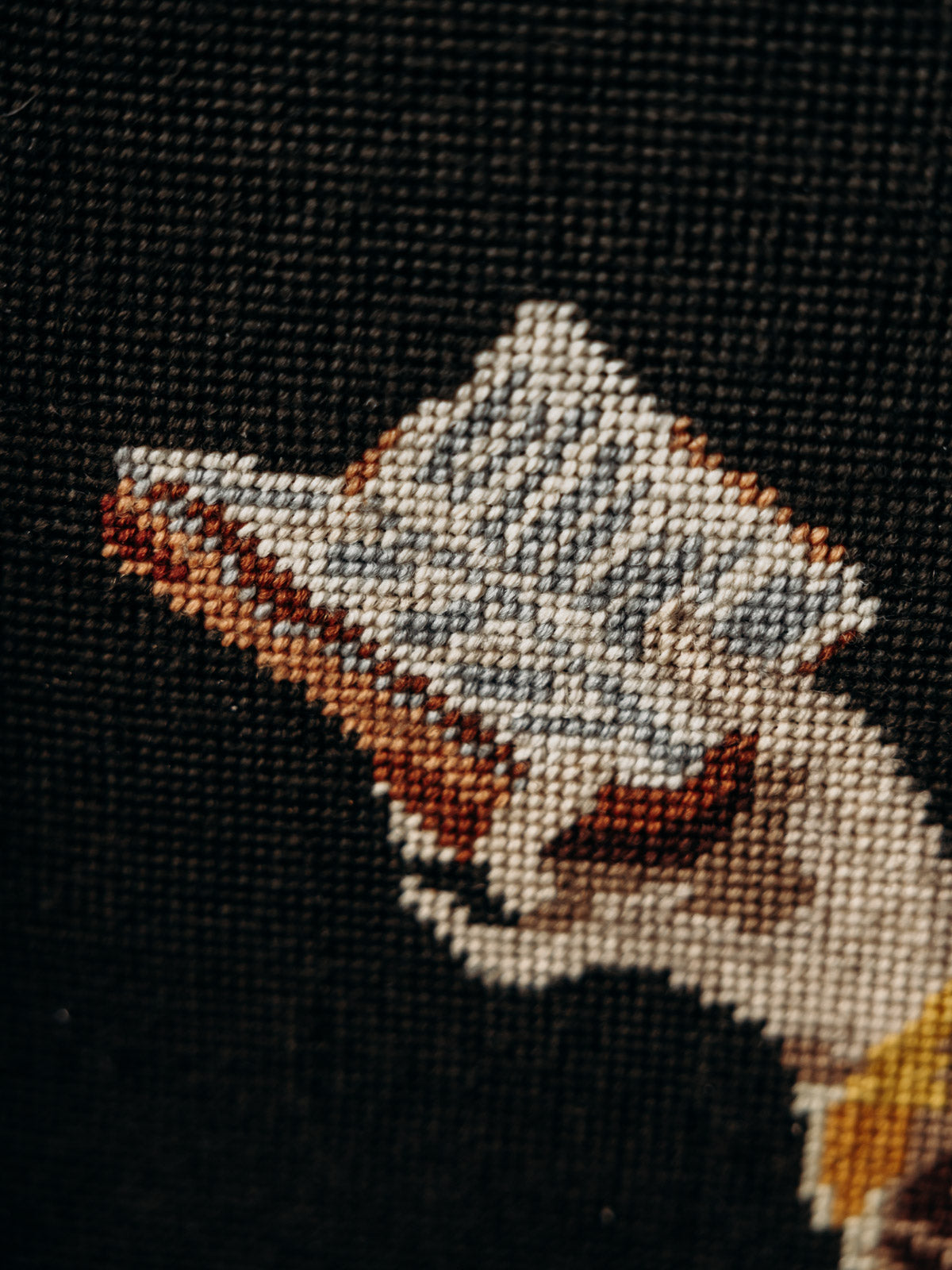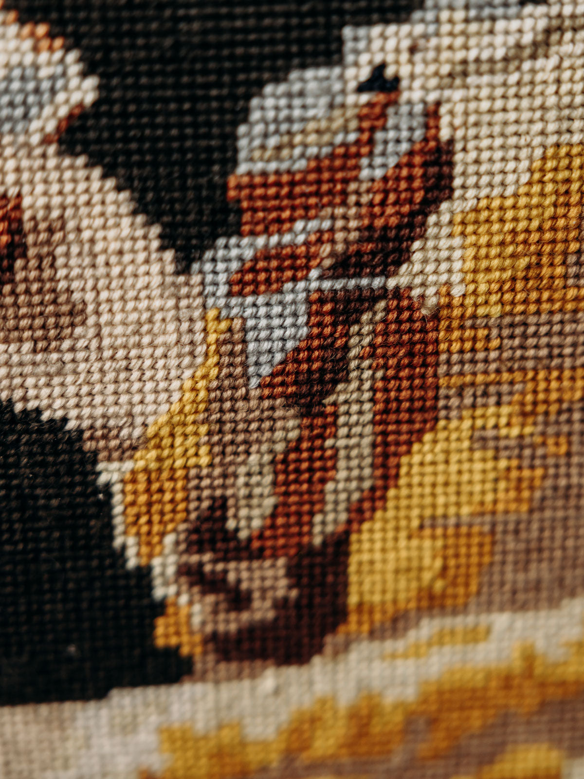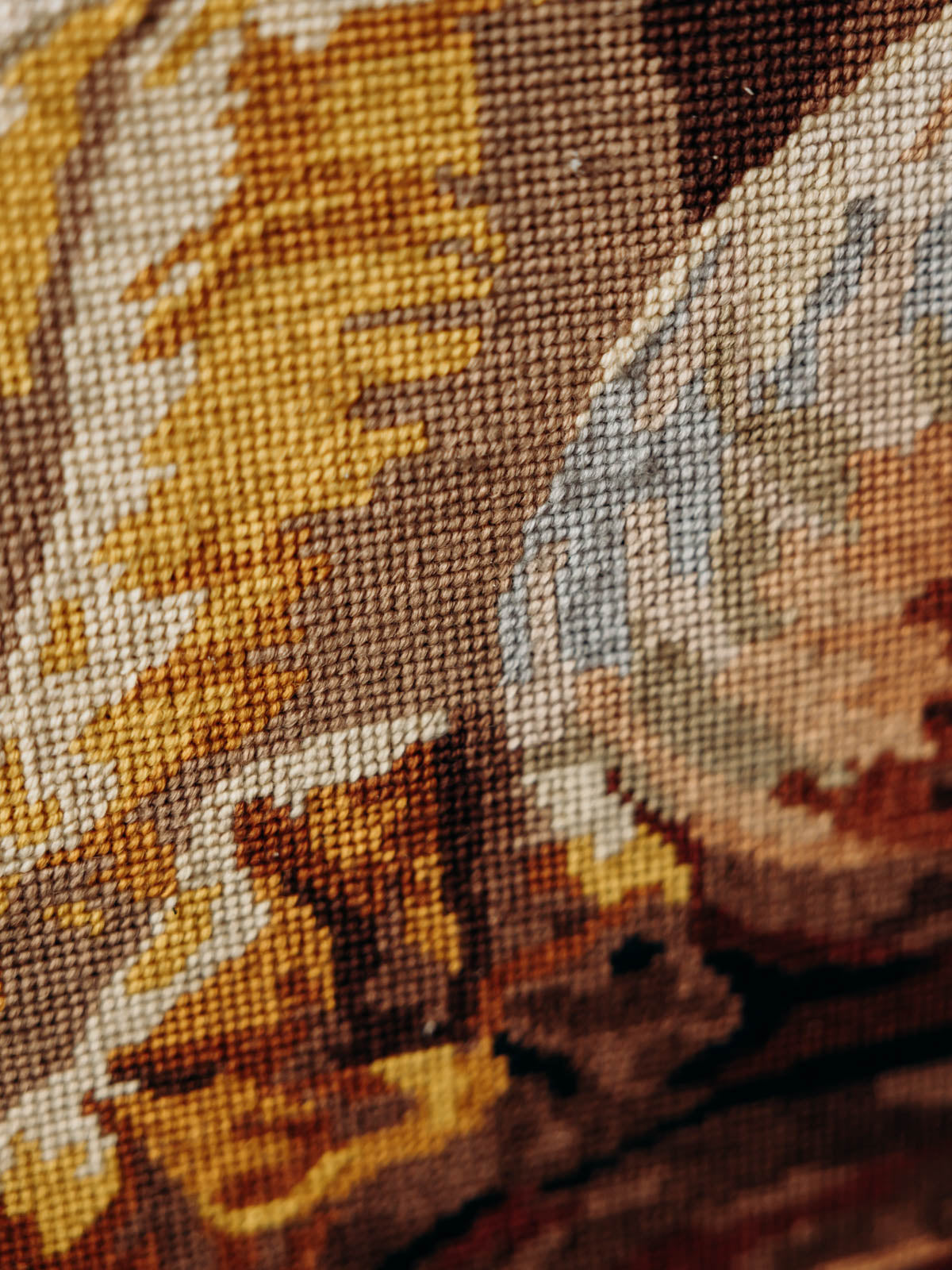 Invite this canvas depicting a woman, set in a gilded wooden frame with a red border, into your home to create an intimate and refined atmosphere. The needlework reveals a pictorial delicacy that captivates the eye, while the gilded frame adds a classic and warm touch. Its vertical and slender format makes it ideal above a sideboard, in an entryway, or along a hallway, complementing both contemporary and more traditional interiors.