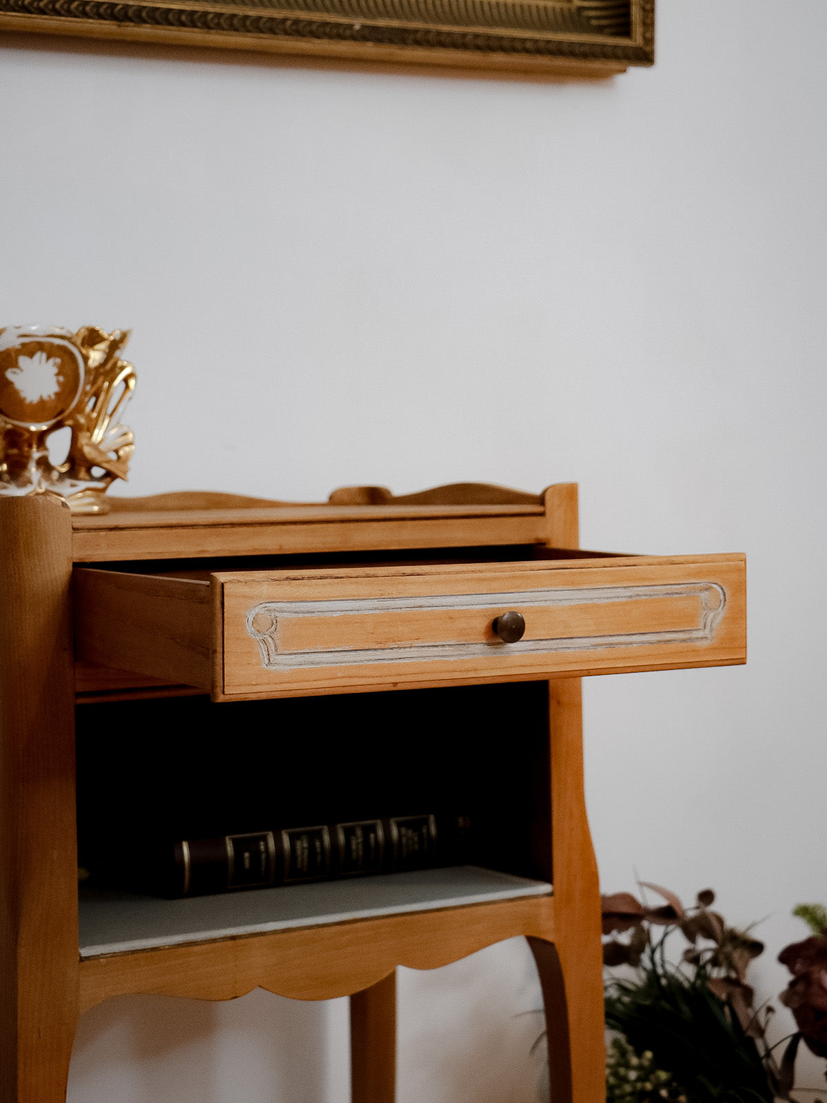 The term "bedside table" has referred since the Middle Ages to a small piece of furniture placed next to the bed. Initially designed as a stand for a lamp or personal items, the bedside table has evolved over time to include drawers and shelves. Essential in the bedroom, it now combines functionality and design, adapting to all interior styles.