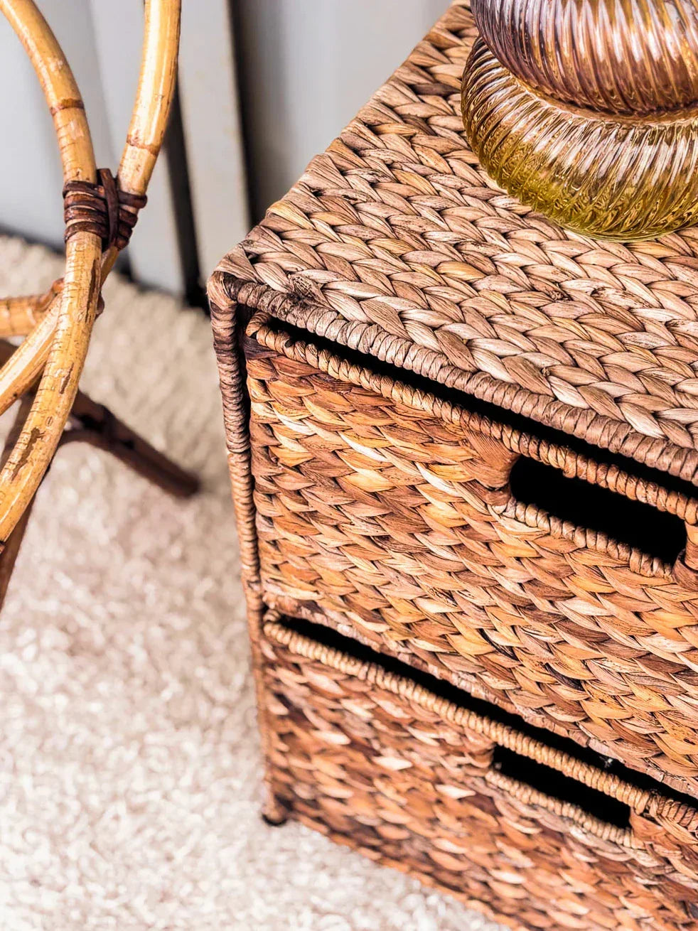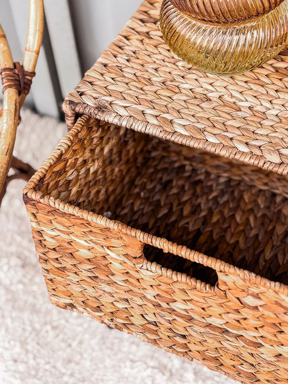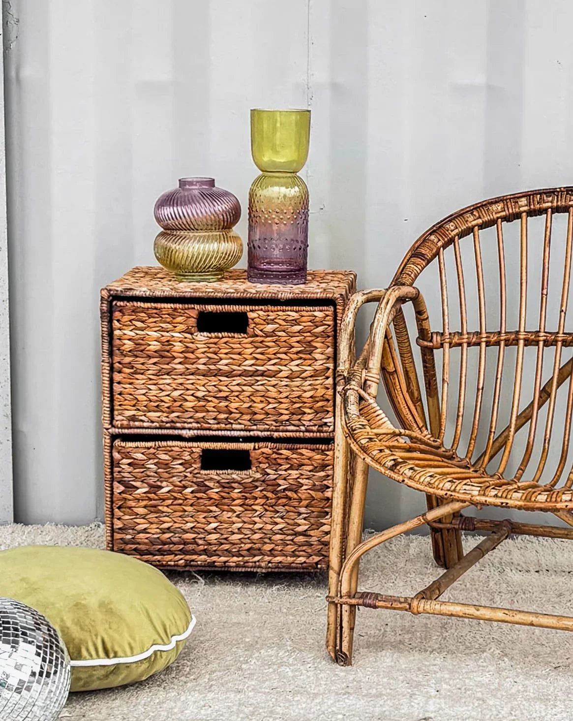 Discover our vintage rattan bedside table, a perfect blend of elegance and functionality. Featuring two practical drawers, it offers ideal storage space for your small everyday items. Its timeless design and rattan finish add a warm touch to your decor, while blending harmoniously into a variety of interiors. Treat yourself to a retro style while adding a touch of charm to your bedroom.