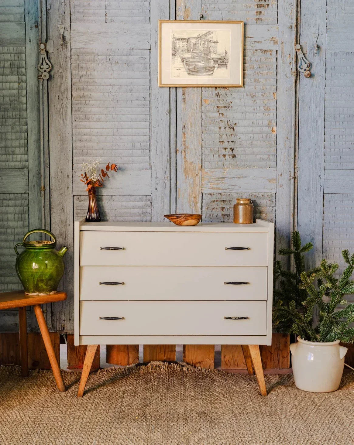 Add a touch of softness with this beige-painted wooden chest of drawers, resting on legs that soften its lines. Its silhouette and proportions, designed for small spaces, offer discreet storage for linens, dishes, or accessories, while the matte finish highlights the natural warmth of the wood. Ideal for a bedroom or entryway, it creates a calm and uncluttered atmosphere, easily integrated into a contemporary decor.