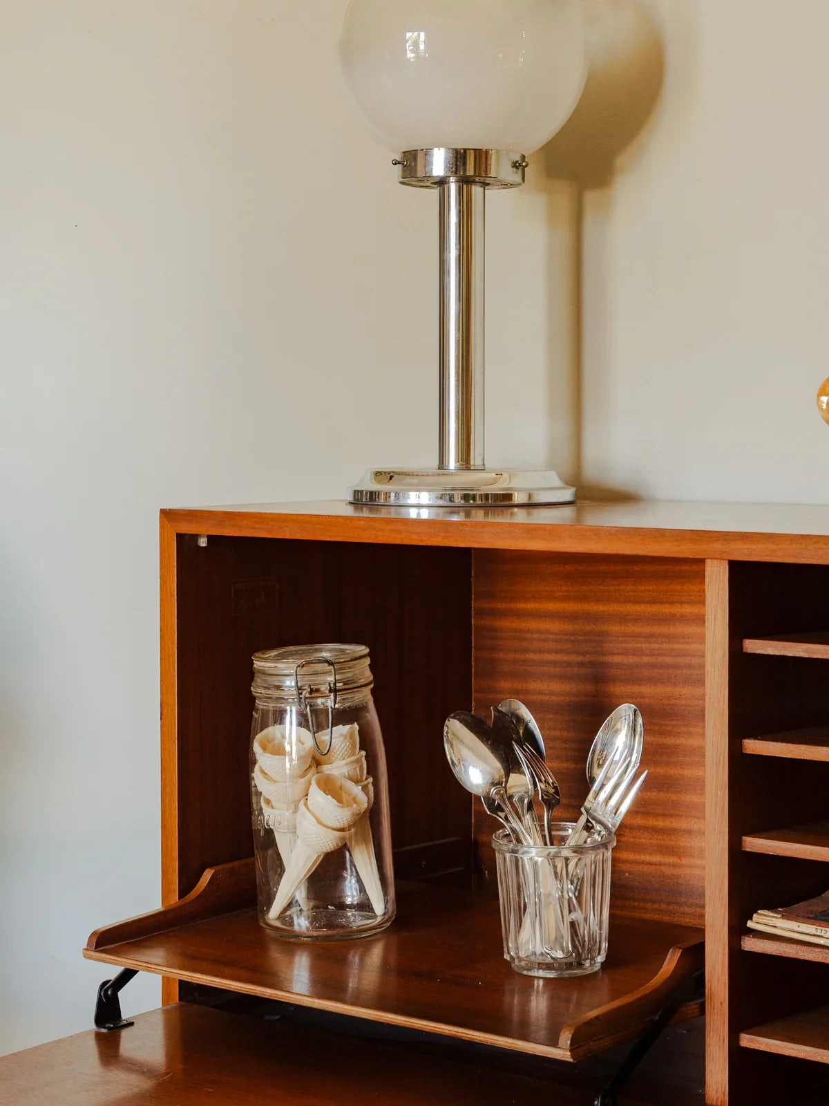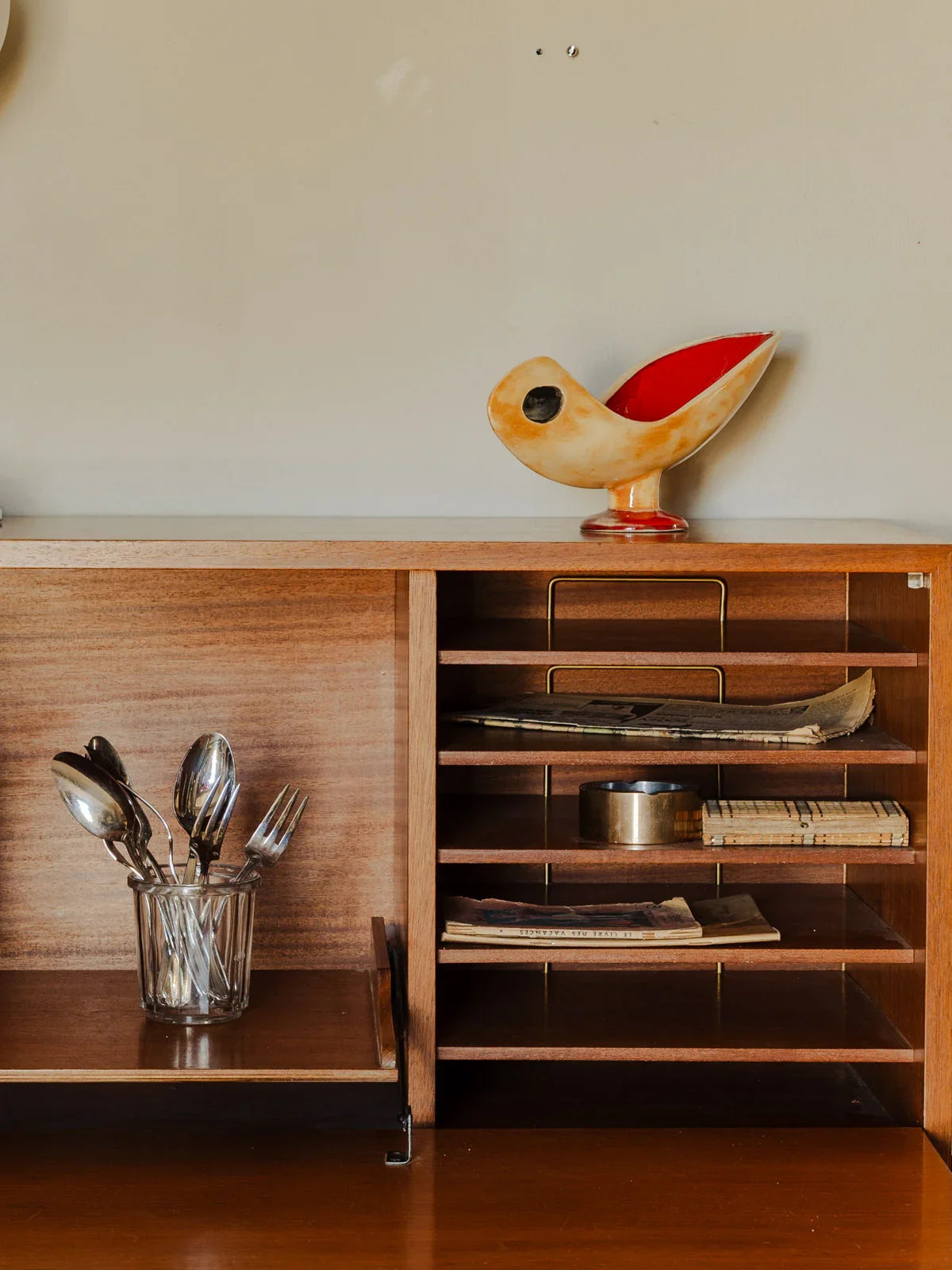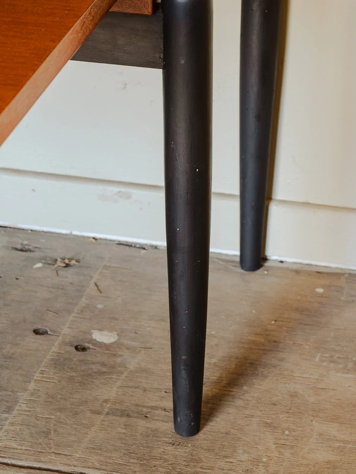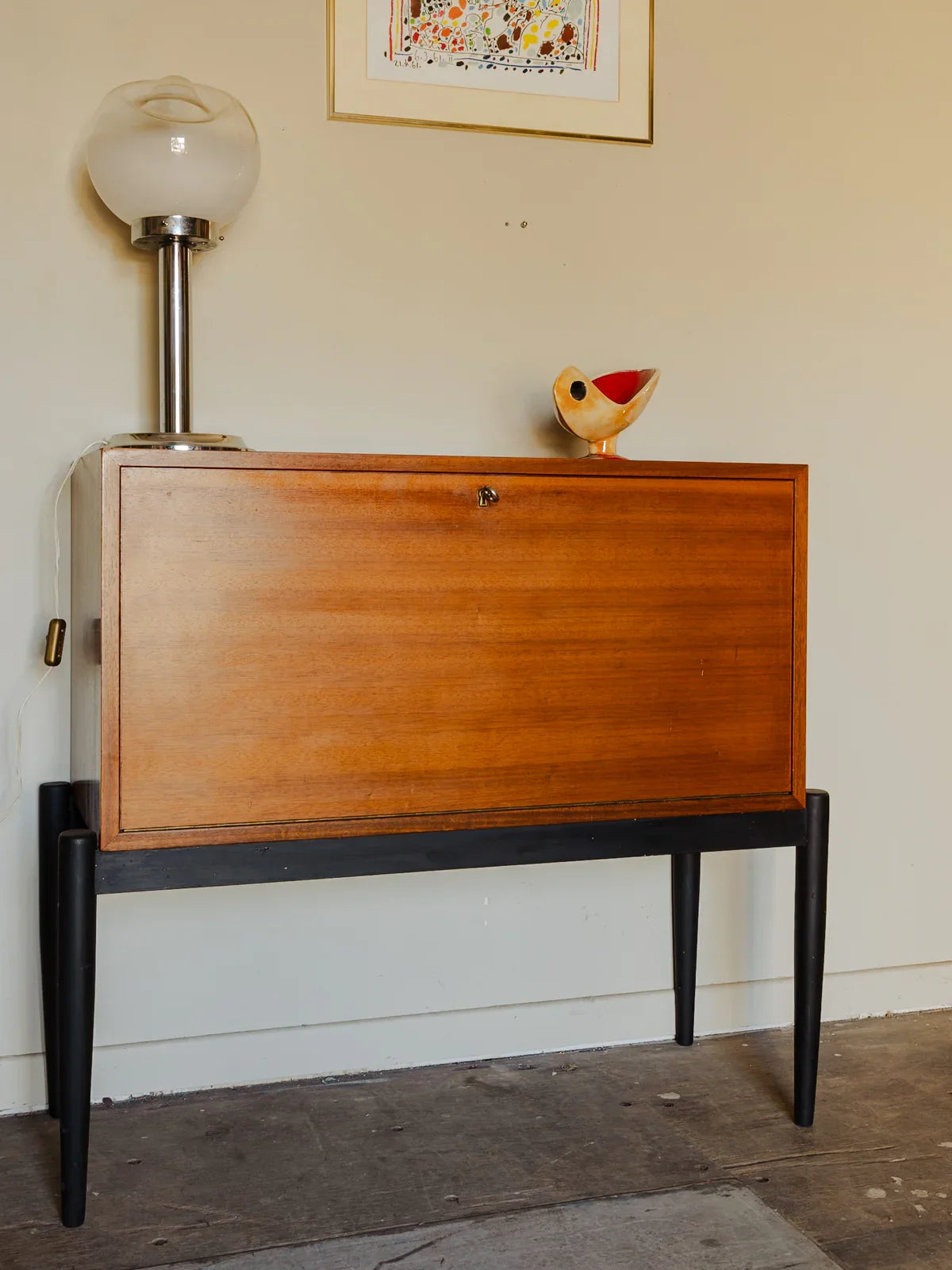Discover this elegant 1970s chest of drawers, made of teak, which will add a vintage touch to your home. It features a practical compartment with a sliding tray, ideal for easy access to your essentials. Additionally, its other compartment has five compartments, perfect for organizing your small items in style. With its wooden base, this chest of drawers combines functionality and aesthetics, blending harmoniously into any space.