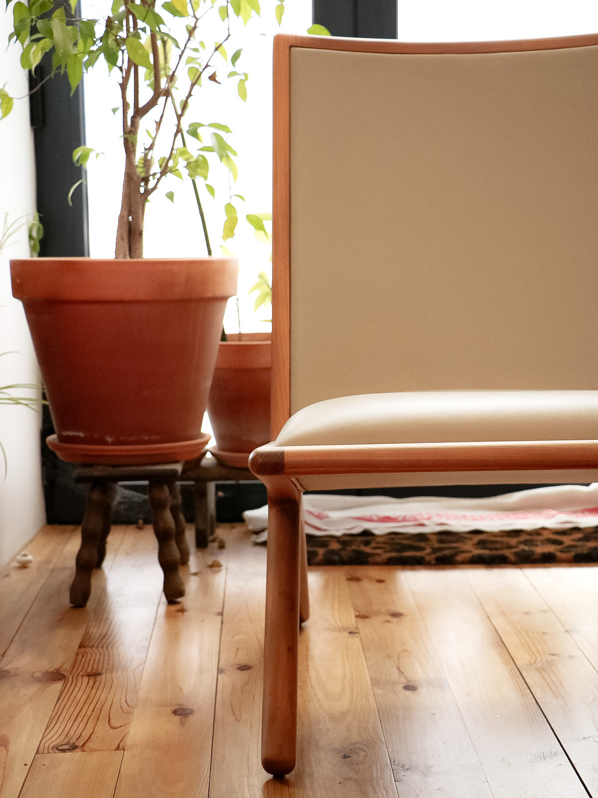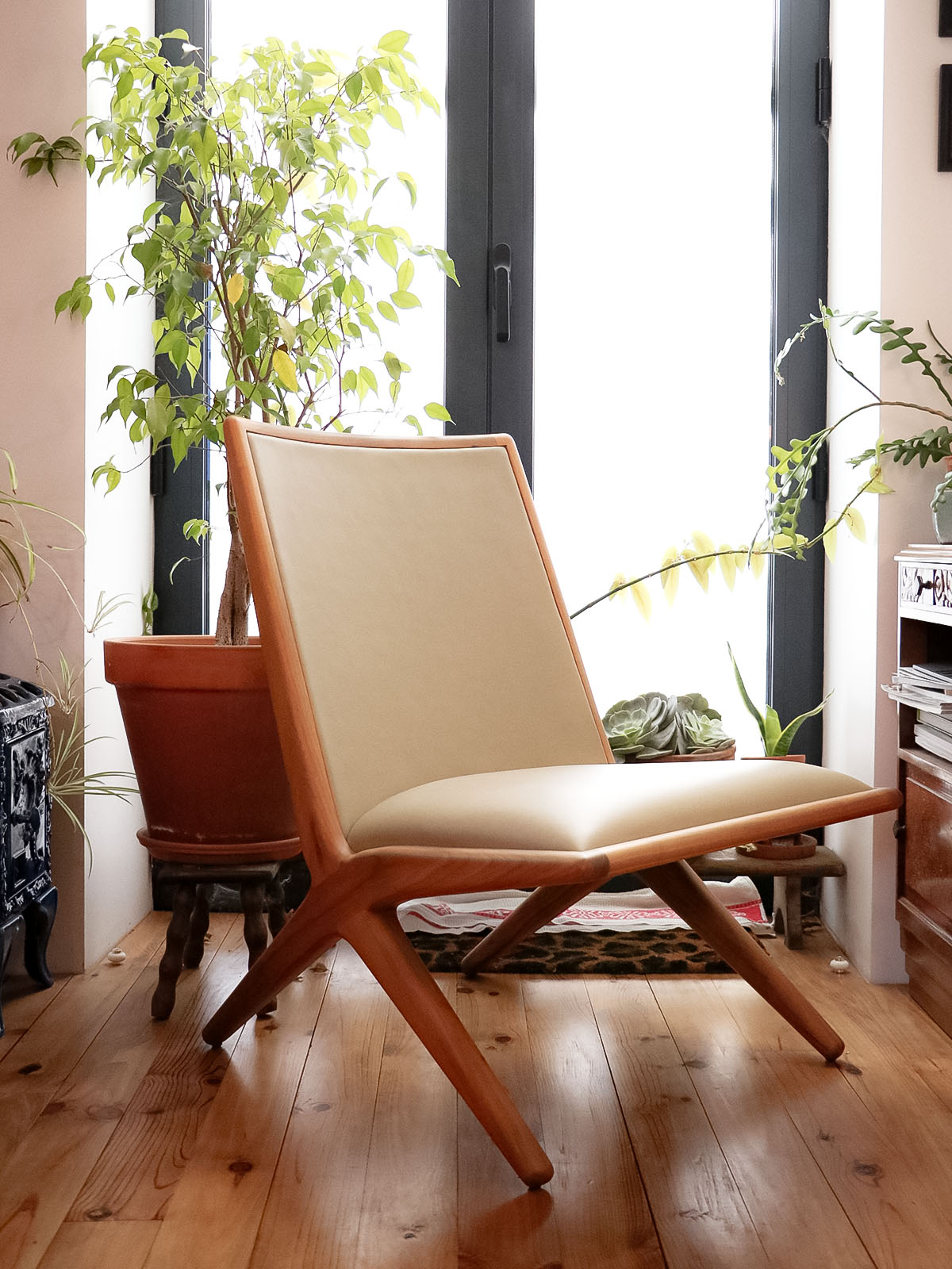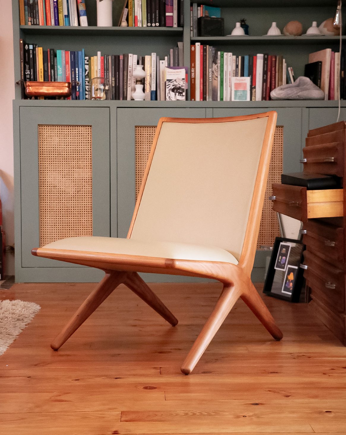 Introducing the Kaya armchair, designed by Katia Le Vaillant for LK Éditions, a creation in walnut and beige leather that blends the warmth of light honey wood with the softness of leather. Its generous seat and carefully considered depth offer enveloping comfort, perfect for a living room, bedroom, or reading nook. The contemporary lines and balanced proportions create a serene and elegant atmosphere, showcasing meticulous craftsmanship.