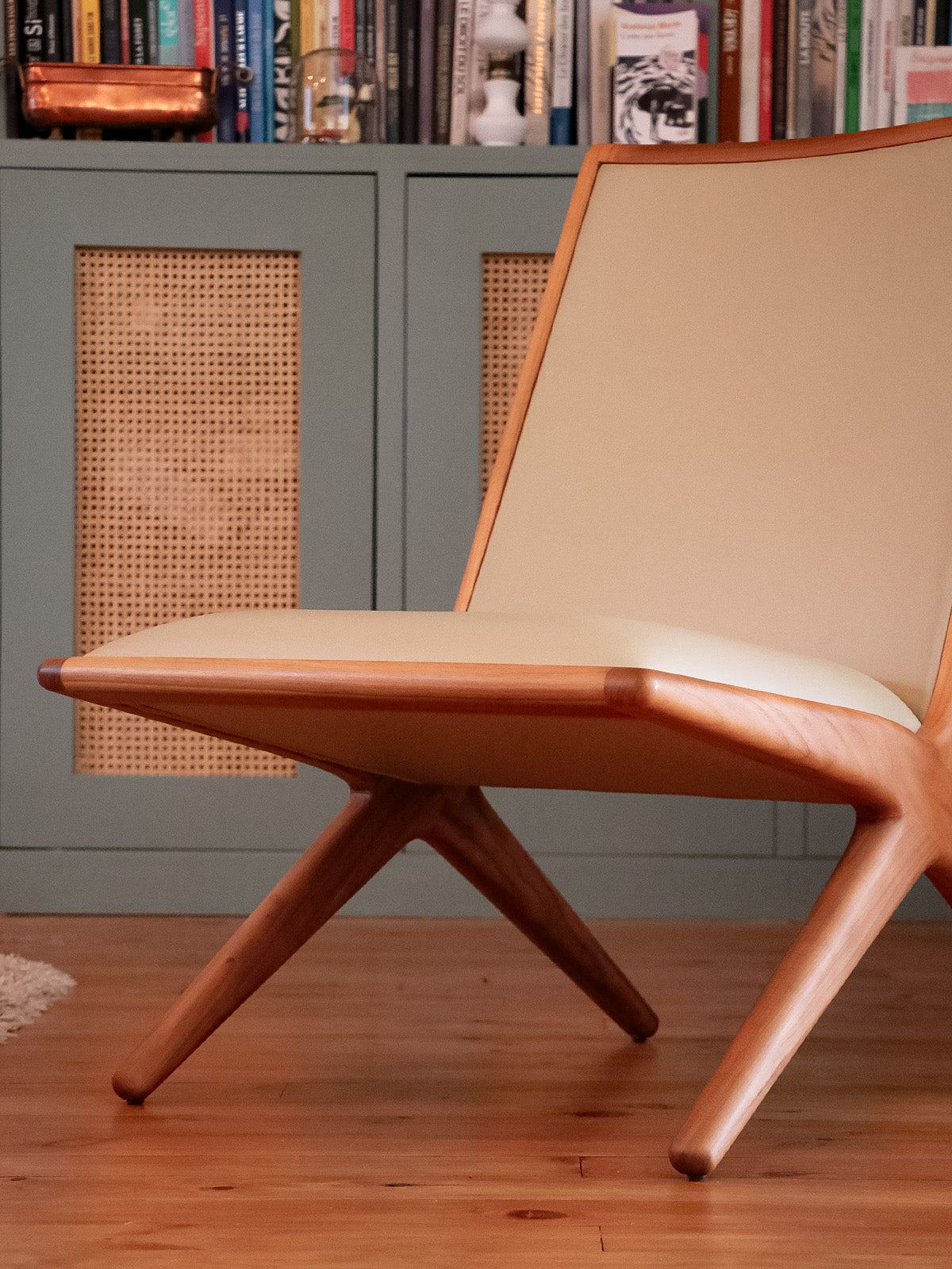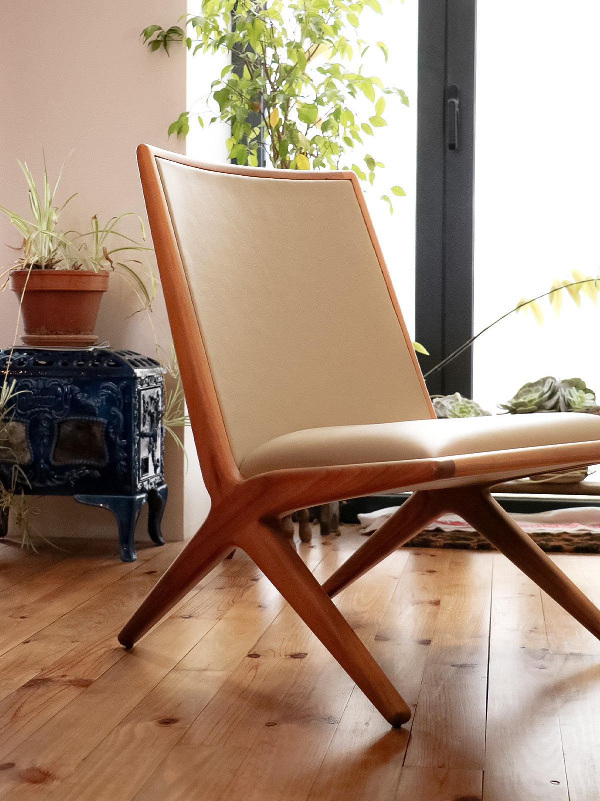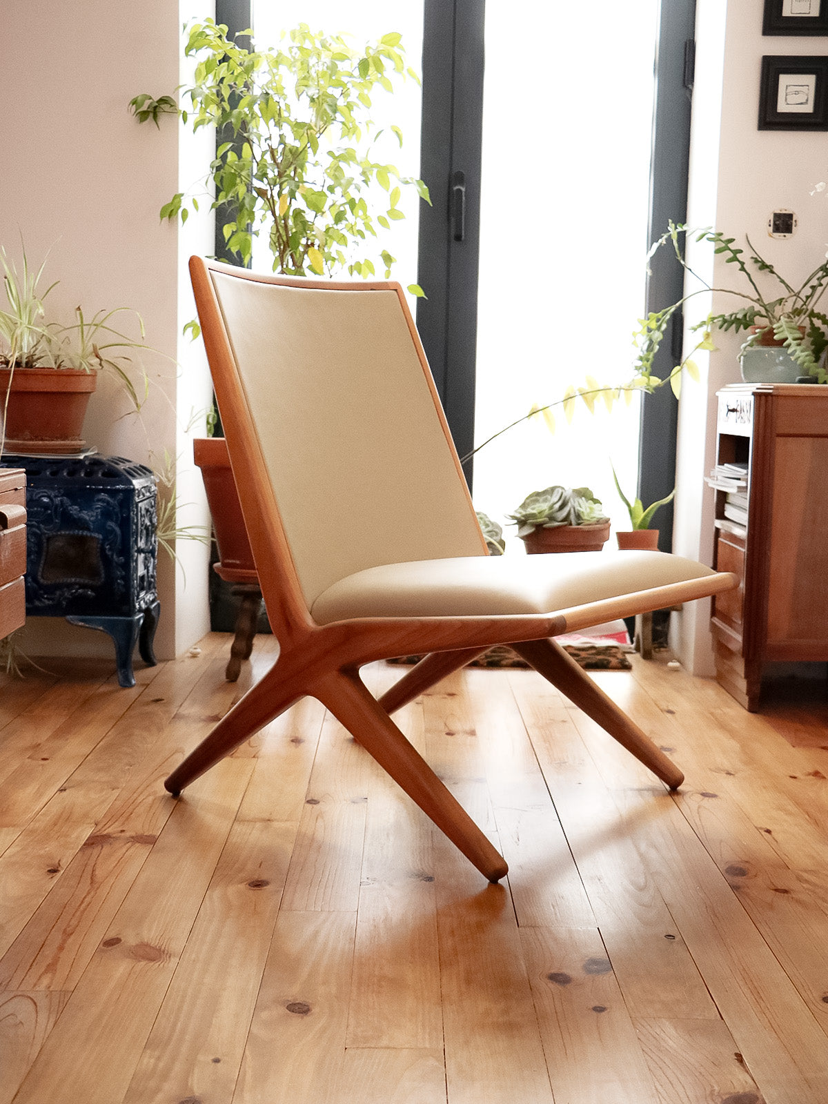 Introducing the Kaya armchair, designed by Katia Le Vaillant for LK Éditions, a creation in walnut and beige leather that blends the warmth of light honey wood with the softness of leather. Its generous seat and carefully considered depth offer enveloping comfort, perfect for a living room, bedroom, or reading nook. The contemporary lines and balanced proportions create a serene and elegant atmosphere, showcasing meticulous craftsmanship.