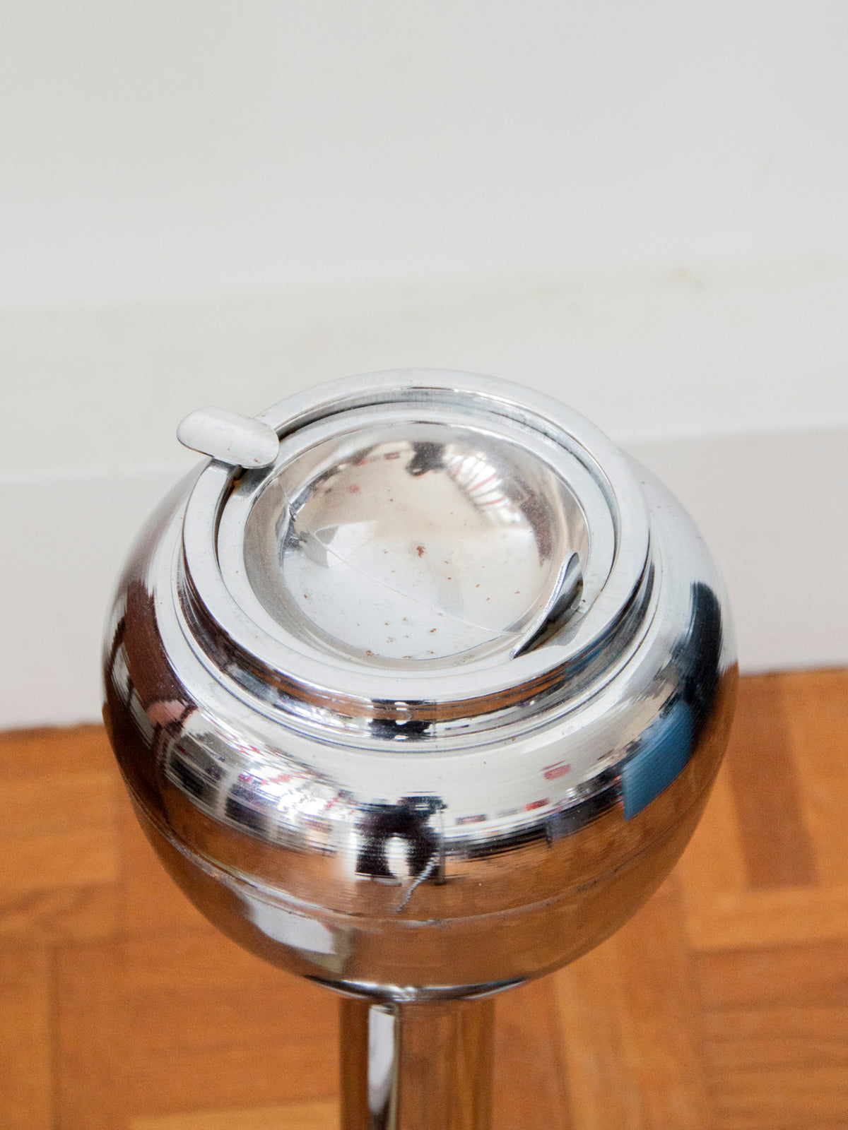 Discover this rare, fully chromed Italian 1970s tumbling ashtray on a stand, a beautiful reimagining of a classic design. Its elegant structure and stable base create a compact and slender form, ideal next to an armchair or in a living room, while the tumbling bowl provides both practicality and a touch of refinement. The chrome finish adds a subtle yet luminous elegance, lending a distinctly contemporary vintage touch to your interior. In perfect condition.