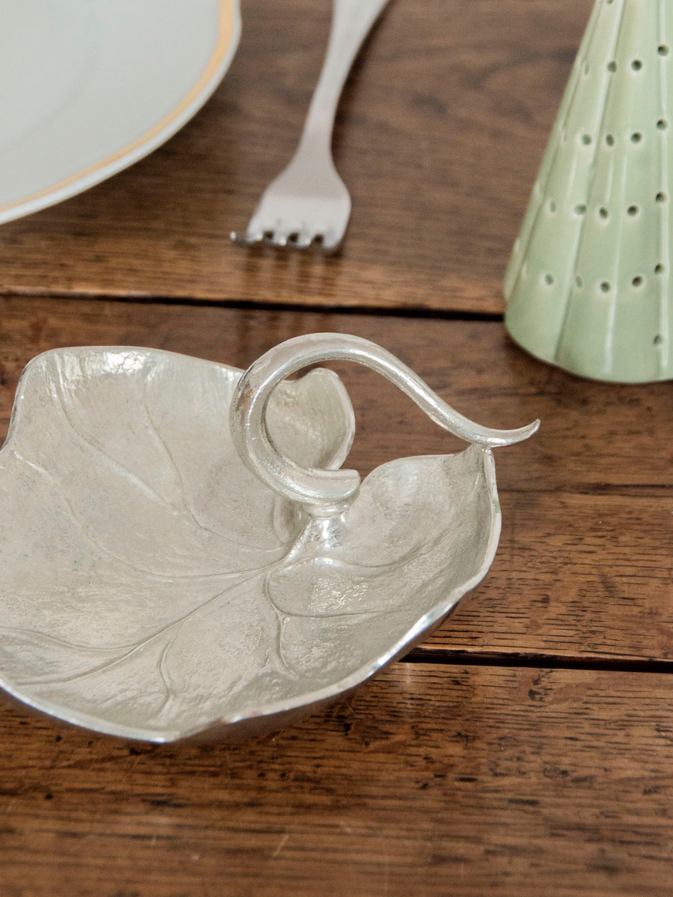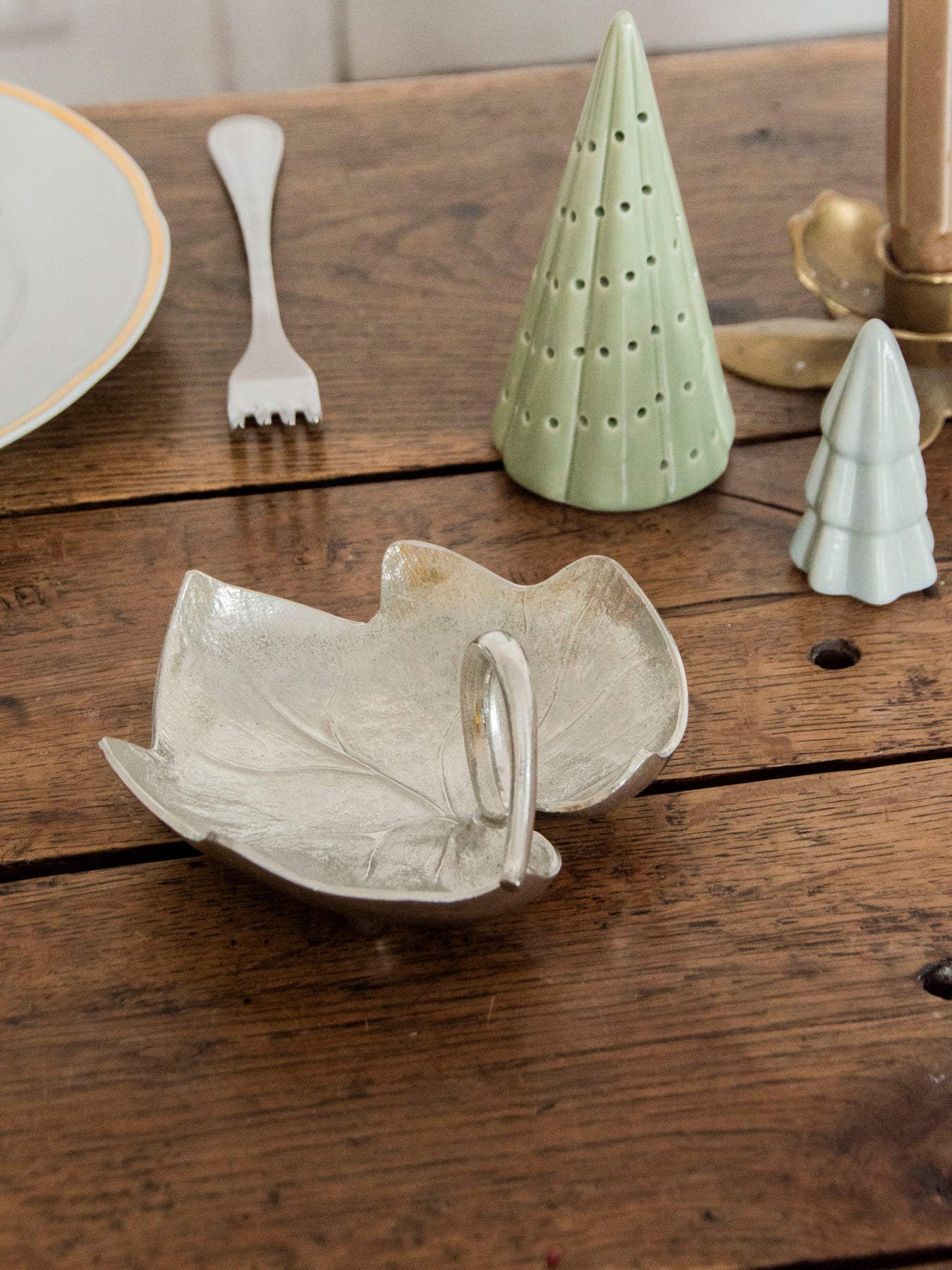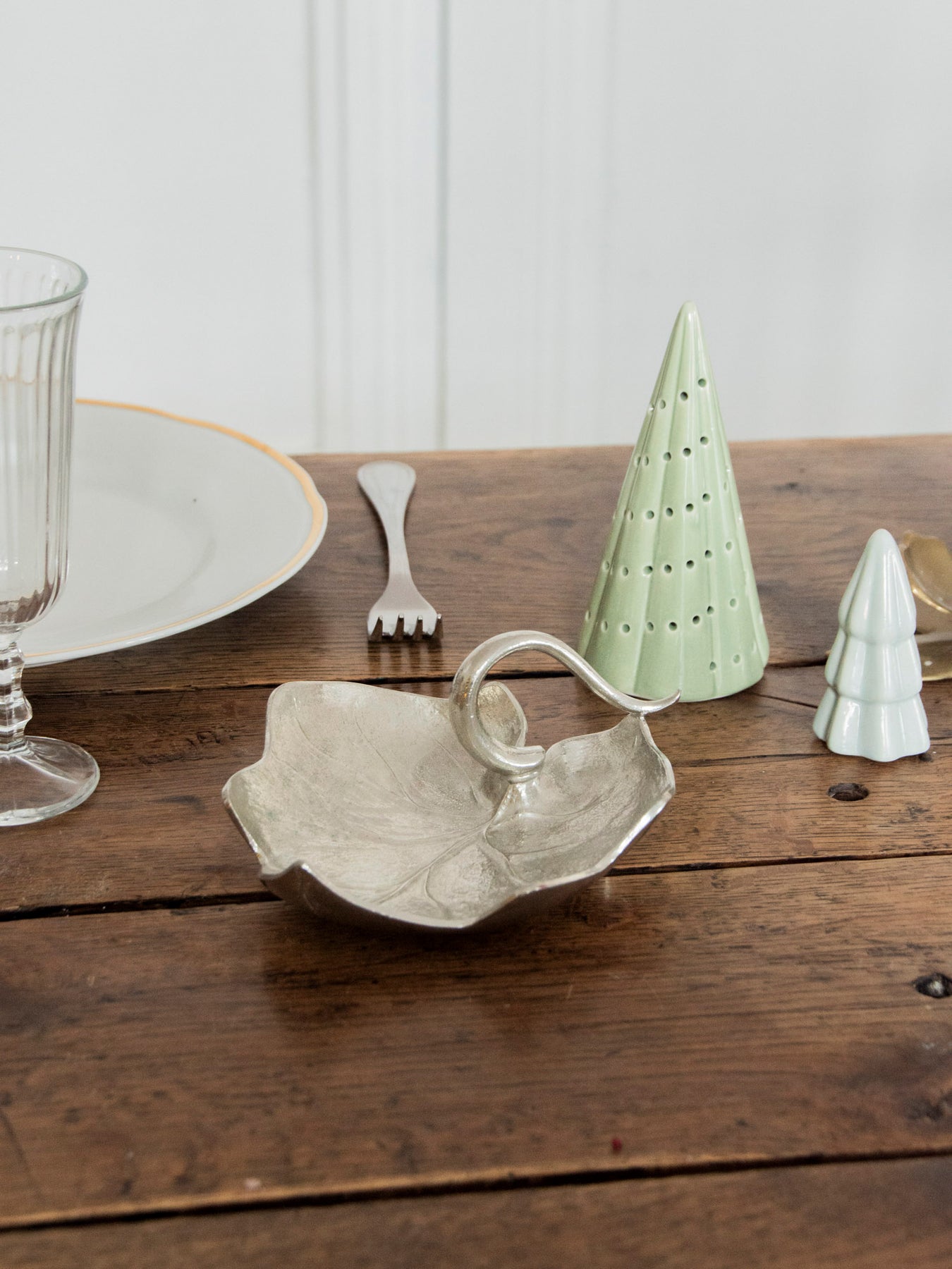 Add this leaf-shaped metal valet tray to your entryway or living room: it gently and stylishly holds keys, coins, and small jewelry. Its metal, crafted in delicate curves, evokes a light presence that integrates easily on a console table, shelf, or coffee table. Designed to organize everyday essentials without cluttering the space, it offers a discreet and decorative storage solution. A useful object that brings a touch of nature and graphic design to your interior.