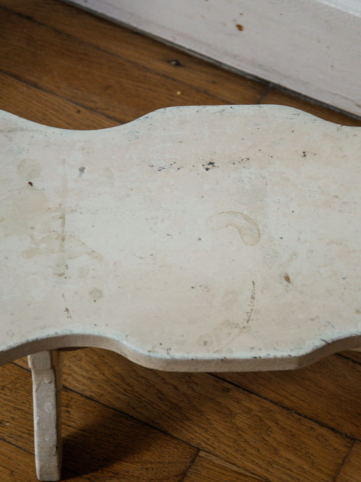 Discover this white-painted wooden footstool, ideal for combining comfort and style in your space. Its attractive base adds a touch of understated elegance. Despite some signs of wear, it remains sturdy and charming. Perfect for complementing an armchair or sofa while providing a moment of relaxation. A practical and aesthetic accessory for your home.