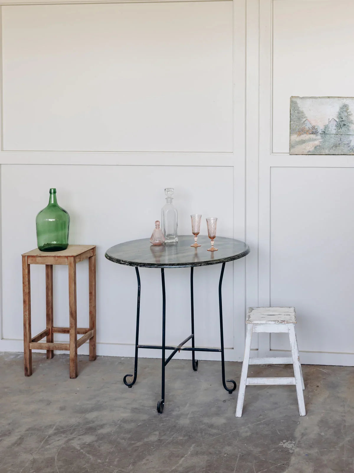 Discover this charming little white stool with its delicate patina. Its seat features a central hole, typical of vintage and practical models. The spread legs ensure good stability and a unique look. Ideal as an end table, plant stand, or for a child's bedroom. A small, practical and decorative piece of furniture with a vintage style.