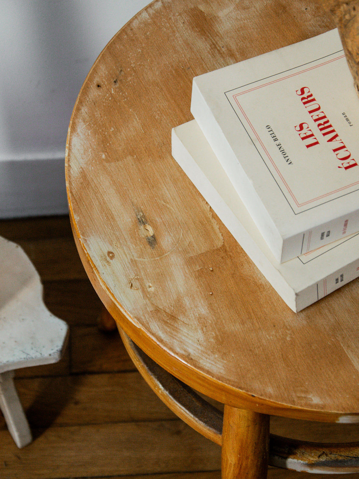 Discover this light wood stool inspired by the Baumann style, combining simplicity and elegance. Its two curved legs give it a unique and lightweight silhouette. Despite some signs of wear, it remains sturdy and functional. Perfect for adding a vintage touch to your home or complementing a dining area. A practical piece of furniture with authentic charm.