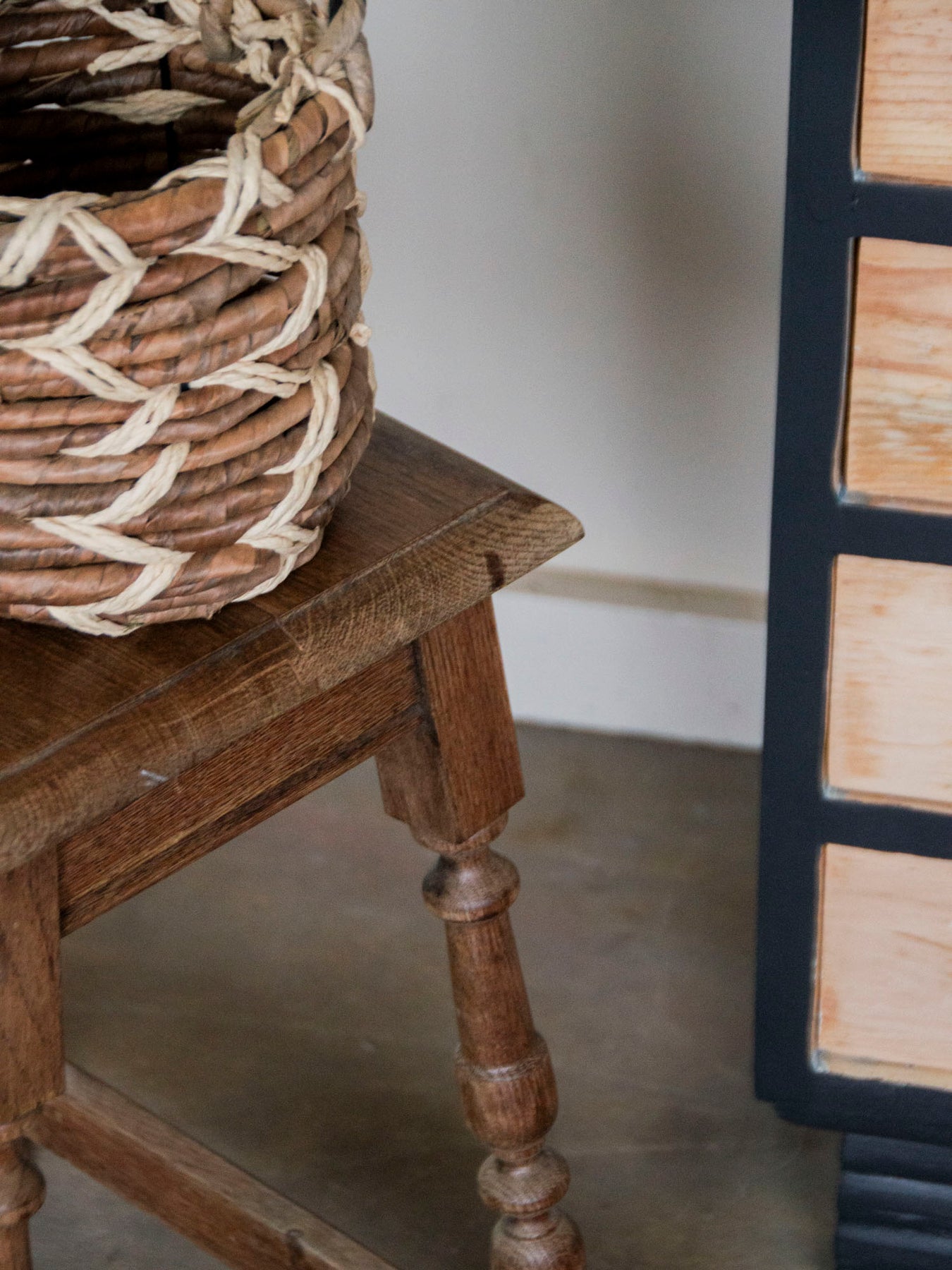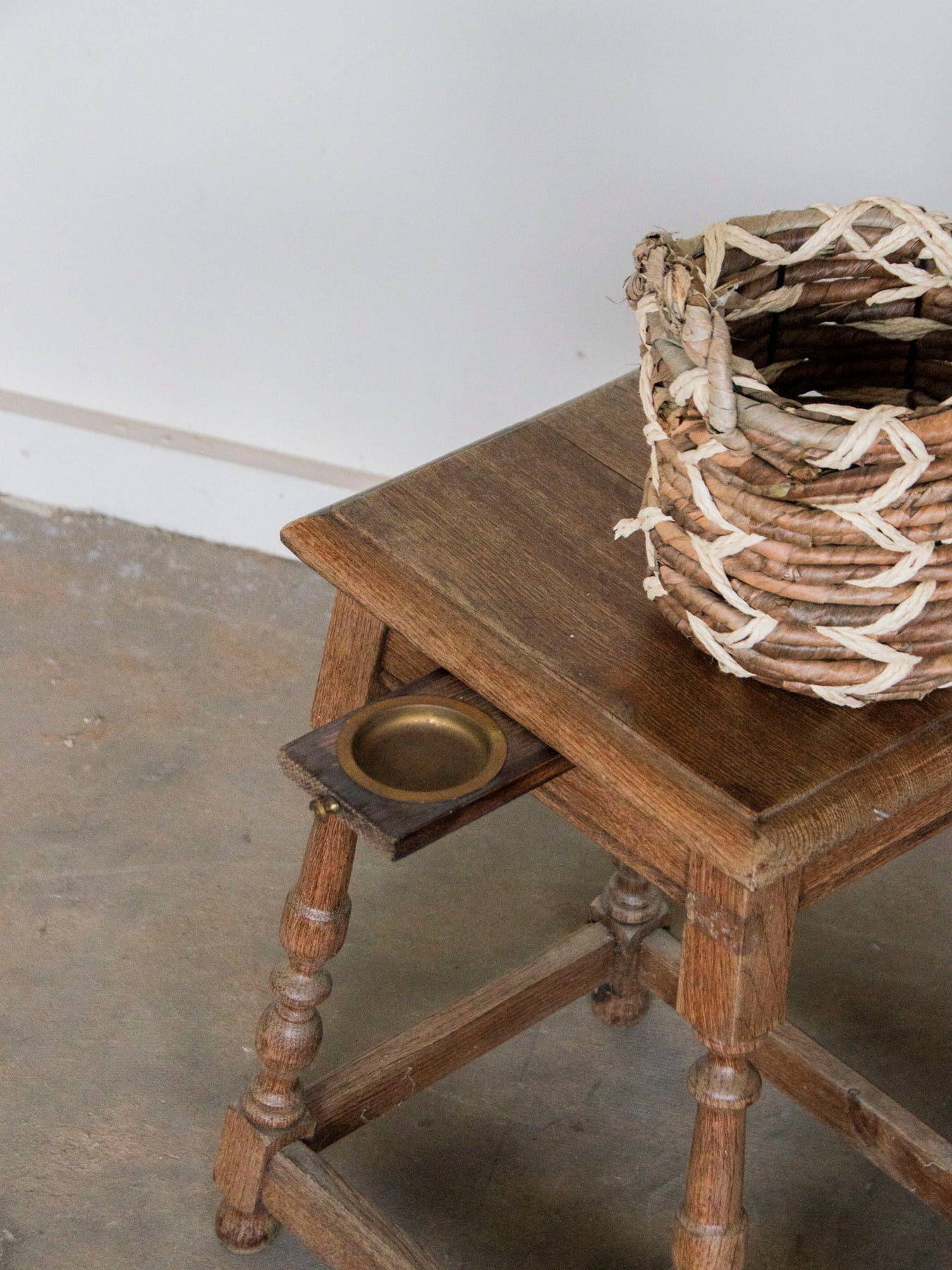 Choose this dark wood tailor's stool, with its compact size and understated style. Its small pin compartment provides safe and convenient storage for accessories while you work, while the well-proportioned seat invites you to enjoy long, comfortable sewing sessions. The small, round legs accentuate its delicate silhouette and offer reassuring stability, perfect for a workshop or a home with retro charm. Elegant and functional, it creates a warm and studious atmosphere.