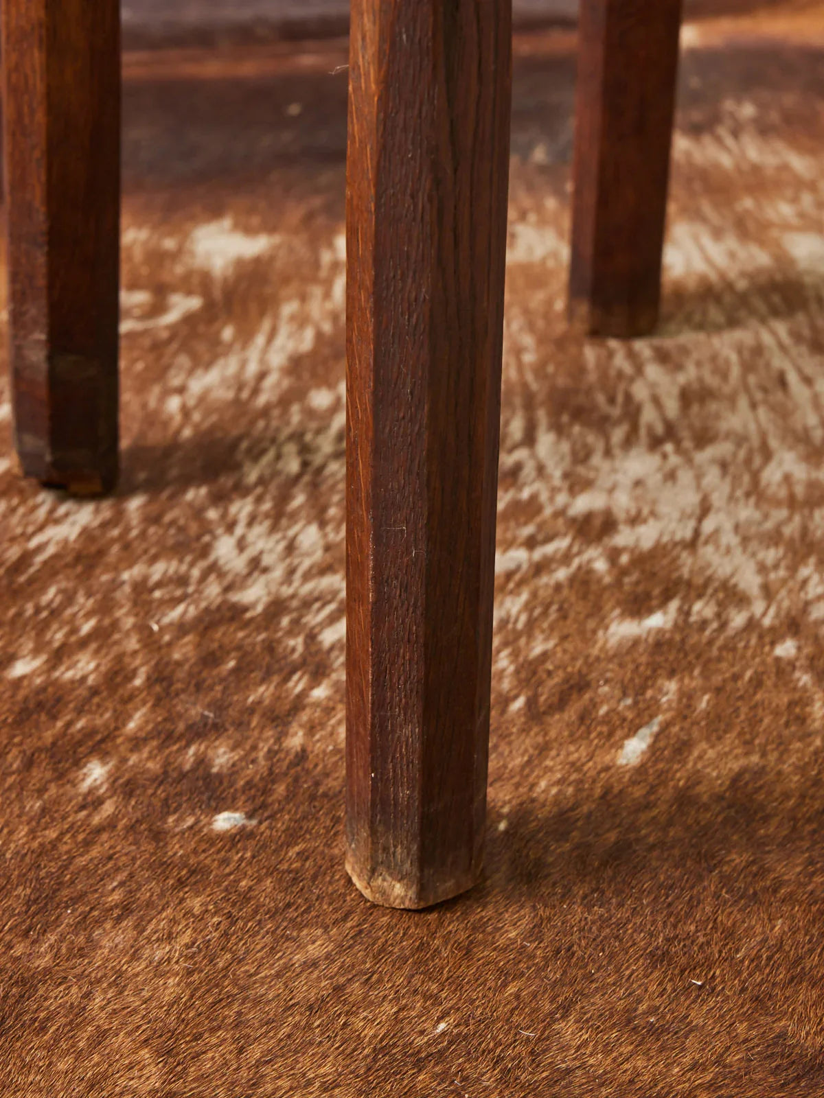 Embrace this rustic stool with its brutalist style, square silhouette, and sculptural character. Crafted from raw wood with a pronounced grain, it offers a generous and sturdy seat, ideal as an extra seat, footrest, or small accent piece with compact proportions. Its natural patina and simple lines create a warm and contemporary atmosphere, perfect for a chic country interior or an urban apartment seeking authenticity. Signs of age are present.