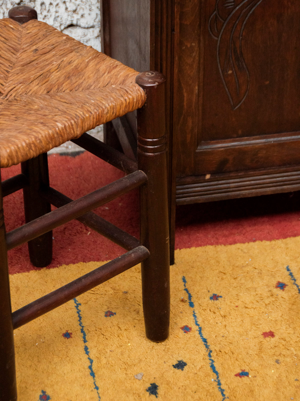 Embrace this small, dark wood stool with its square straw seat, which combines solid materials with elegant simplicity. Its compact silhouette makes it ideal as an extra seat next to a sofa, a footrest, or a practical addition to an entryway, easily moved as needed. The combination of rich wood and woven straw creates a warm, handcrafted feel, fitting seamlessly into both contemporary and rustic interiors for a natural and welcoming touch.