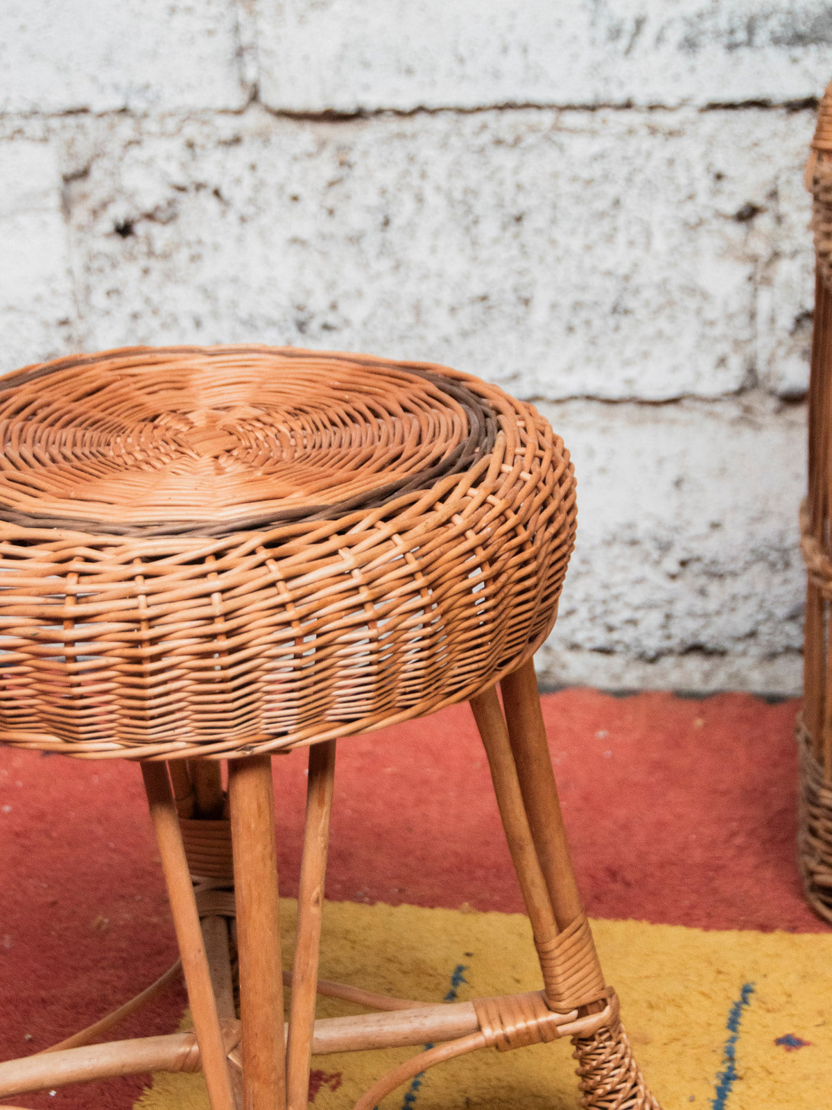 Embrace the natural charm of this wicker stool, where the woven weave complements the wooden frame for a warm and understated elegance. Its seat, edged with a fine border, provides a refined finish, while the delicate sculpted details on the legs highlight subtle craftsmanship. Compact and stable, it's perfect as an extra seat, side table, or vanity stool, adding a touch of authenticity and softness to your home.