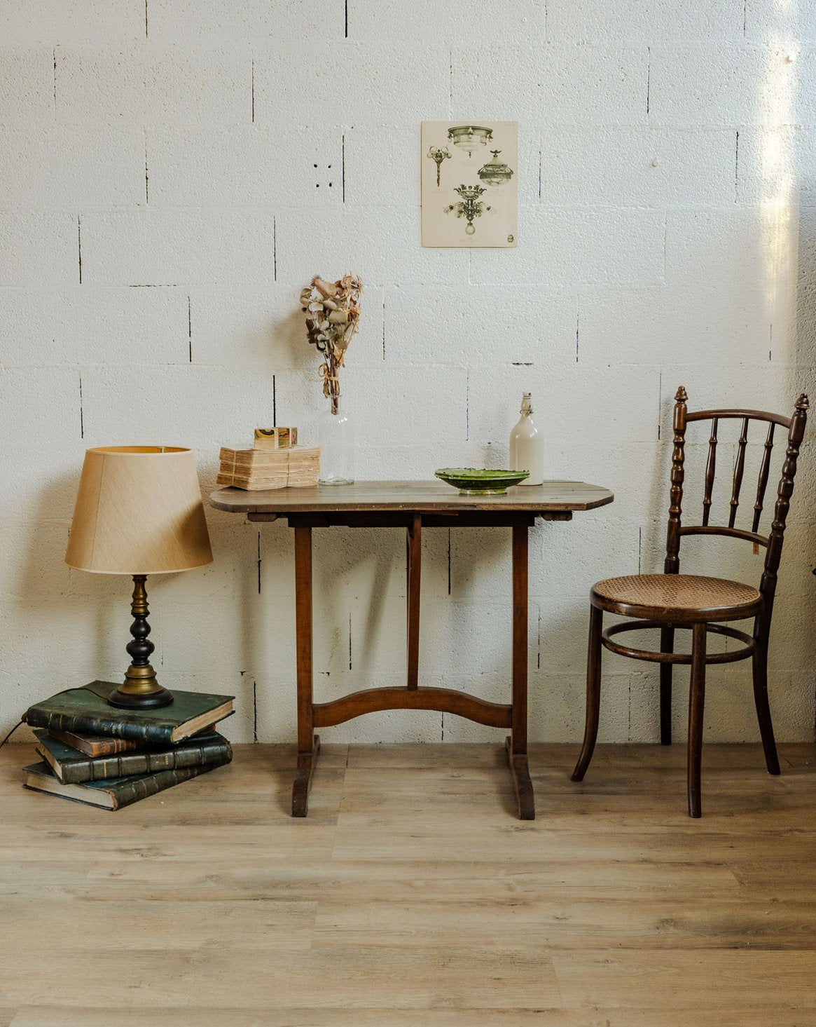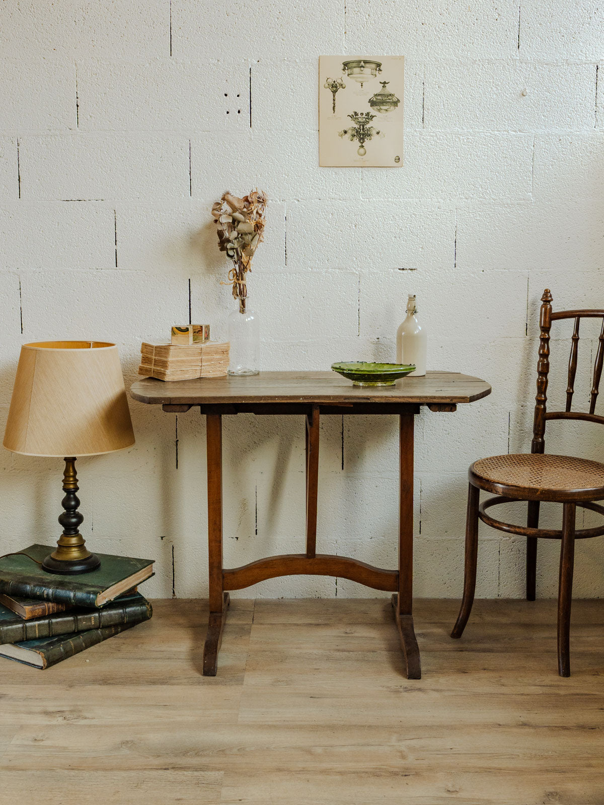 Adoptez cette ancienne table de vigneron en bois, au caractère rustique et aux lignes simples qui s'intègrent aussi bien dans une cuisine qu'en coin repas. Sa structure ingénieuse se replie en retirant ses cales, offrant une solution pratique pour recevoir 2 à 4 convives ou optimiser un petit espace. Sa patine chaleureuse crée une ambiance conviviale, entre bistrot et campagne, idéale pour des moments partagés. Quelques marques d'usage qui font son authenticité.