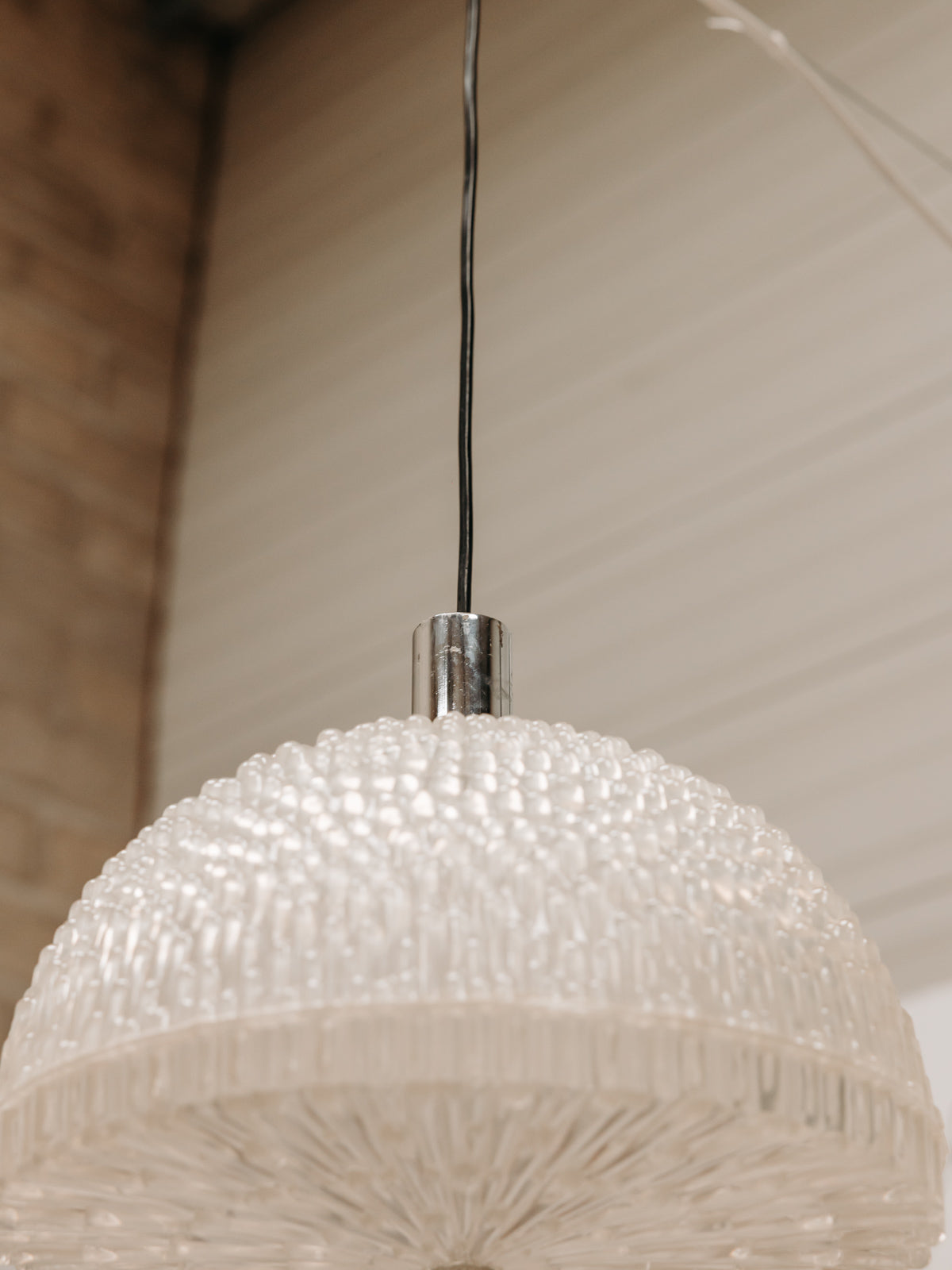 Adoptez cette suspension vintage allemande en acrylique, héritage des années 70 au style légèrement space‑age. Sa matière transparente diffuse une lumière douce et homogène, créant un halo aérien qui sublime une table, un comptoir ou une entrée tout en restant facile d'entretien. Son format compact et ses proportions équilibrées s'intègrent aussi bien dans un intérieur contemporain que dans un décor rétro, apportant une touche graphique et lumineuse à l'ambiance.