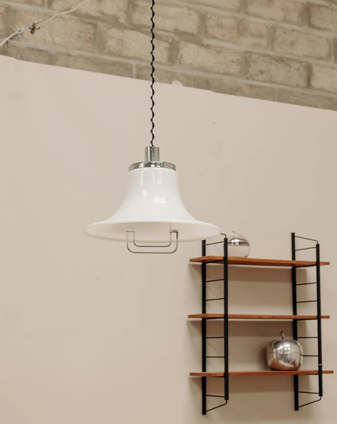 Discover this magnificent vintage Space Age pendant light, an Italian gem from the 1970s. Made of white plastic and accented with chrome, it brings a retro touch to any interior. In very good condition, this iconic light fixture combines functionality and style, perfect for illuminating your space with a touch of timeless elegance. Its bold and futuristic design will make a splash in your decor. Don't miss the opportunity to add this masterpiece to your collection!