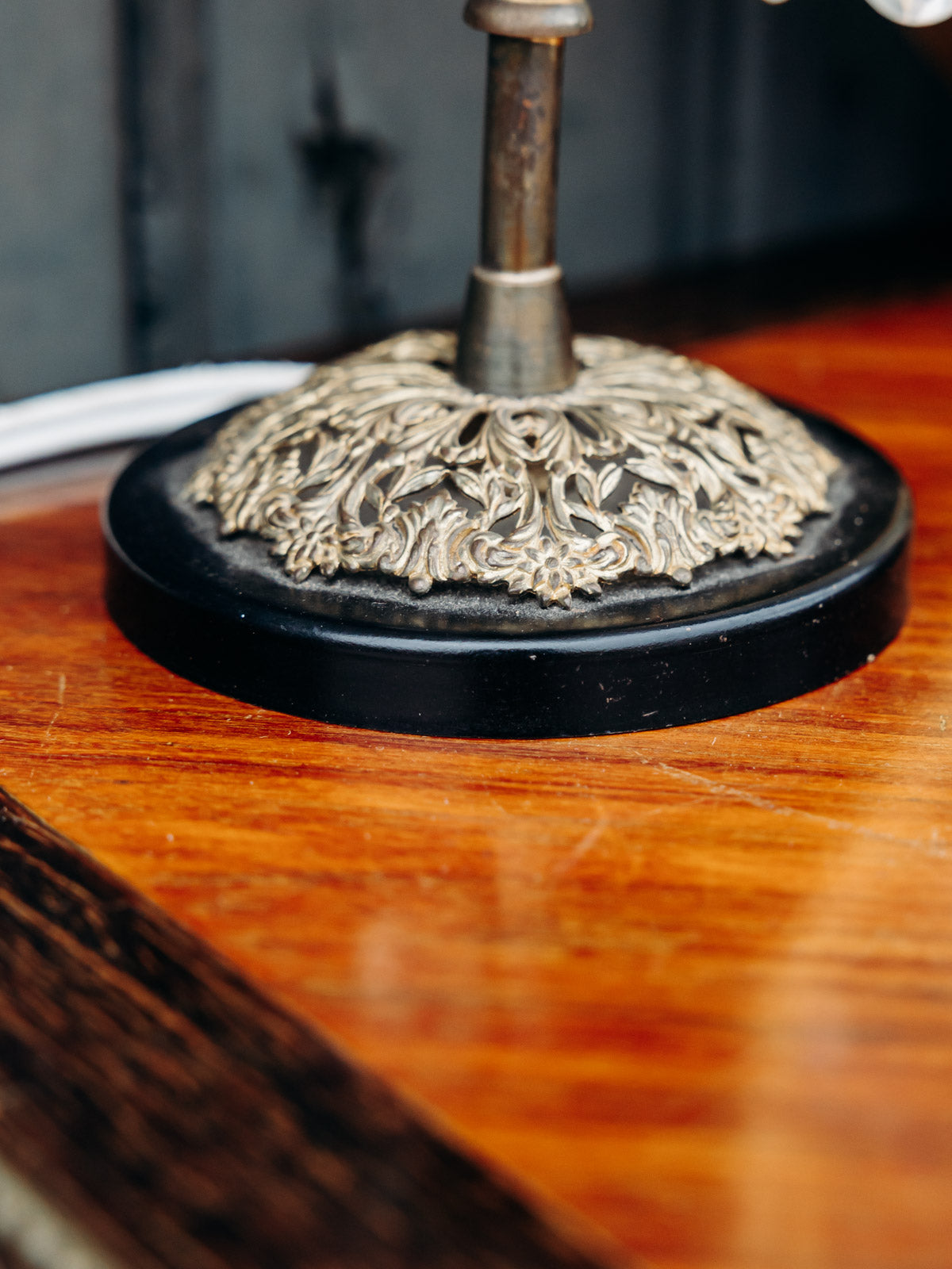 Add a touch of handcrafted elegance with this small table lamp featuring a blown glass globe, embellished with faux diamonds that catch the light in delicate reflections. Its handmade nature is evident in the finish and the smoothness of the glass, while its compact size makes it ideal for a bedside table, console, or desk. It diffuses a warm, soft light, creating an intimate and refined atmosphere perfect for reading or relaxing.